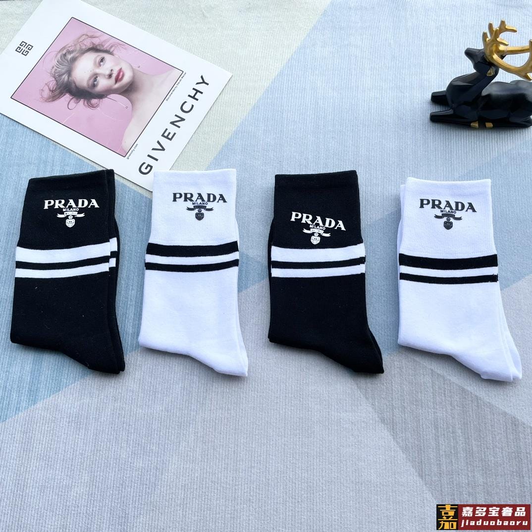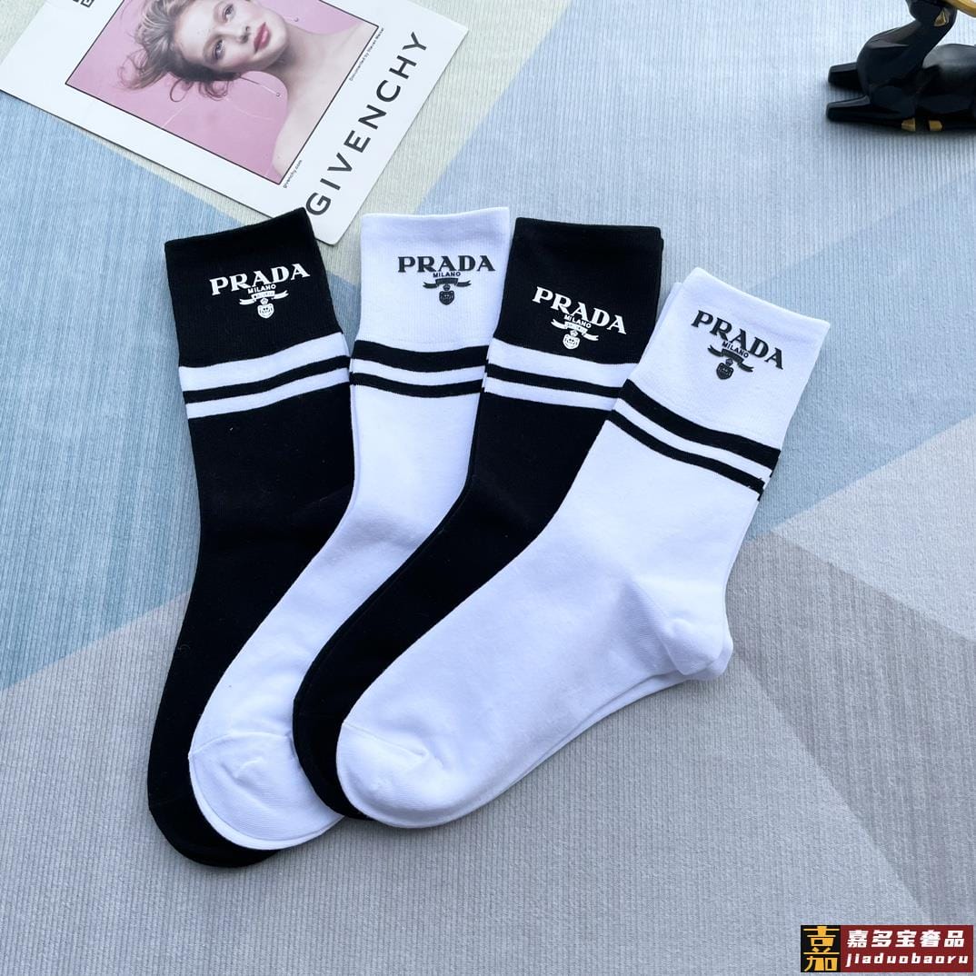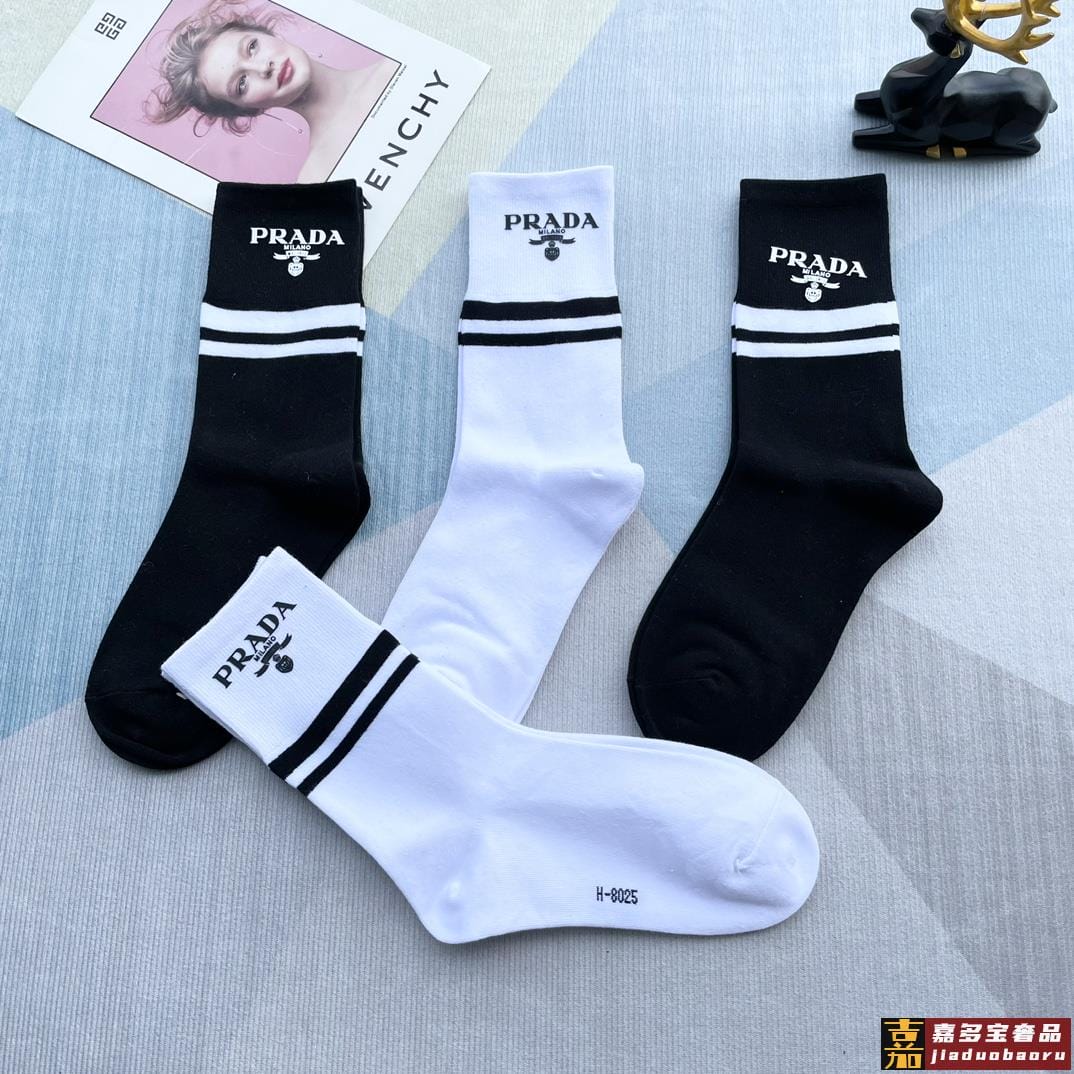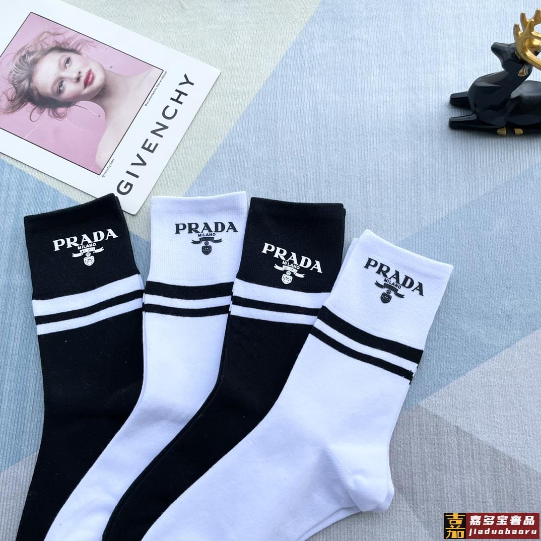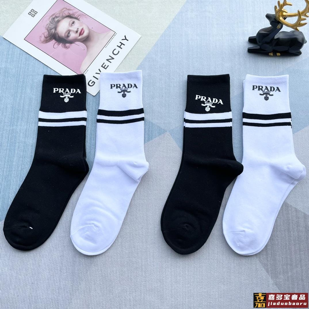 配包装普拉达新款中长款袜子一盒双专柜同步筒袜袜子大牌出街潮人