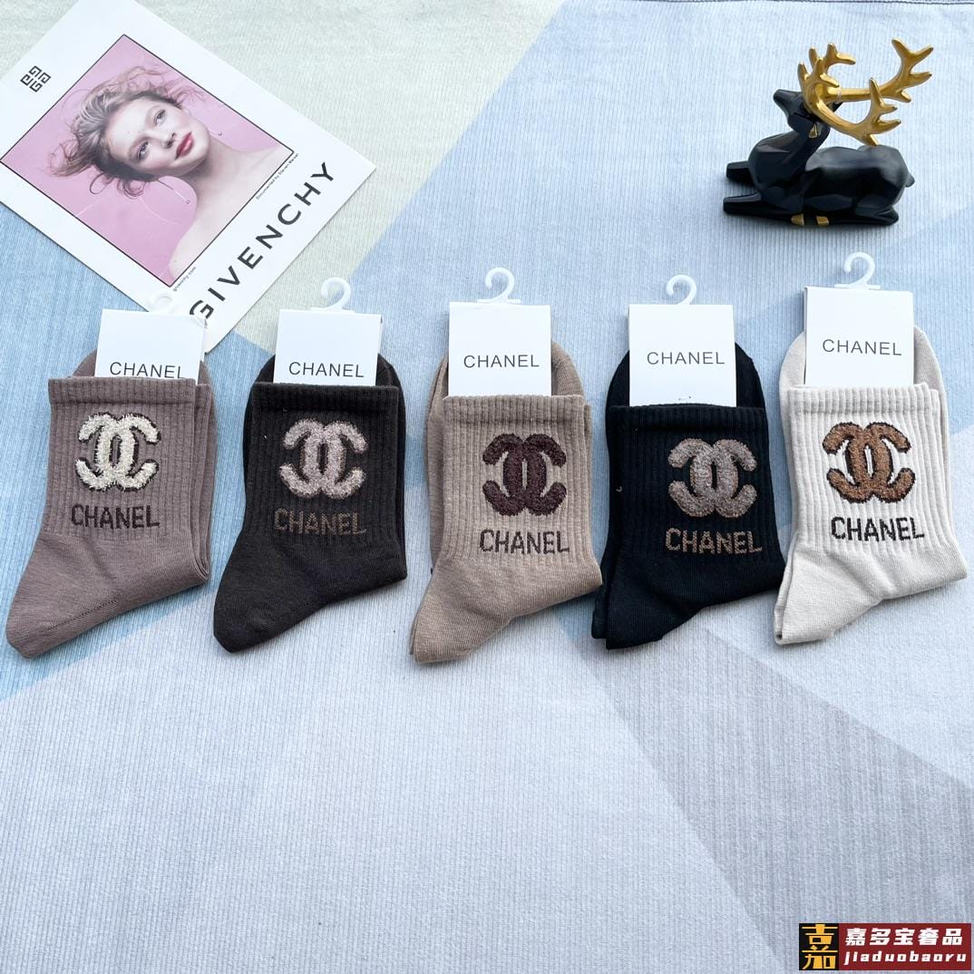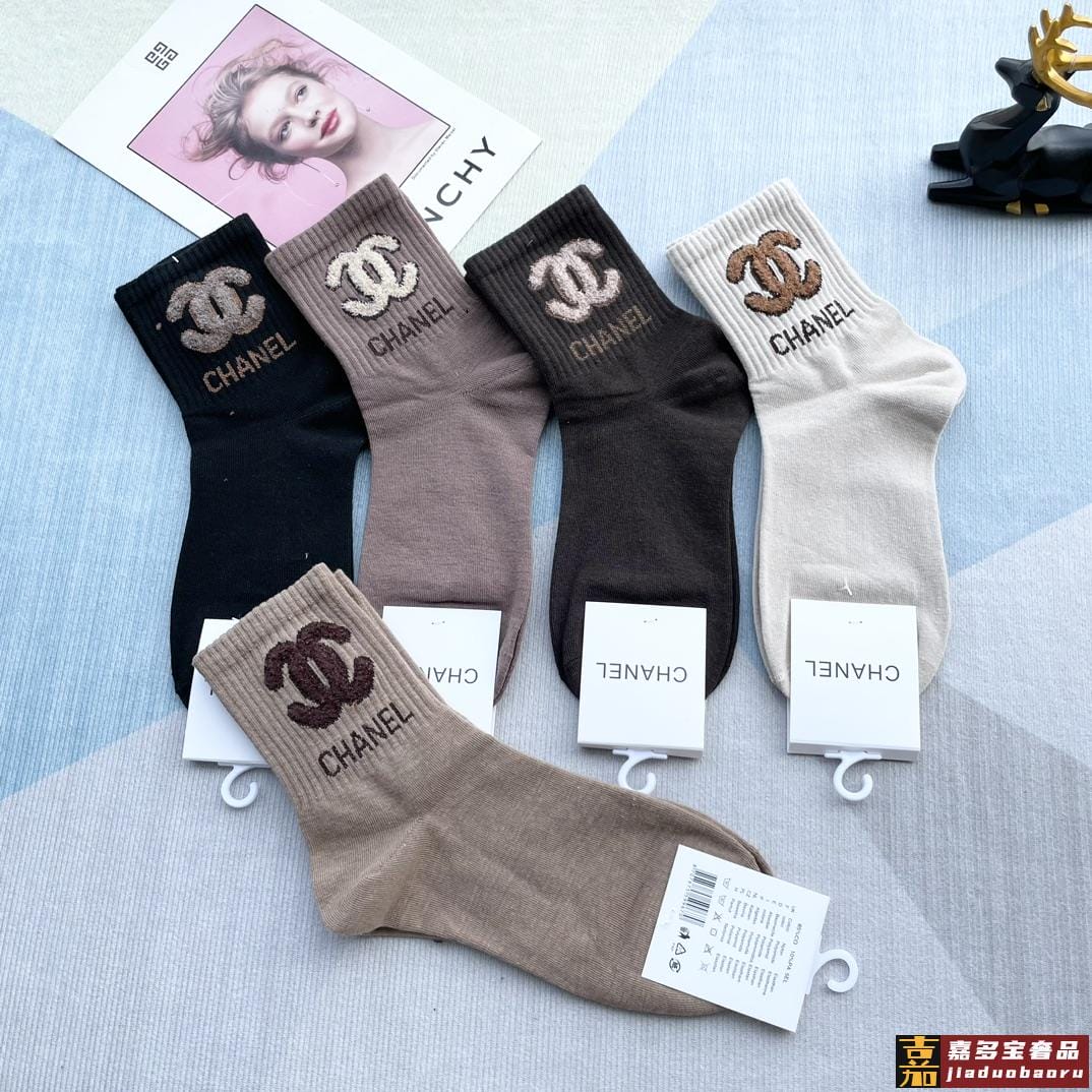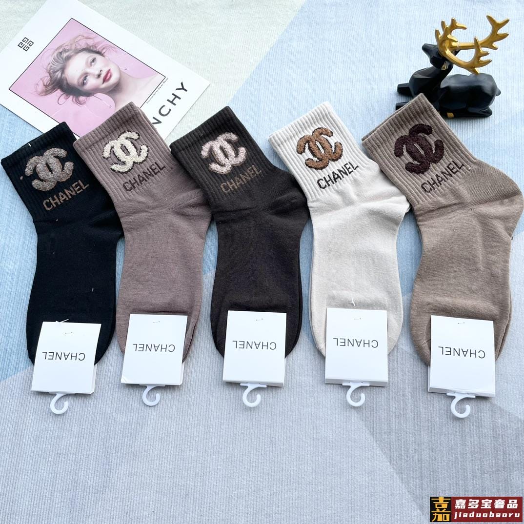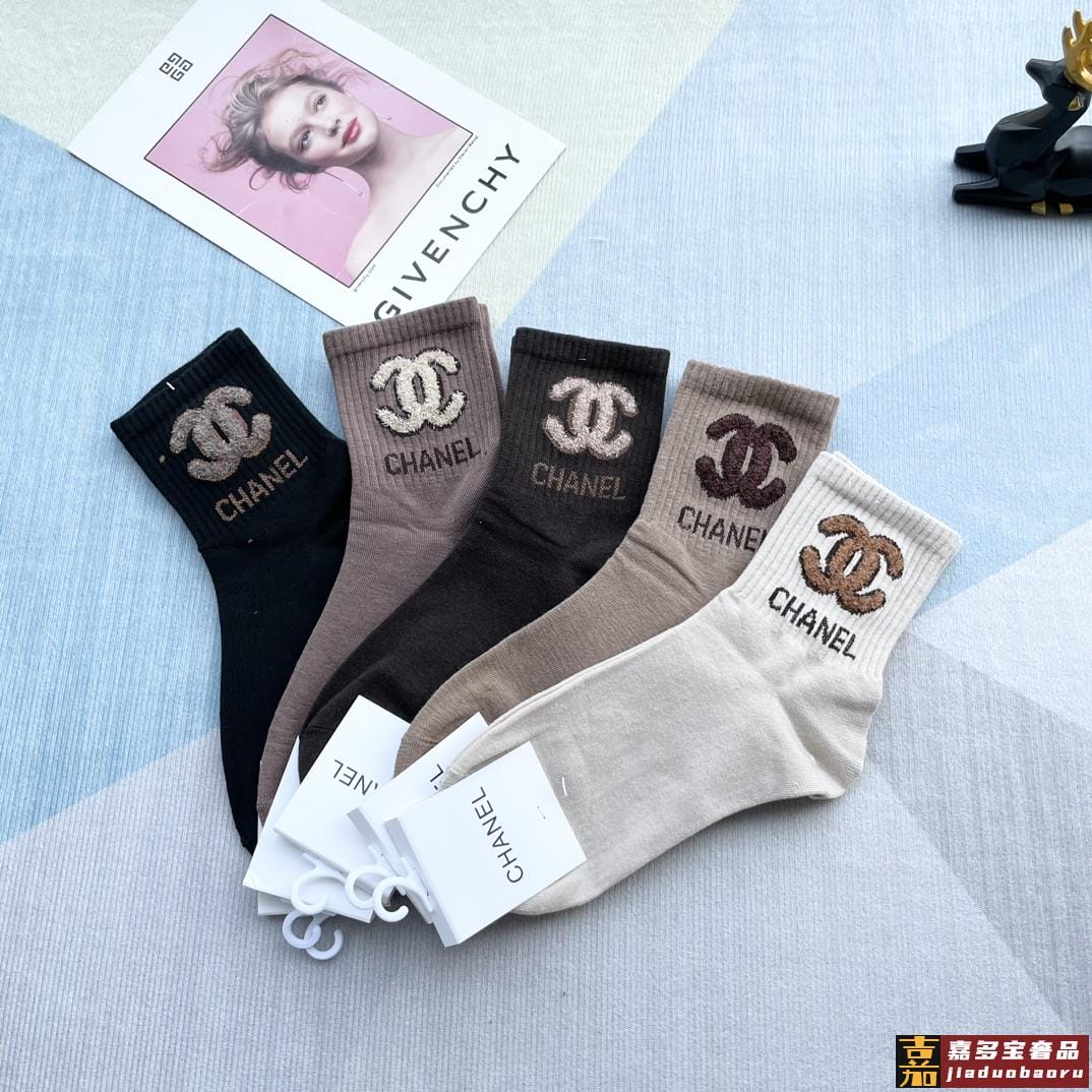 配包装一盒五双香奈儿爆款字母短筒袜高版本好看到爆炸欧美大牌短