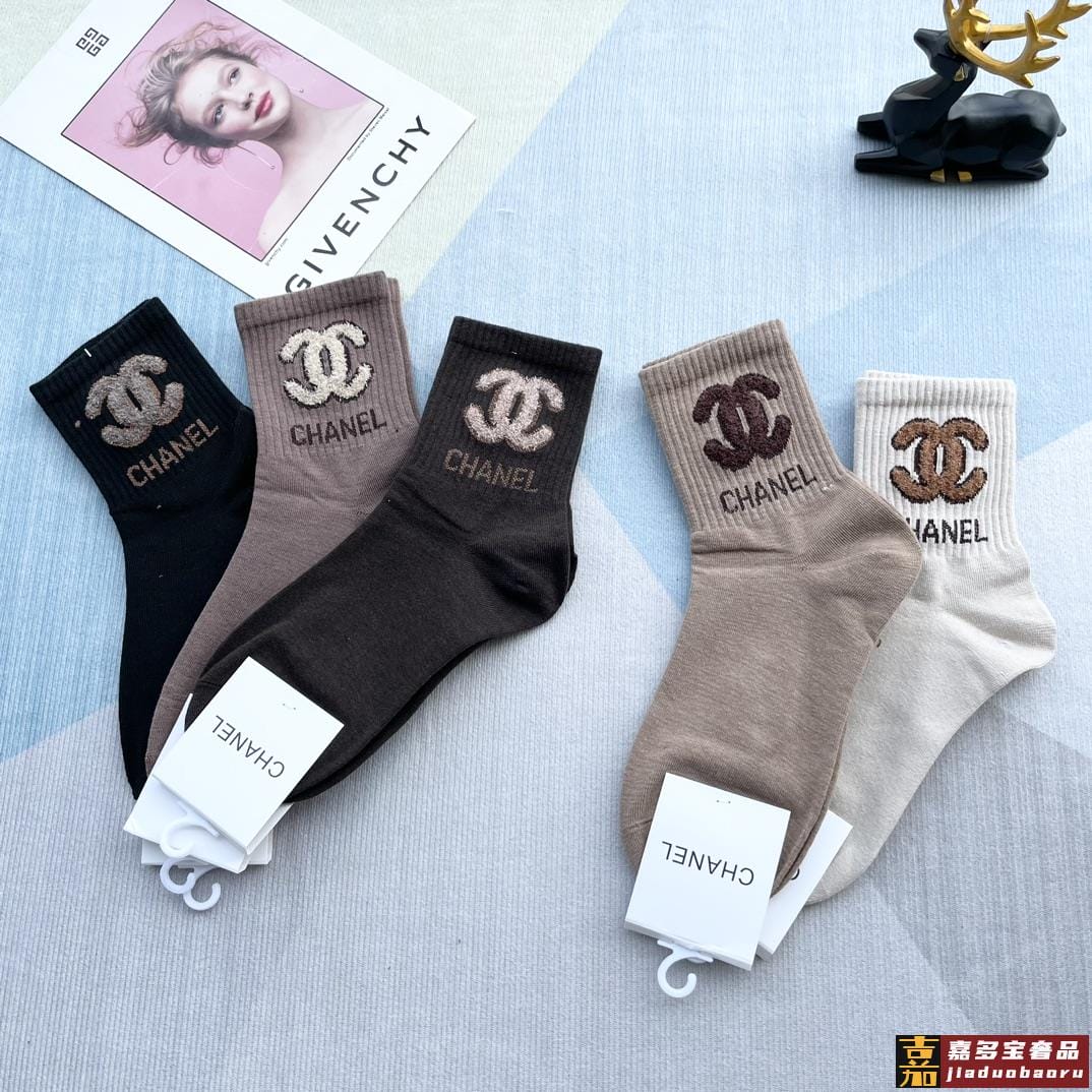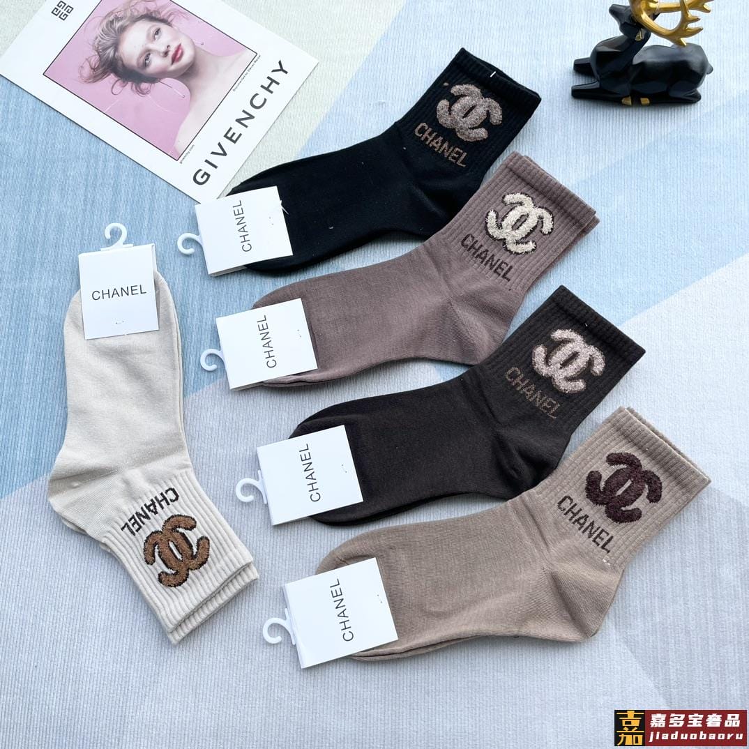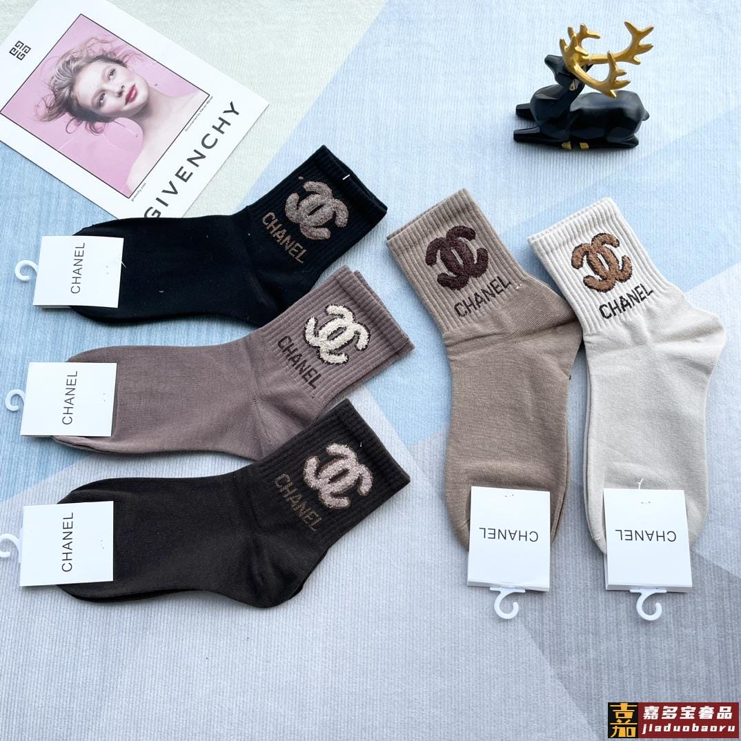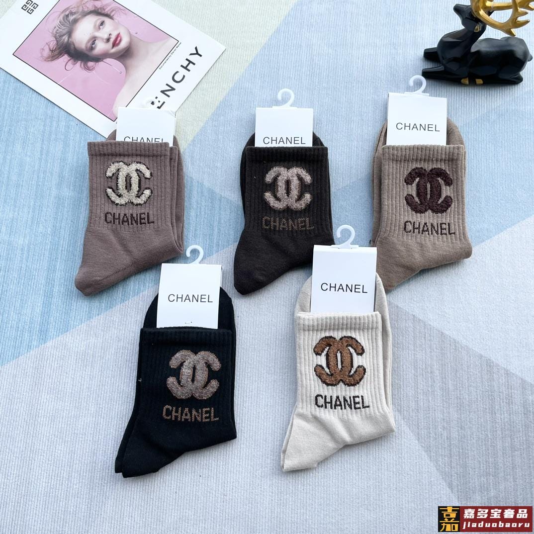 配包装一盒五双香奈儿爆款字母短筒袜高版本好看到爆炸欧美大牌短