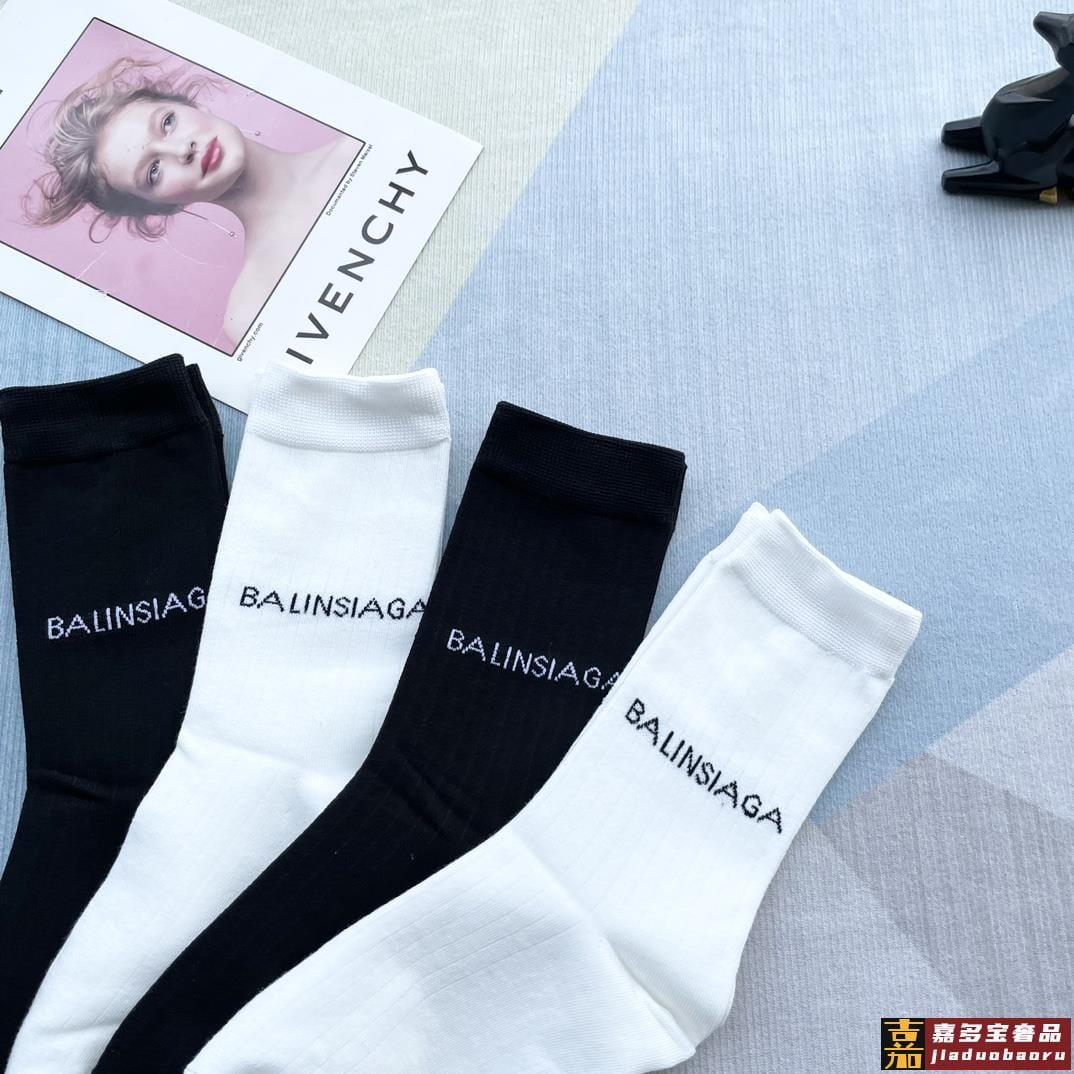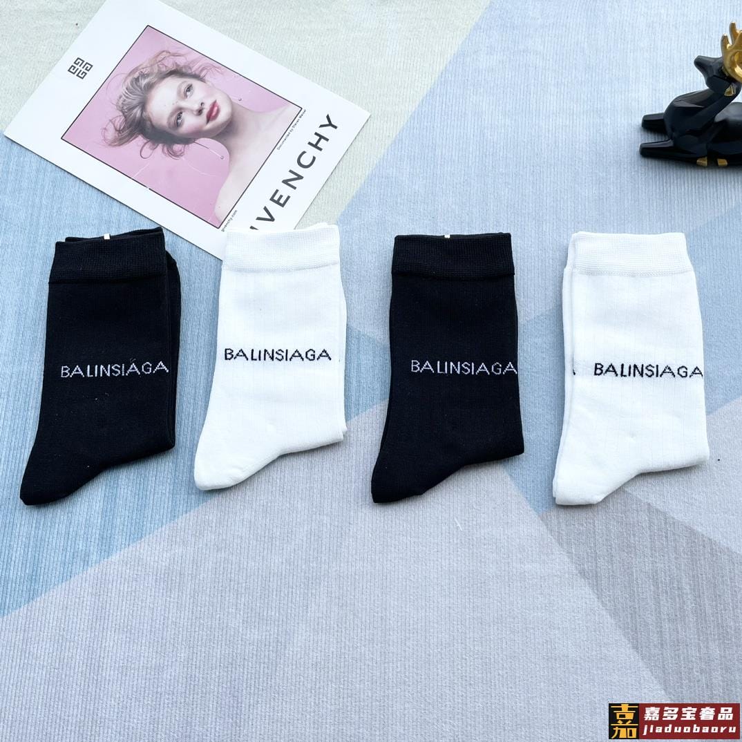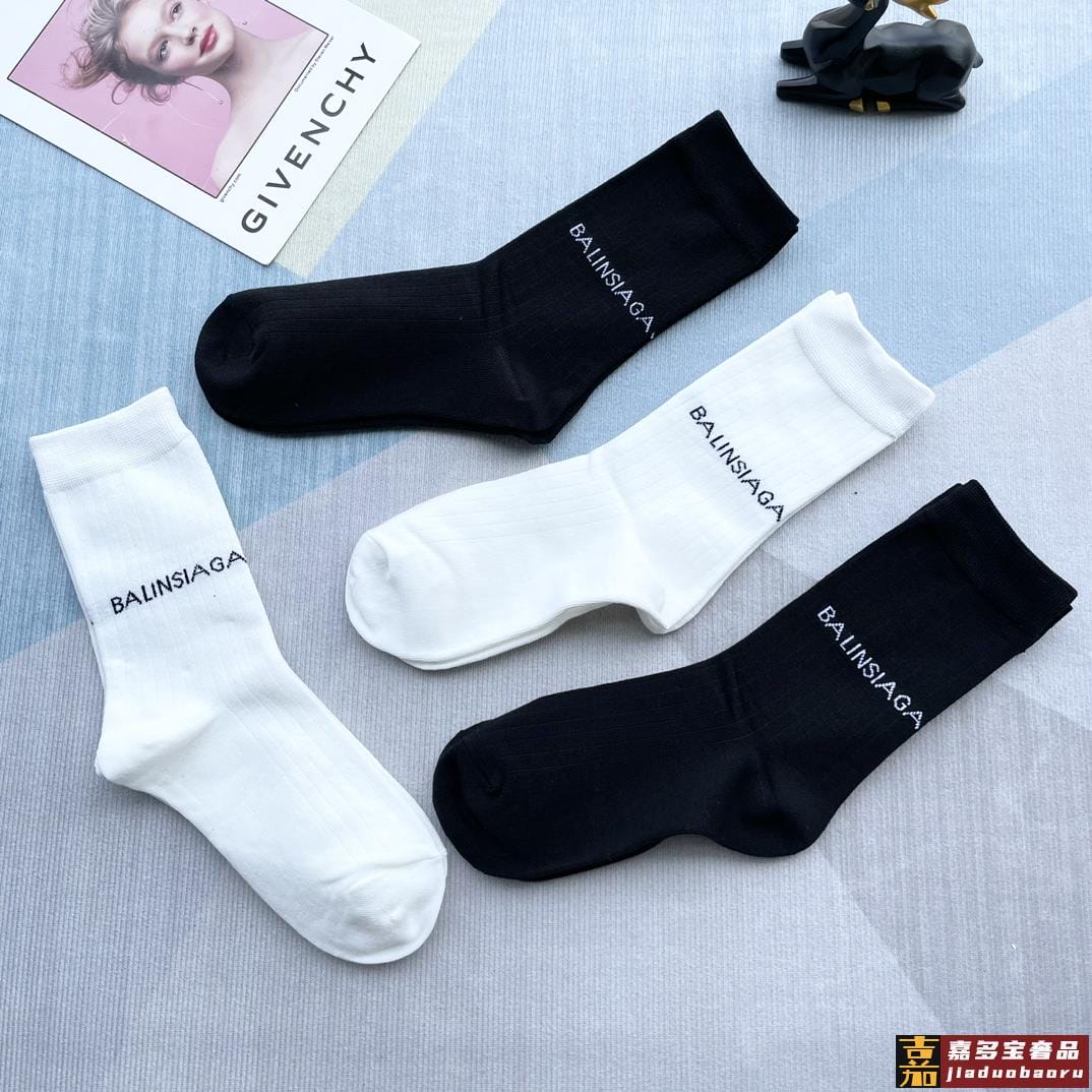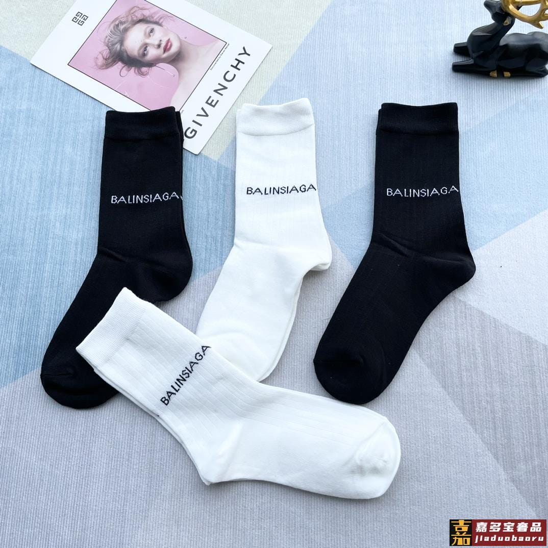 巴黎世家新款经典中长款堆堆袜袜子一盒四双专柜同步筒袜袜子大牌