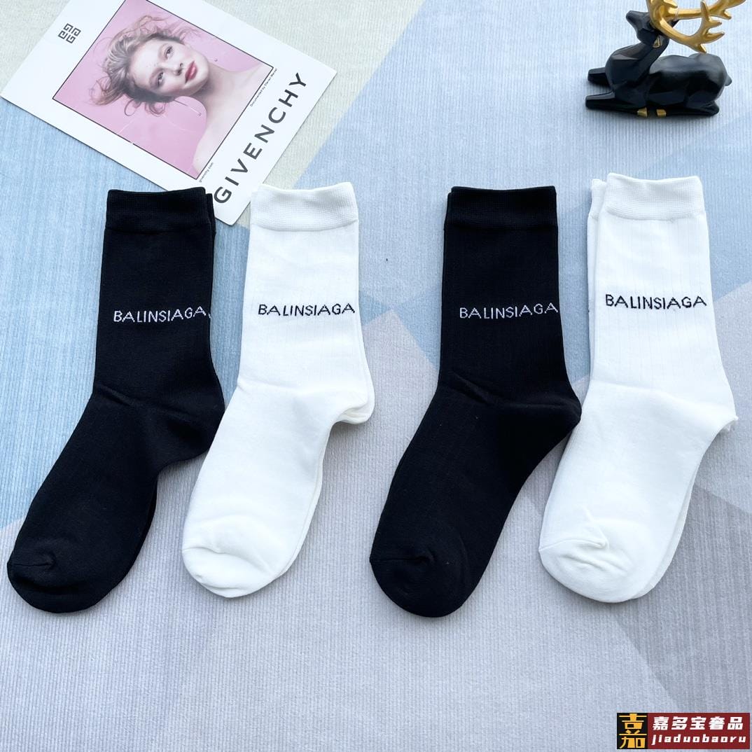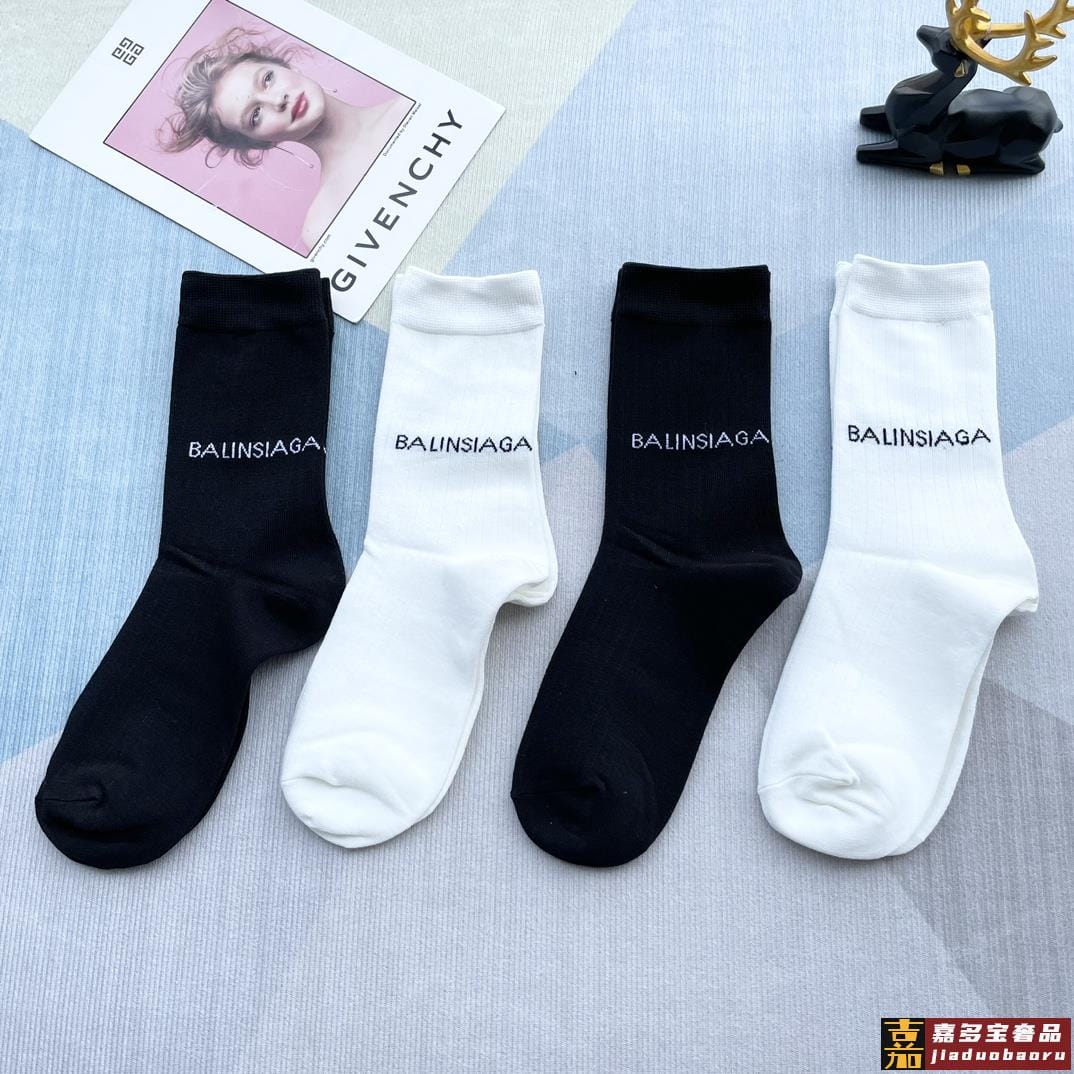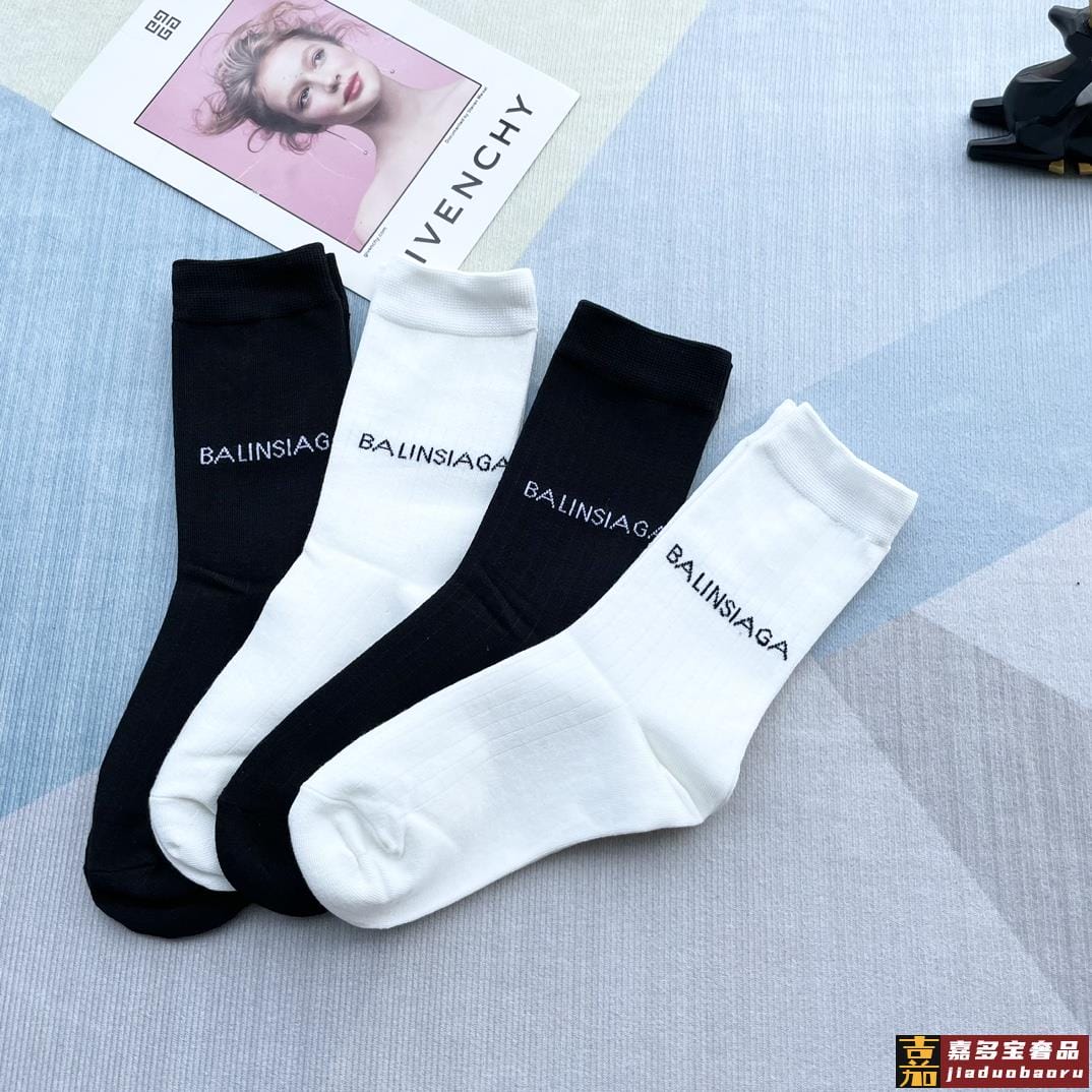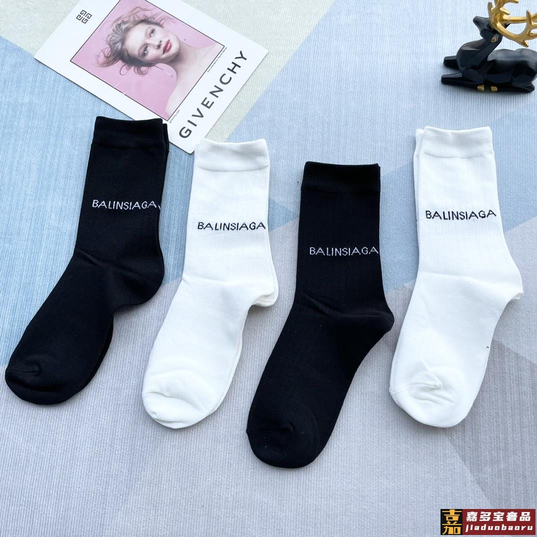 巴黎世家新款经典中长款堆堆袜袜子一盒四双专柜同步筒袜袜子大牌