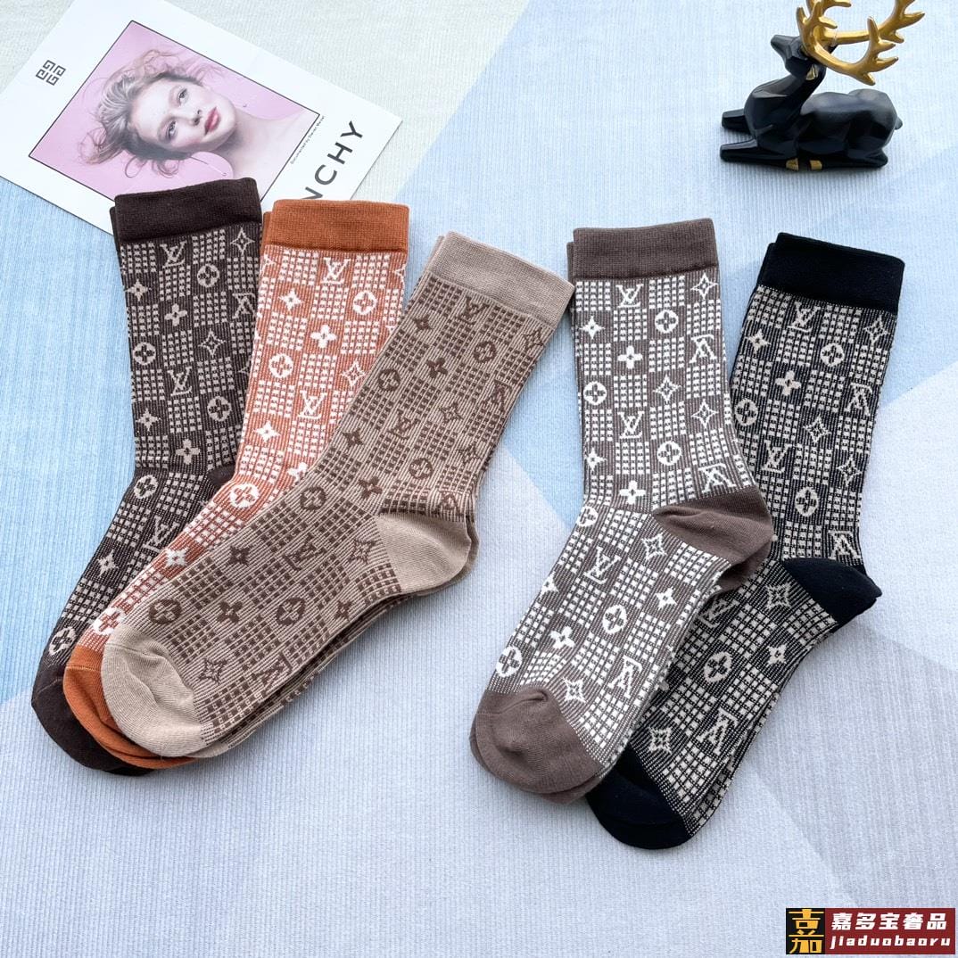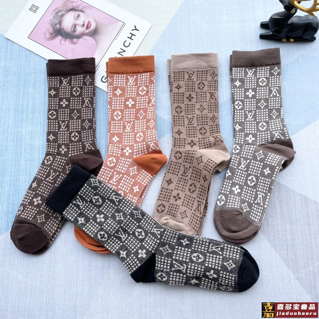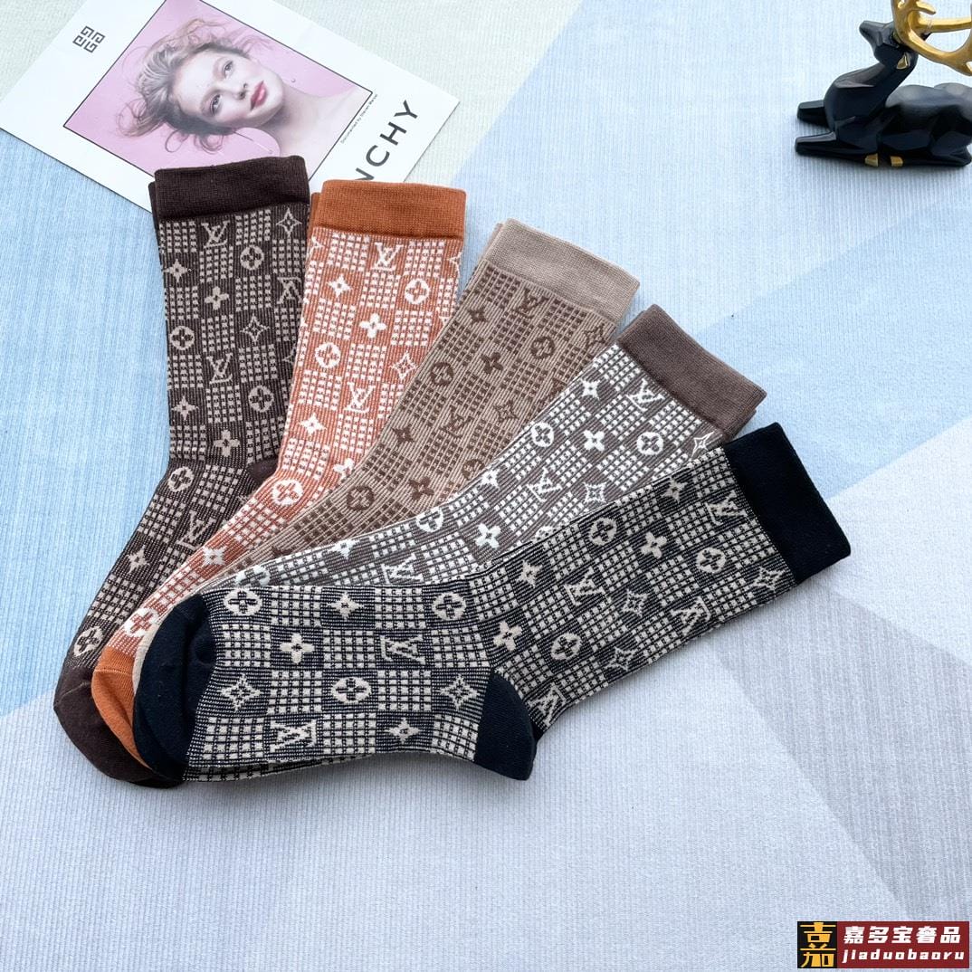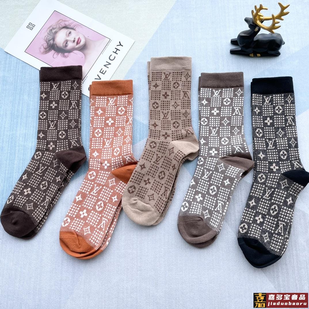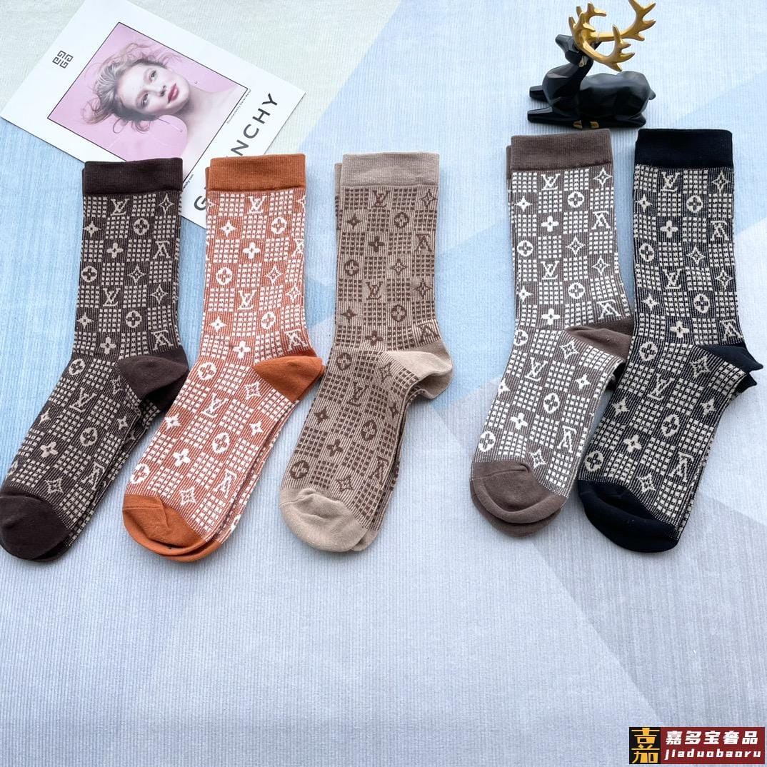 配包装一盒五双路易威登家新品中筒女款袜子专柜同步长袜超级经典