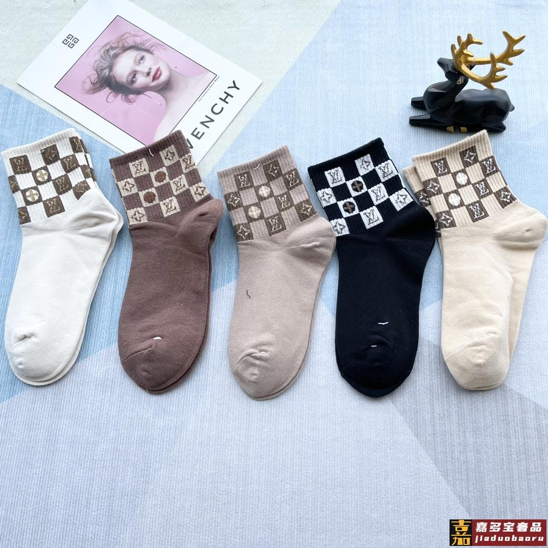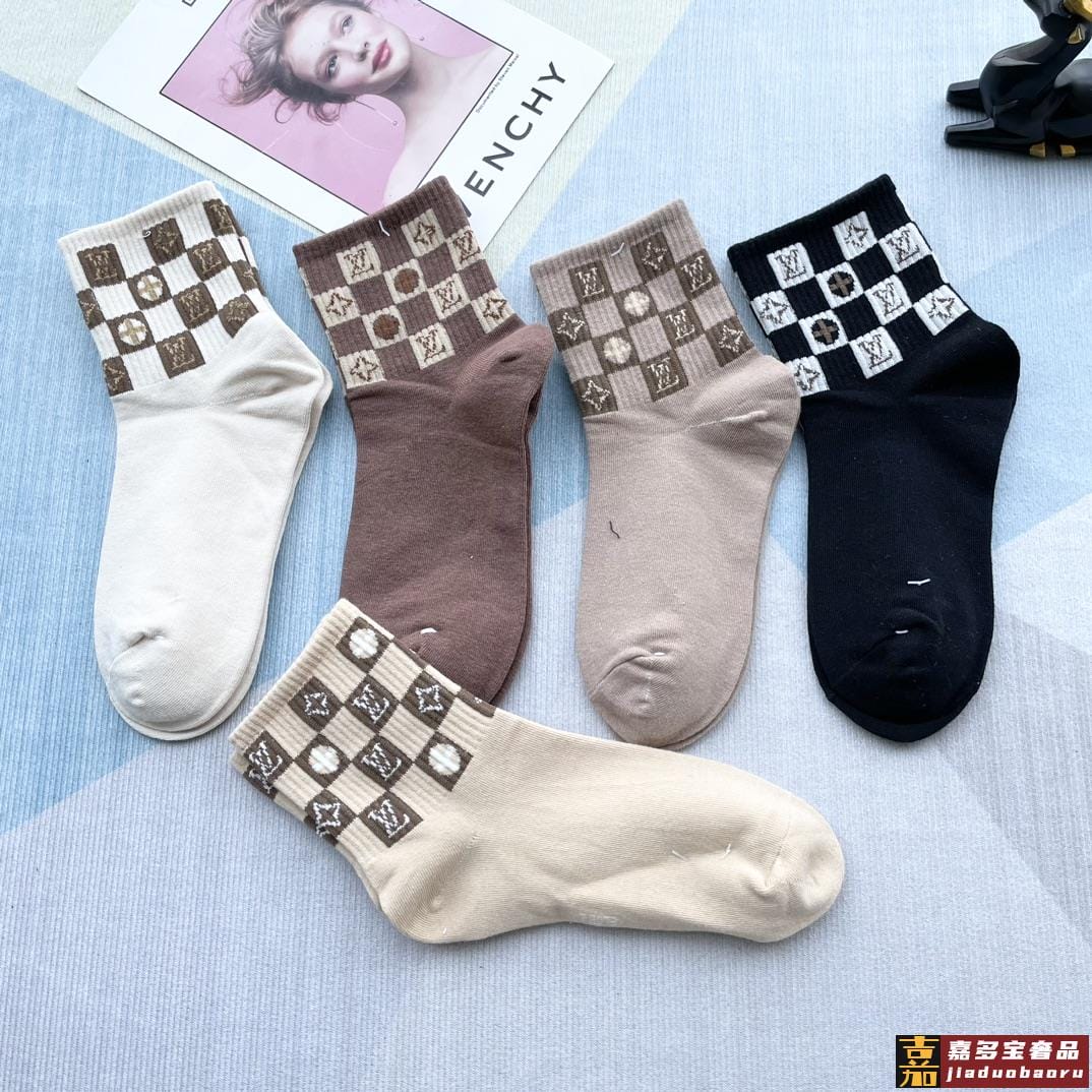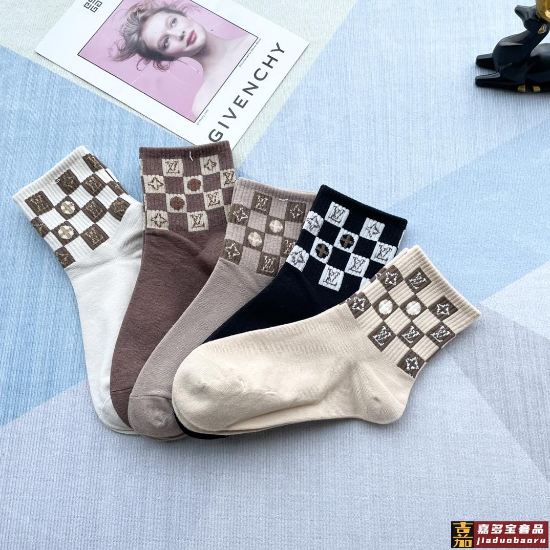 配包装一盒五双路易威登家新品中筒女款袜子专柜同步长袜超级经典