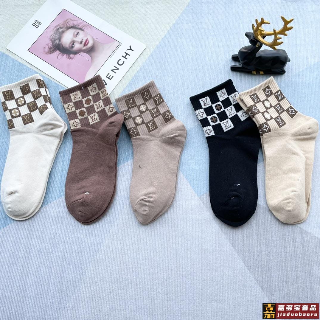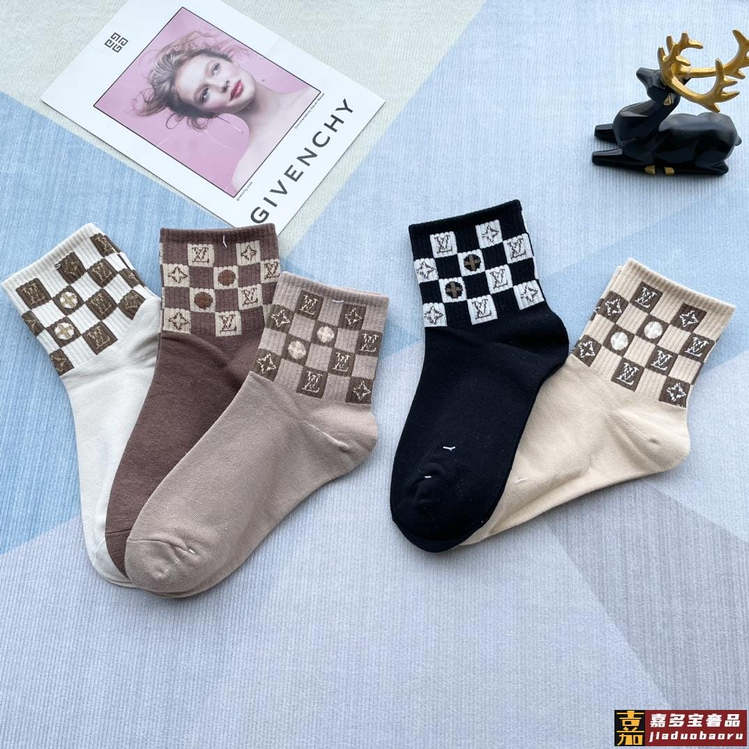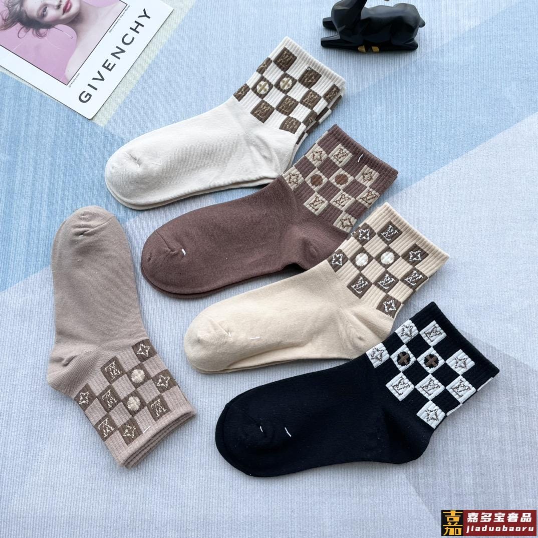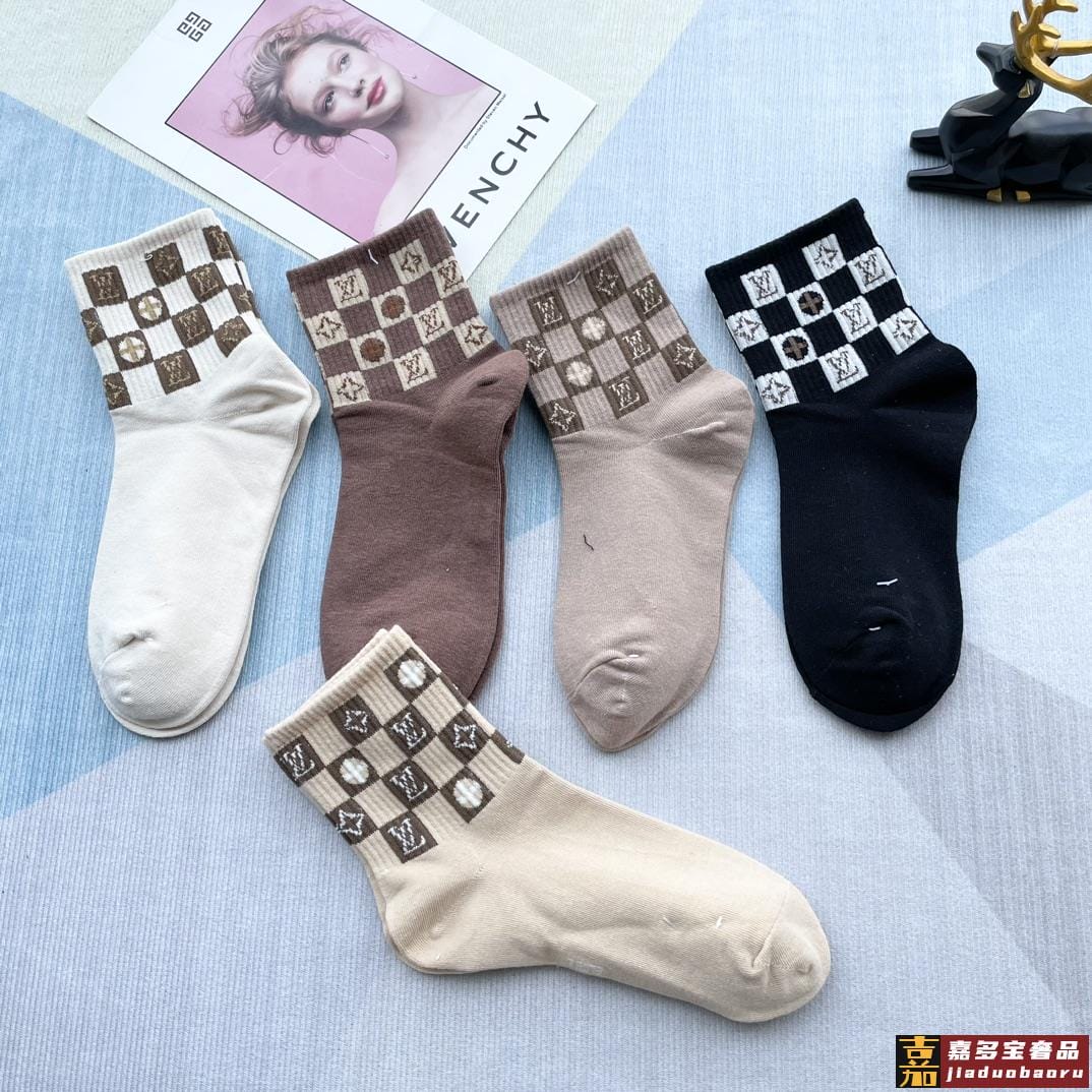 配包装一盒五双路易威登家新品中筒女款袜子专柜同步长袜超级经典