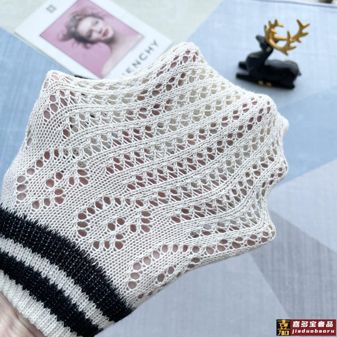 配包装一盒五双欧美大牌芬迪新款短款冰丝袜子冰丝加棉镂空经典标