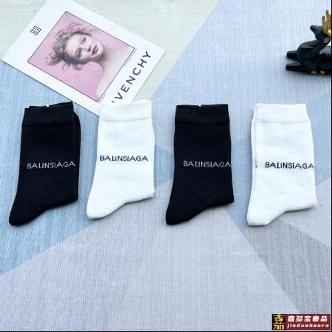 巴黎世家新款经典中长款堆堆袜袜子一盒四双专柜同步筒袜袜子大牌