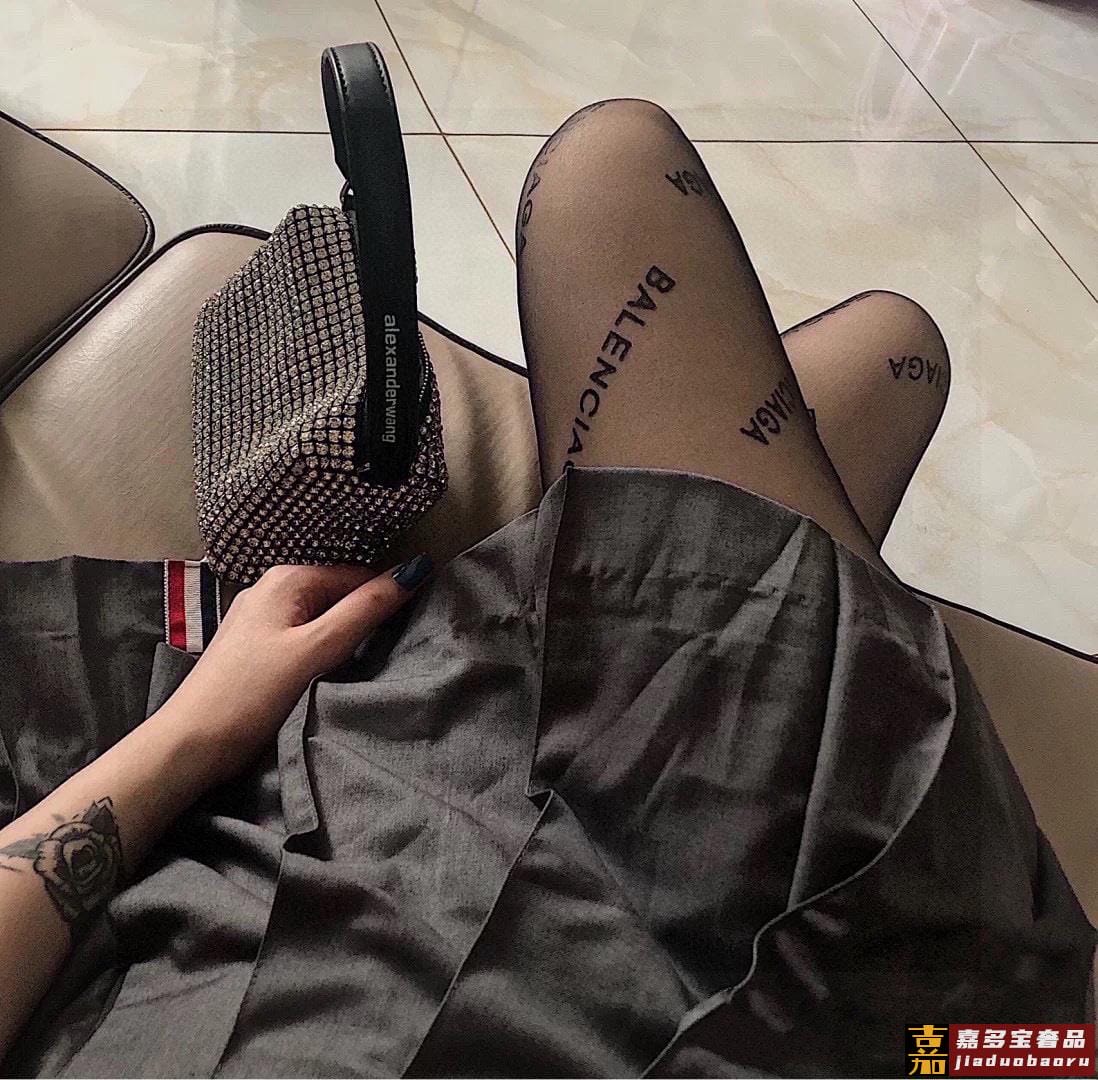 高版本腰部印胶配包装一盒一双巴黎世家字母丝袜好看到爆炸欧美大