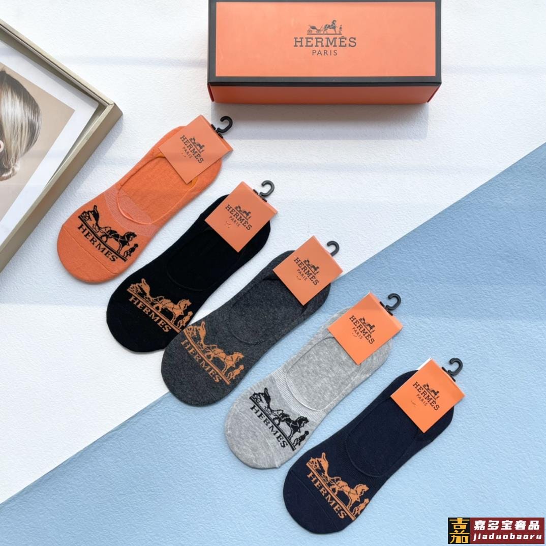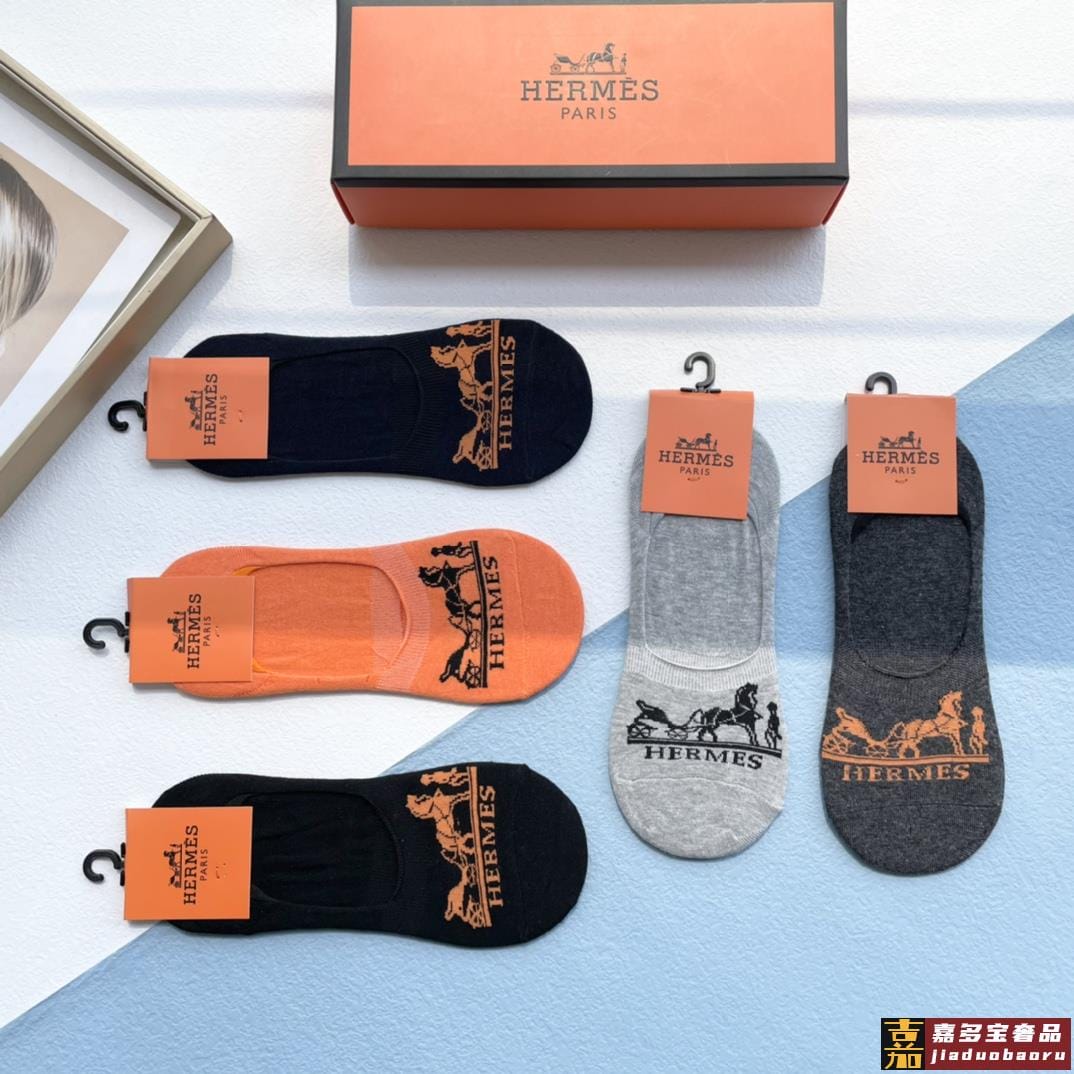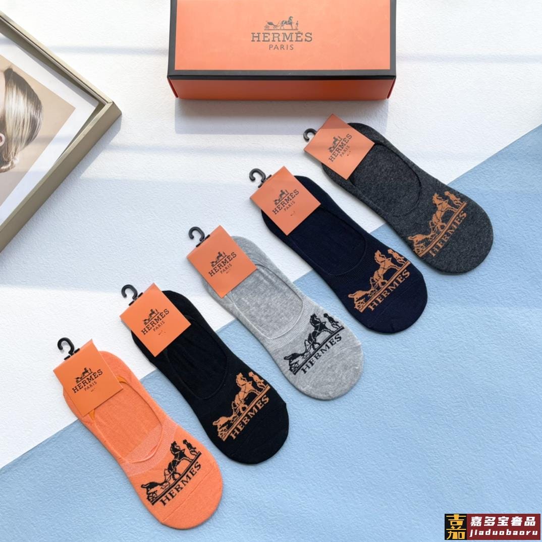 配包装一盒五双爱马仕经典短筒袜子纯棉面料专柜同步上新袜身提花