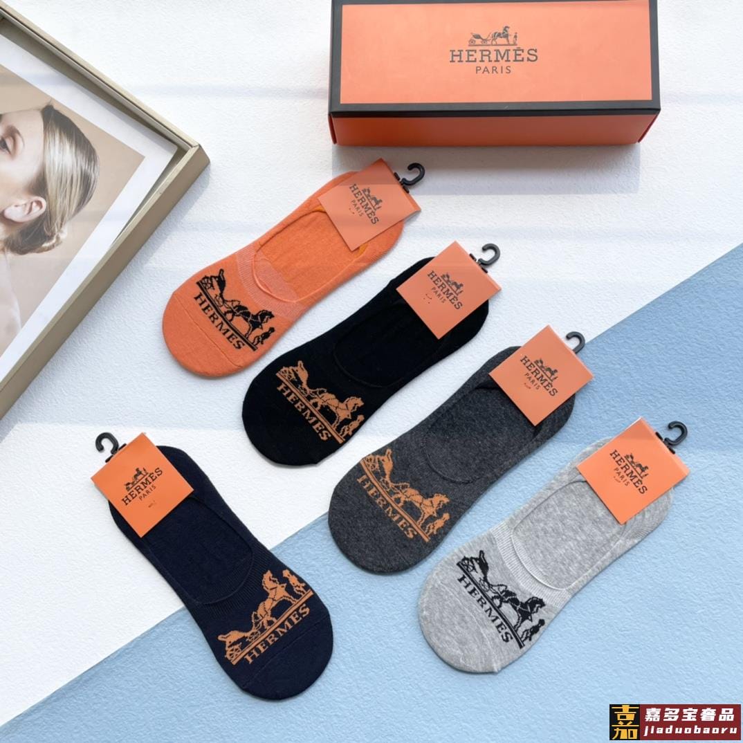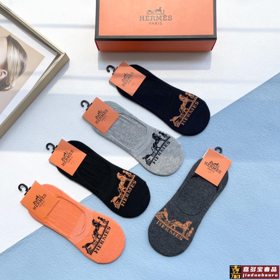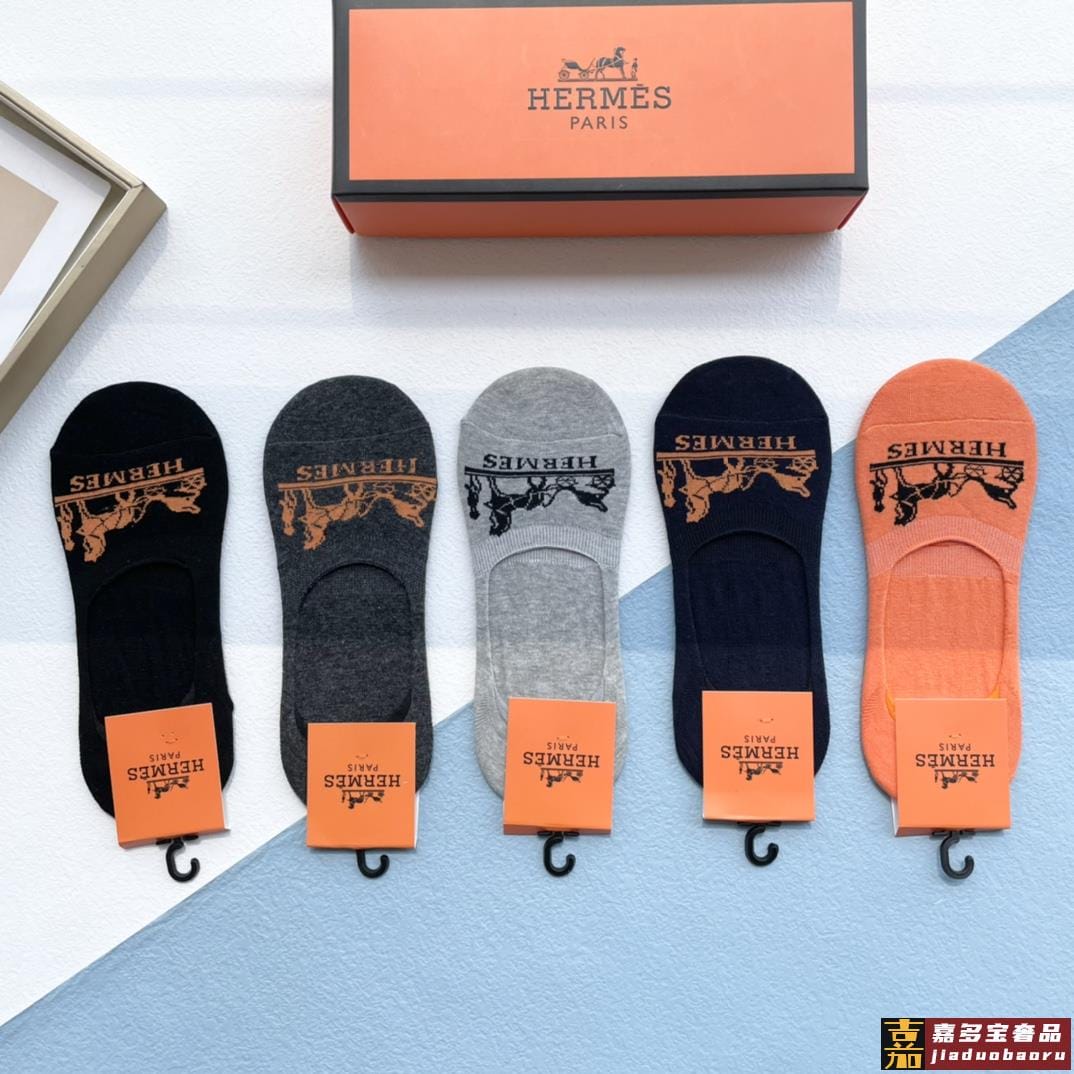 配包装一盒五双爱马仕经典短筒袜子纯棉面料专柜同步上新袜身提花