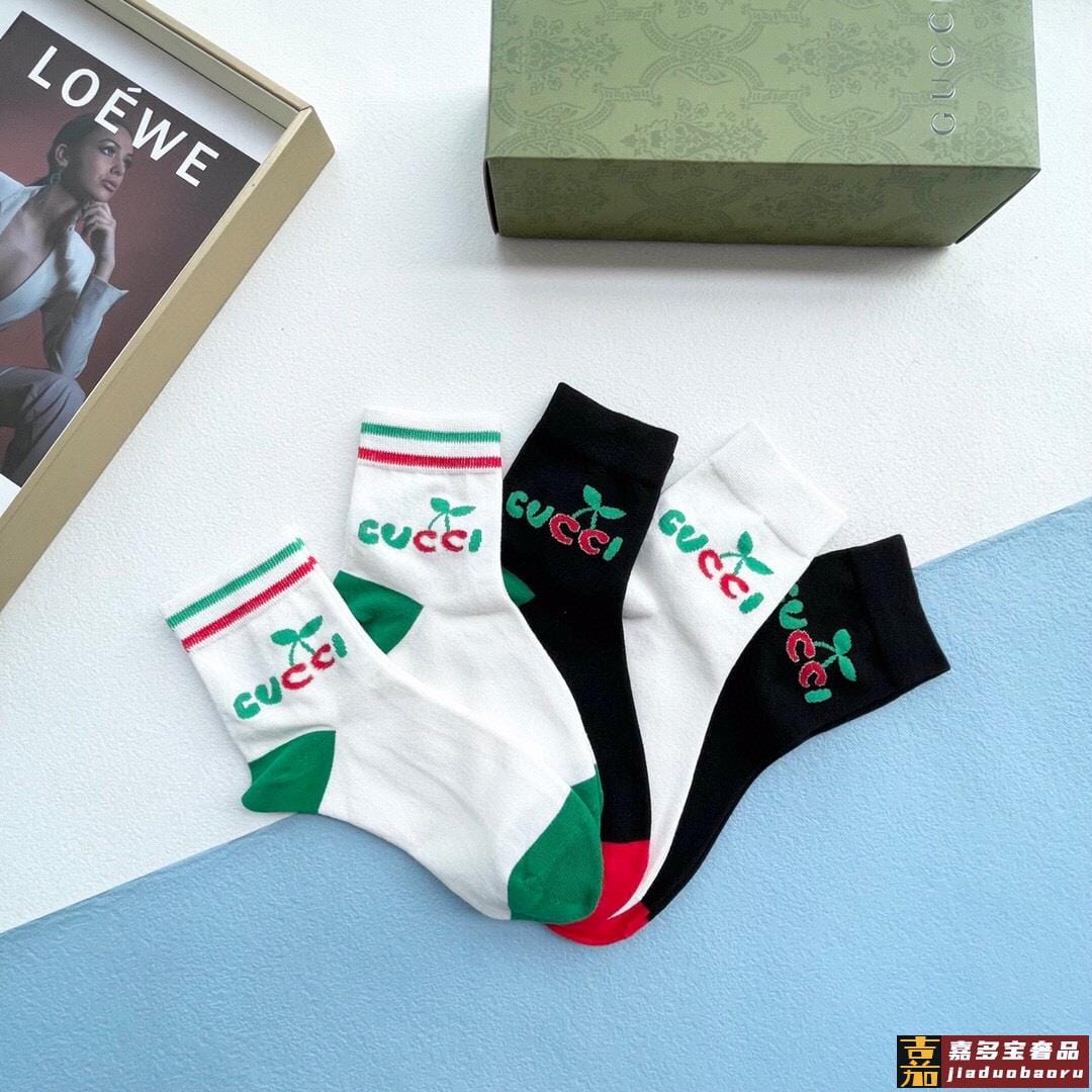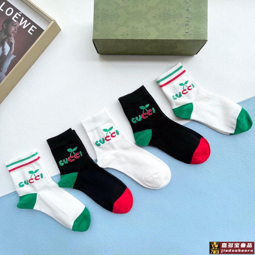 配送包装一盒五双古奇专柜新款男女款中筒袜子专柜同步上新超柔软