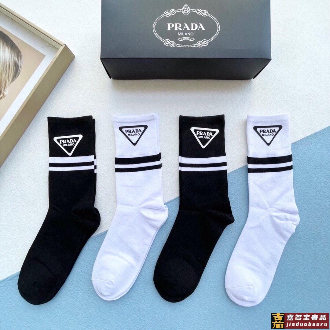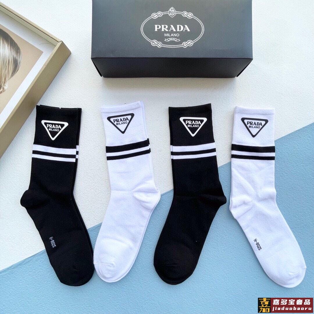 配包装一盒四双普拉达爆款高筒袜高版本好看到爆炸欧美大牌高筒袜