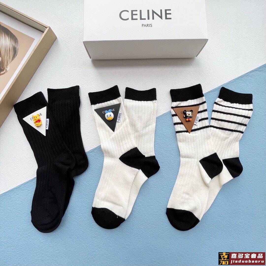 配包装一盒三双赛琳爆款中筒袜高版本好看到爆炸欧美大牌中筒袜潮