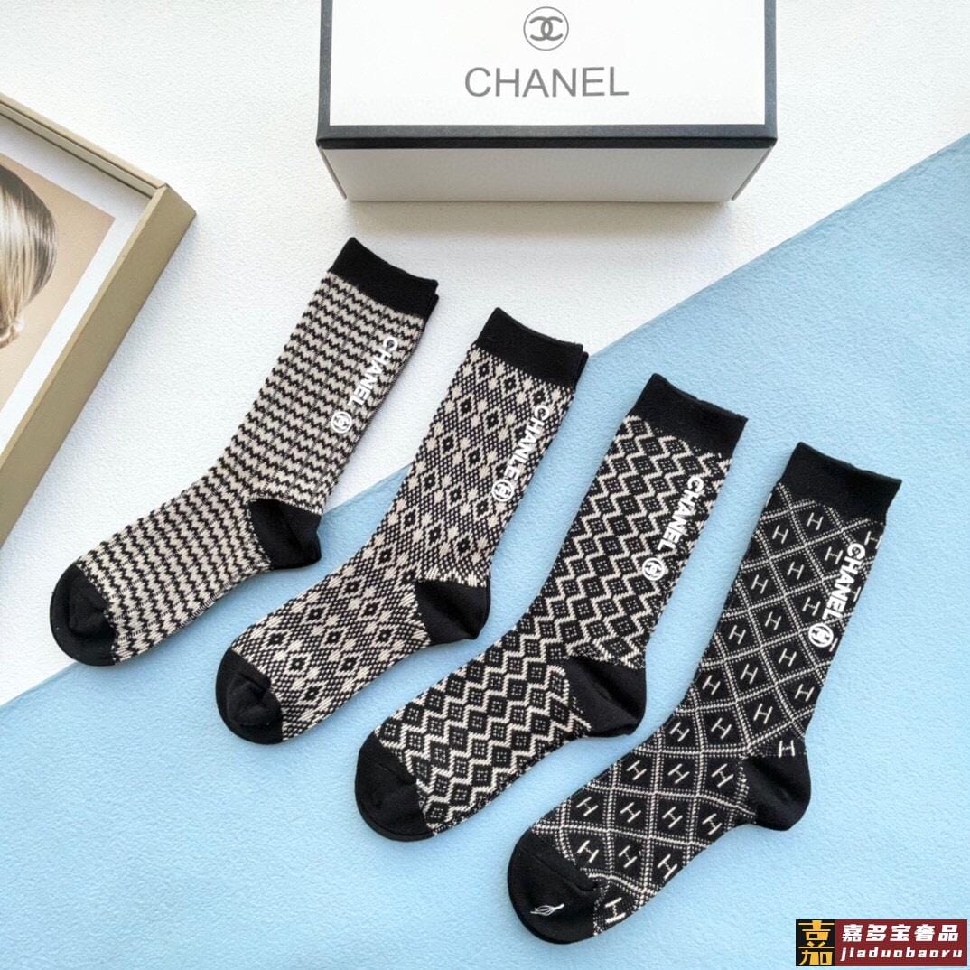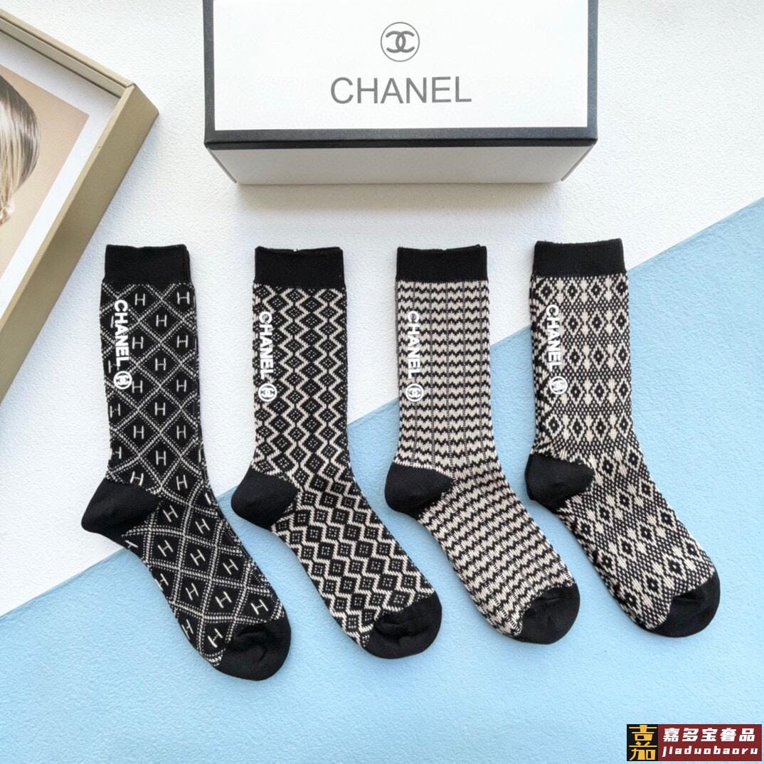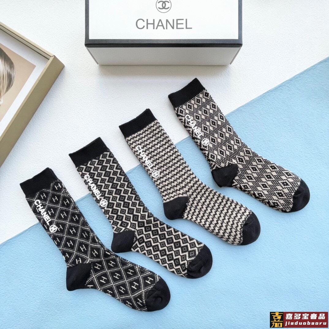 配包装一盒四双香奈儿中筒袜产品尺码产品材质棉聚酯纤维氨纶白色
