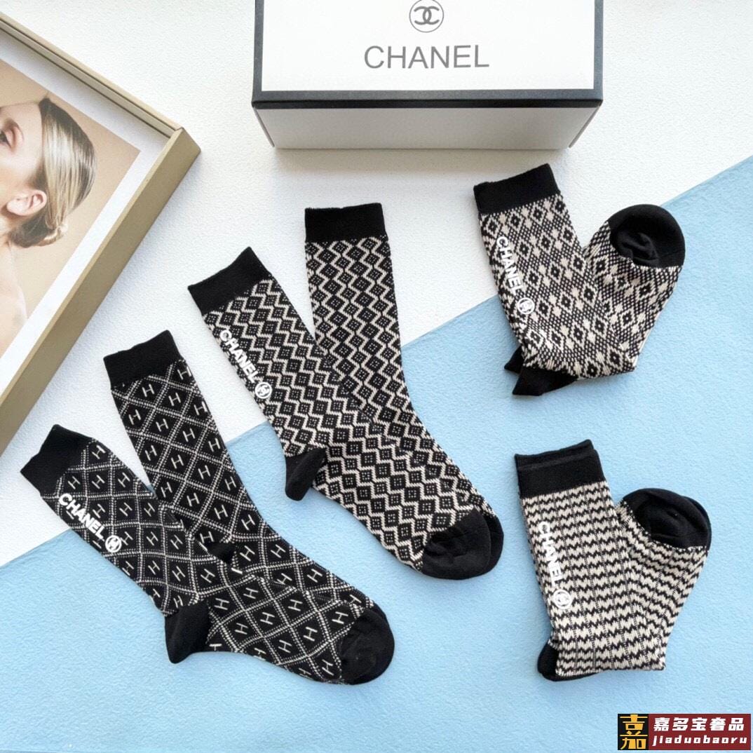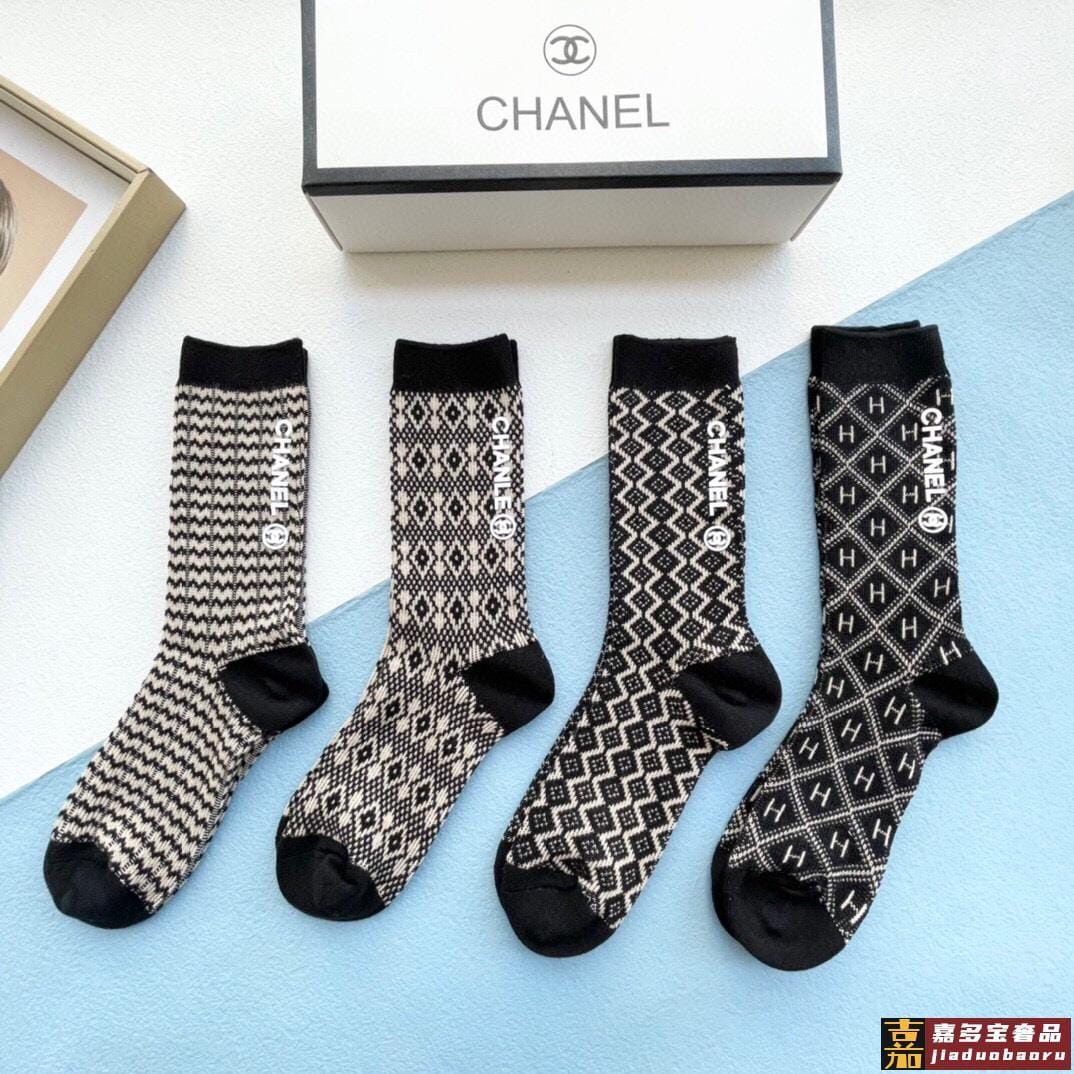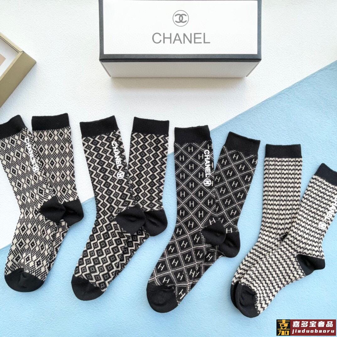 配包装一盒四双香奈儿中筒袜产品尺码产品材质棉聚酯纤维氨纶白色