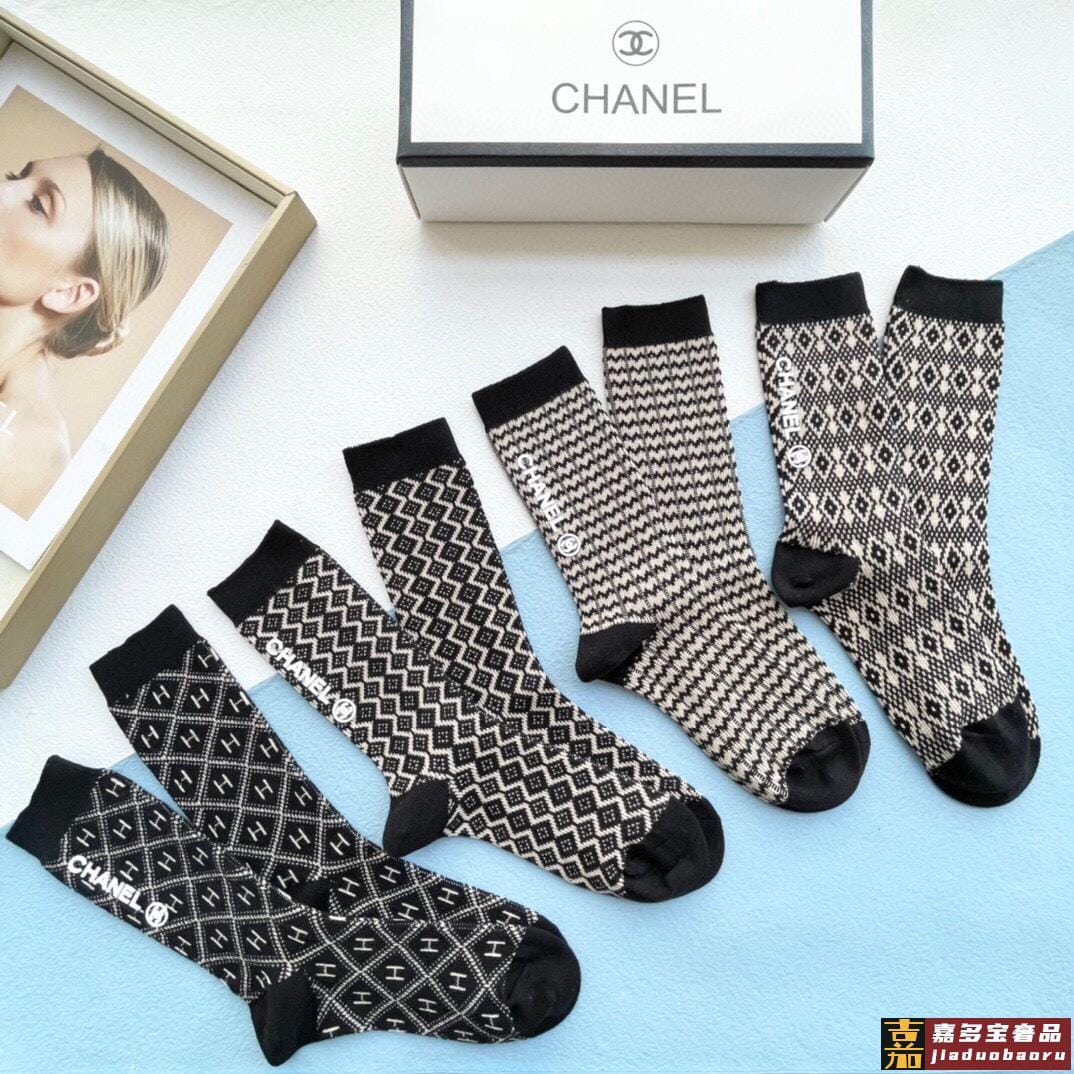 配包装一盒五双香奈儿中筒袜产品尺码产品材质棉聚酯纤维氨纶金色
