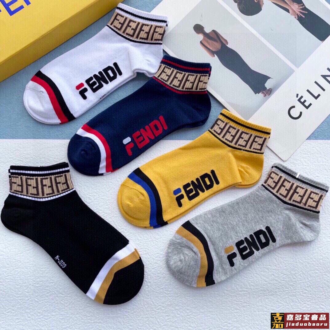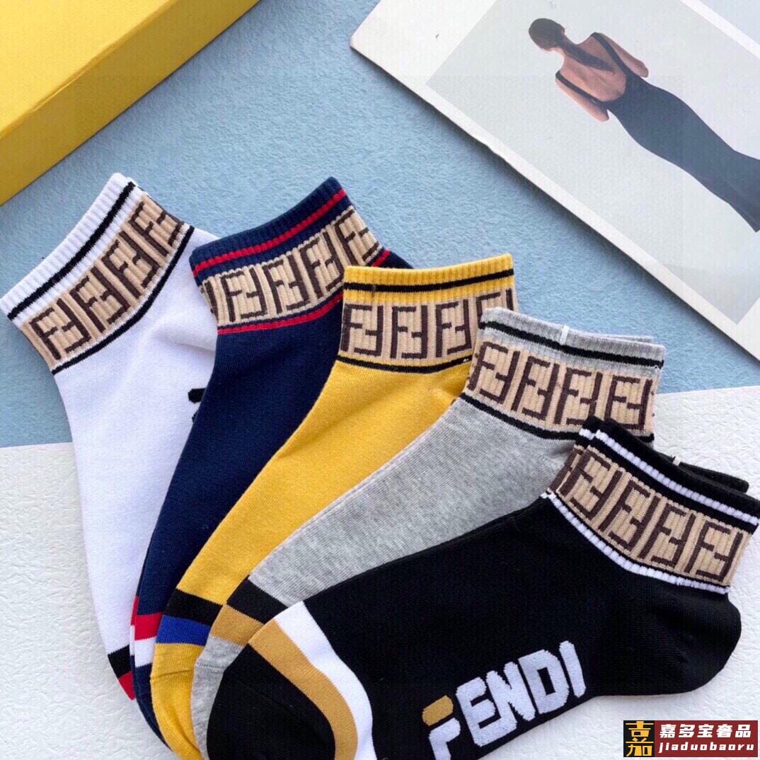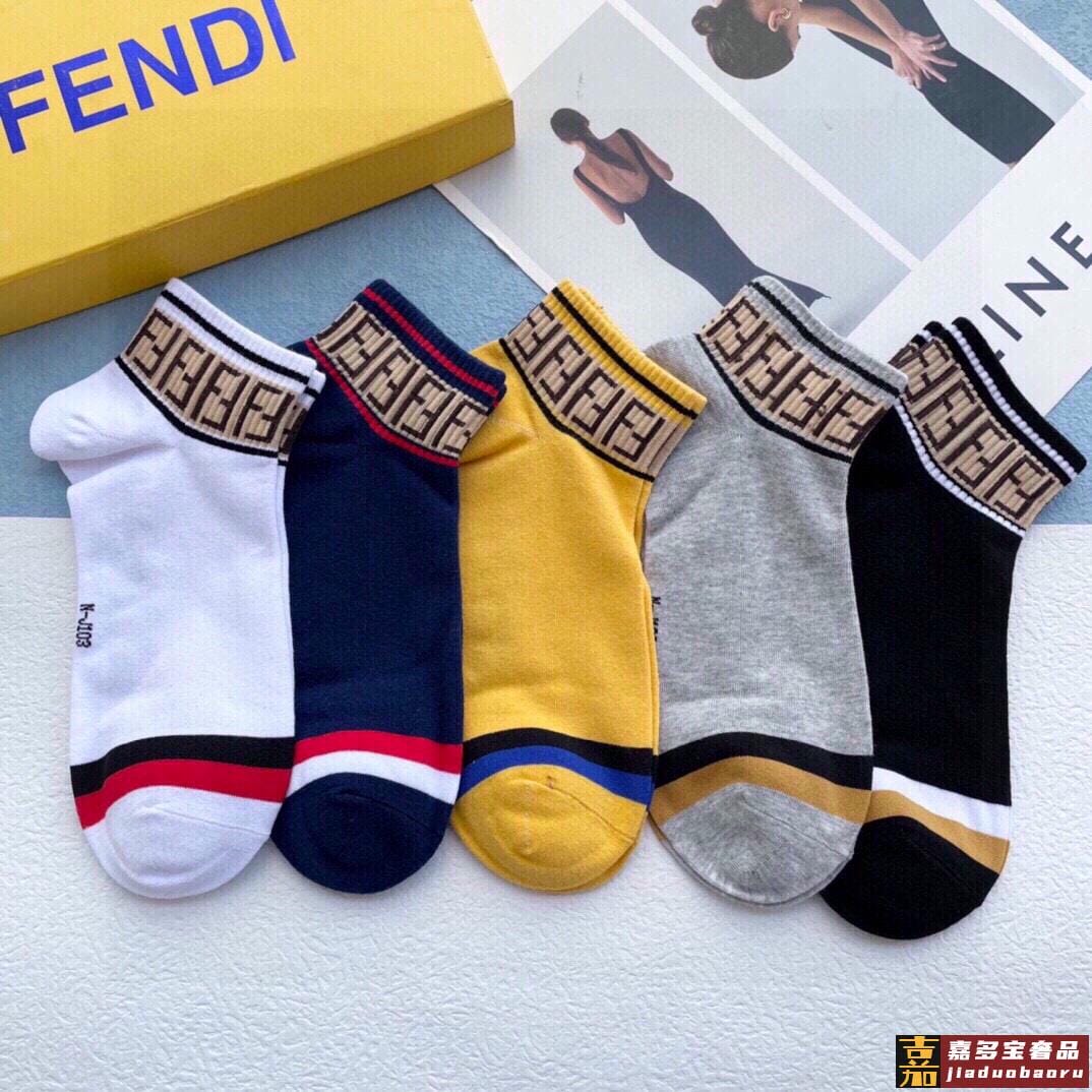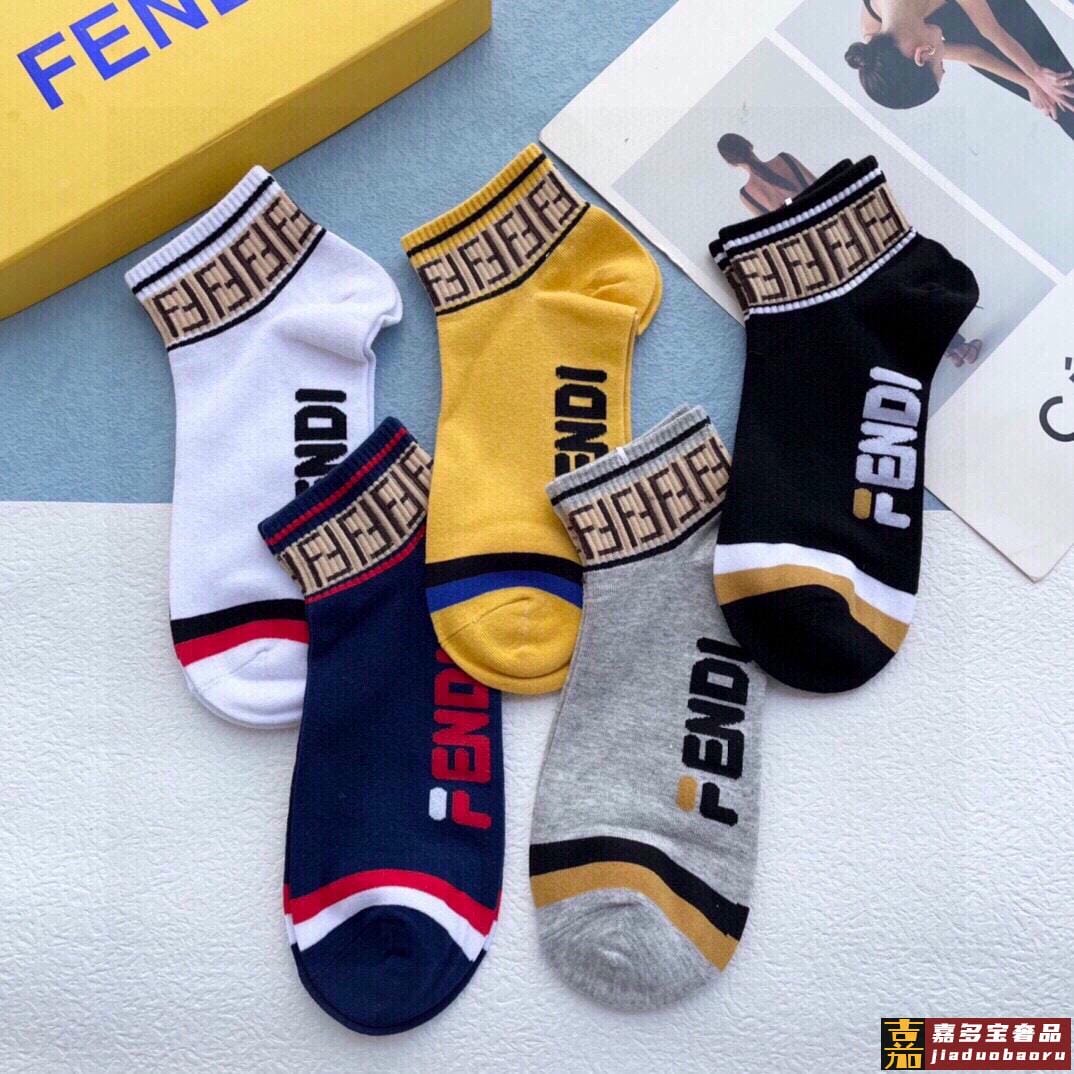 配包装一盒五双芬迪新款男士船袜大专柜同步长袜超级经典的双标志