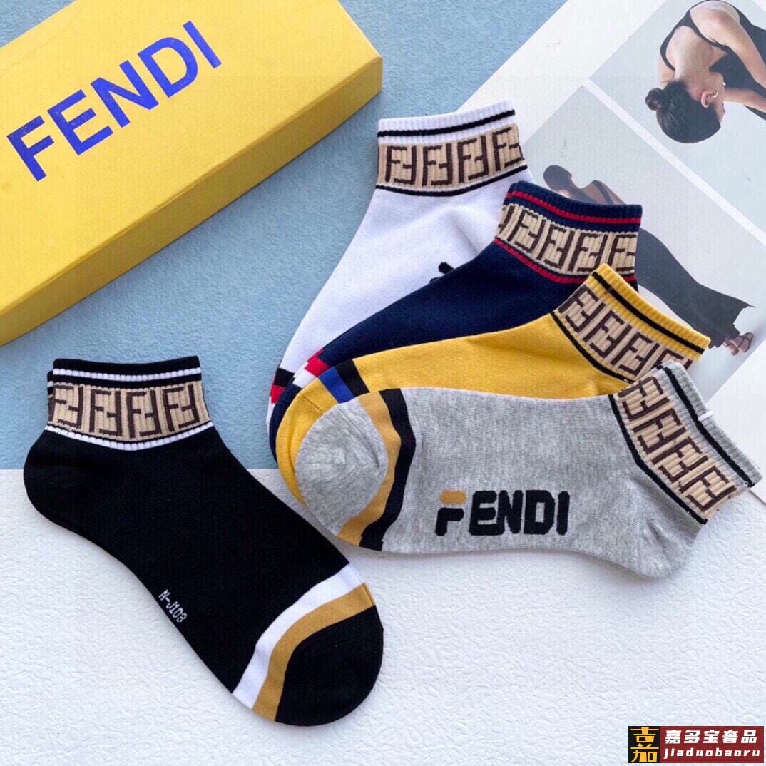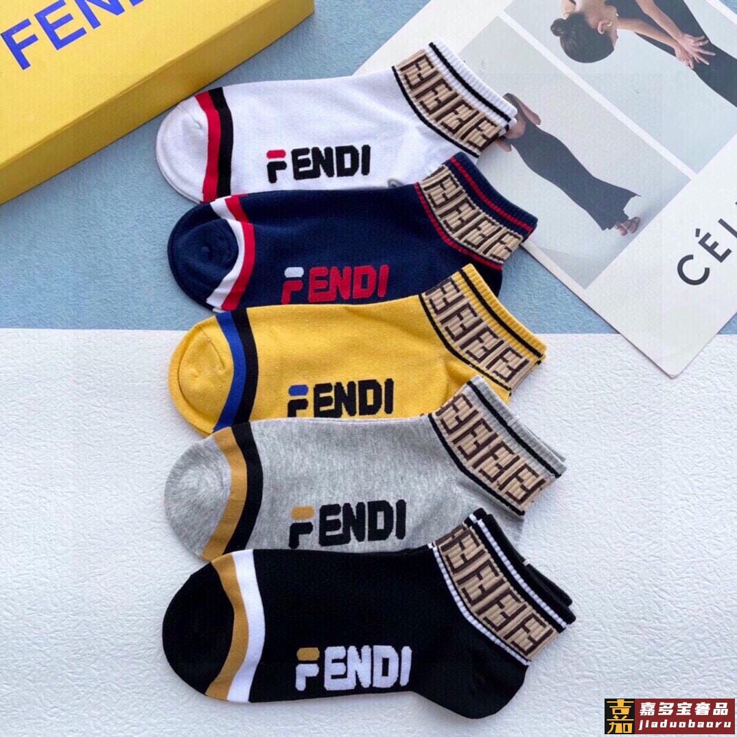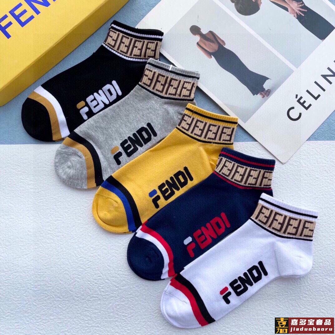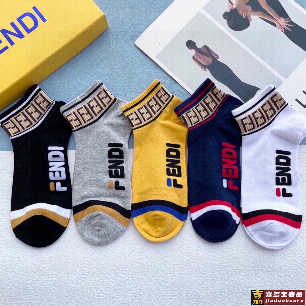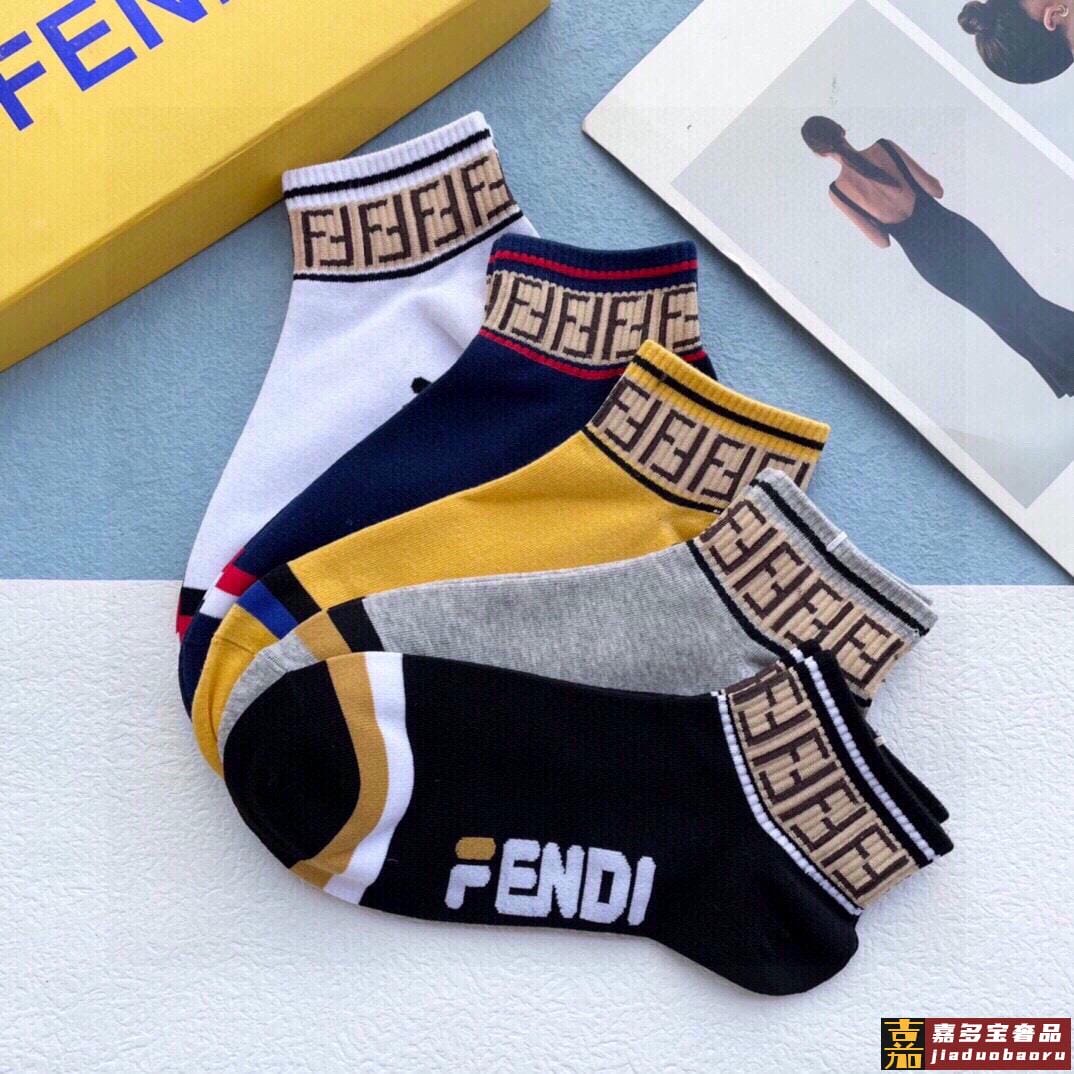 配包装一盒五双芬迪新款男士船袜大专柜同步长袜超级经典的双标志