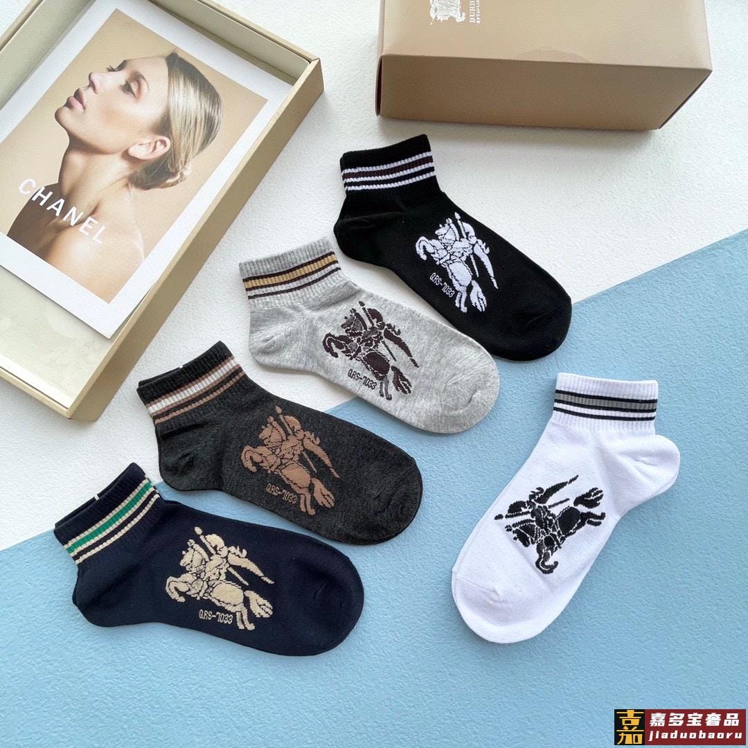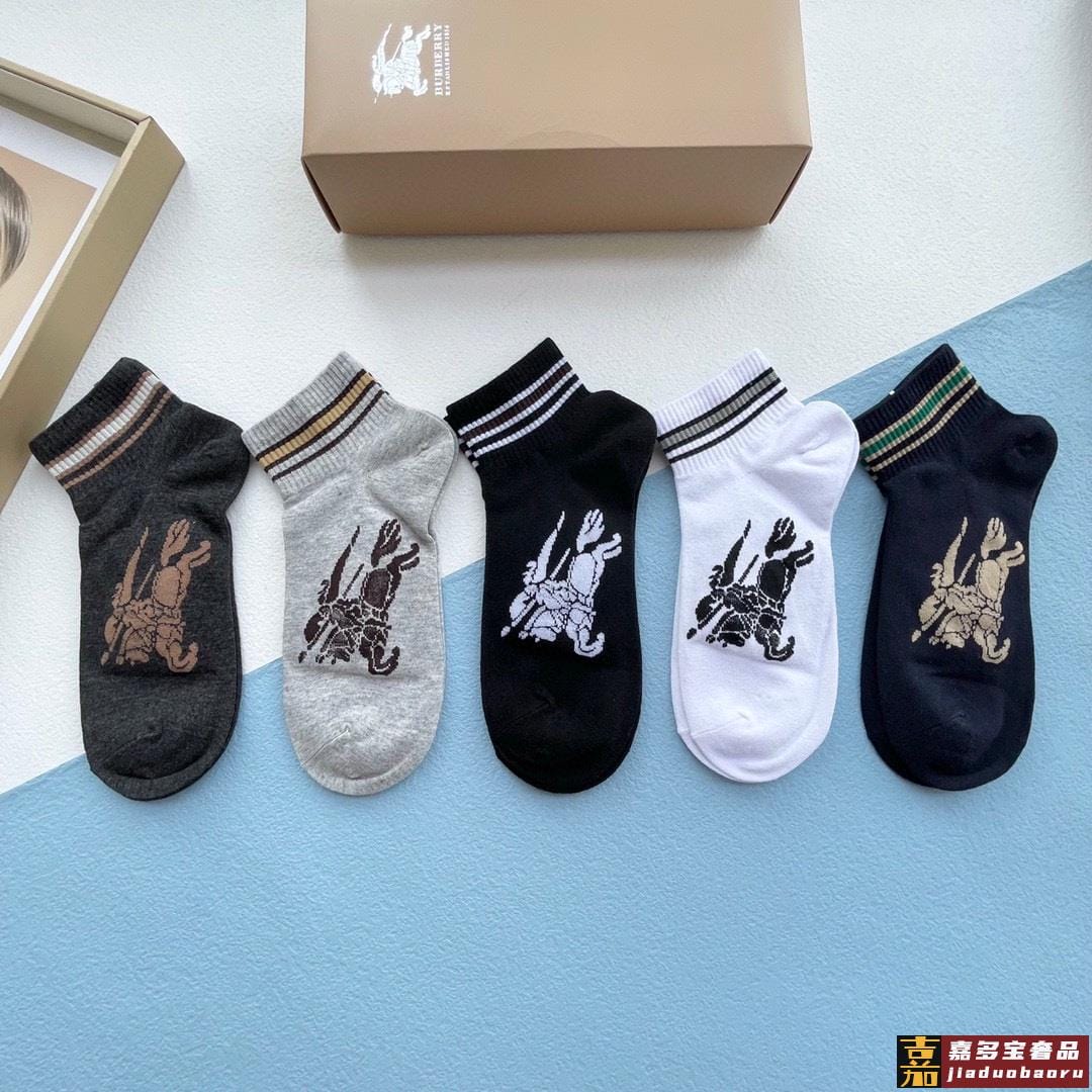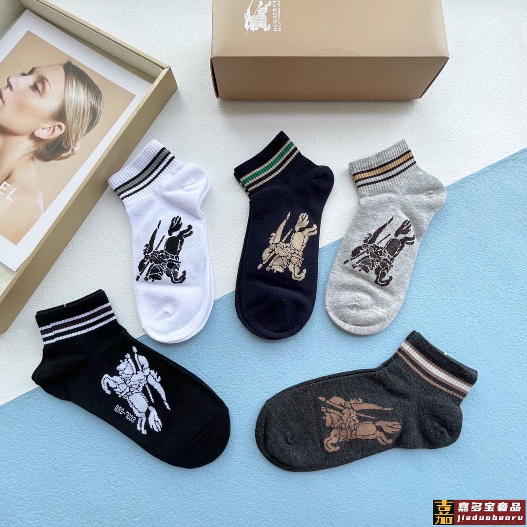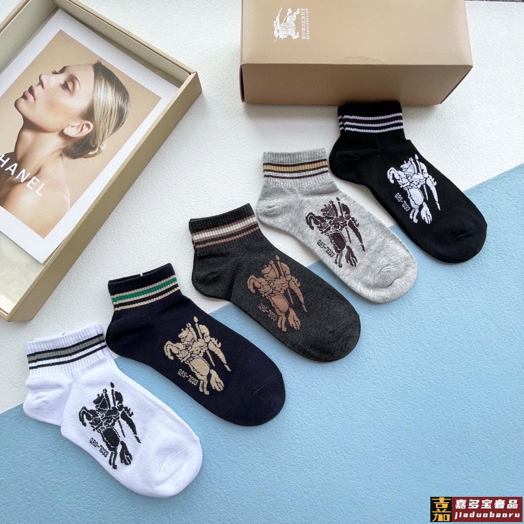 配包装一盒五双巴宝莉专柜最新款巴格船袜子巴家专柜同步船袜经典