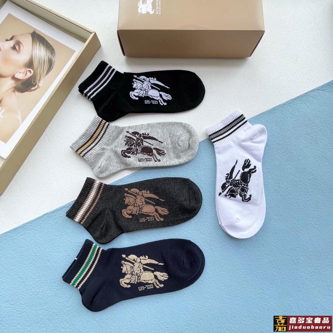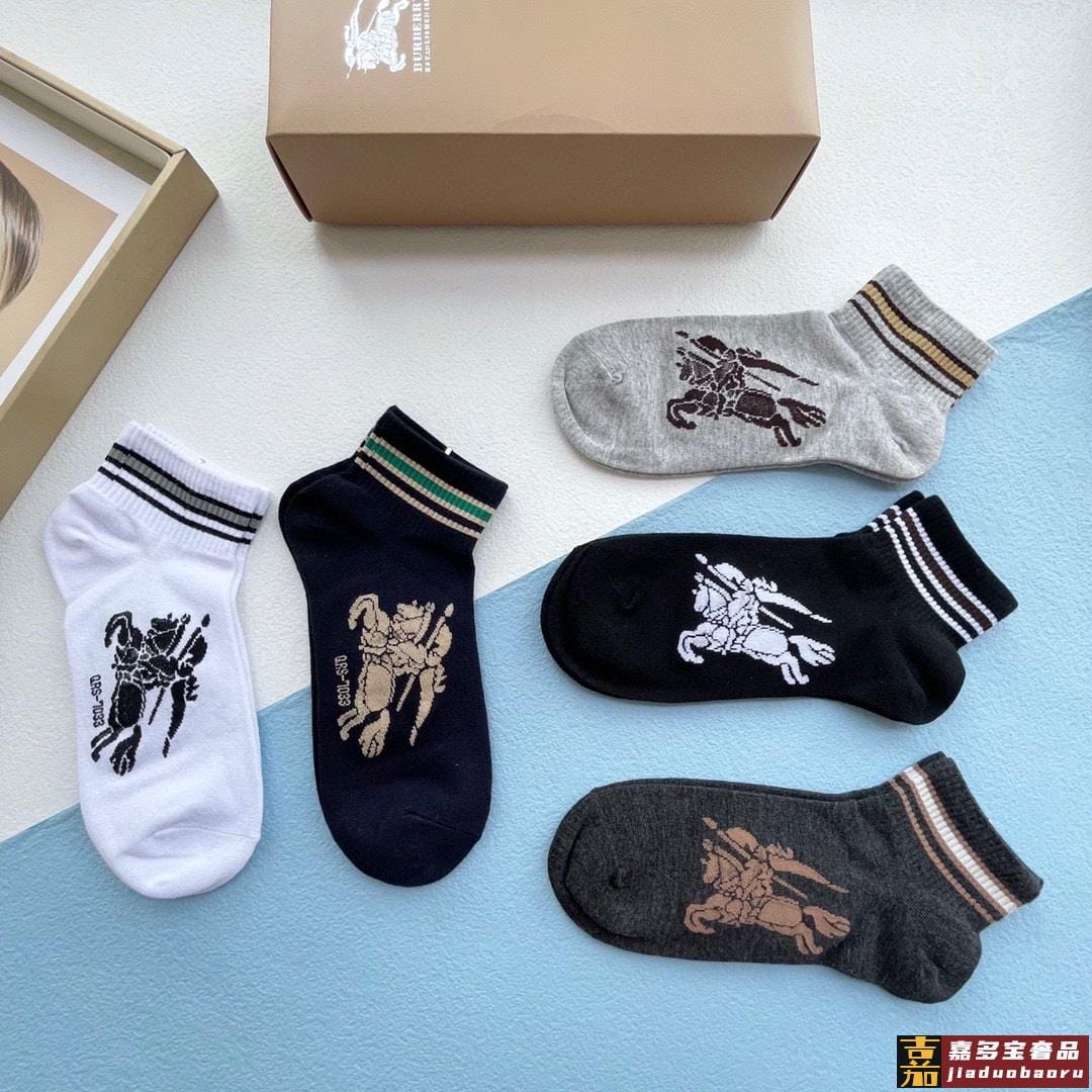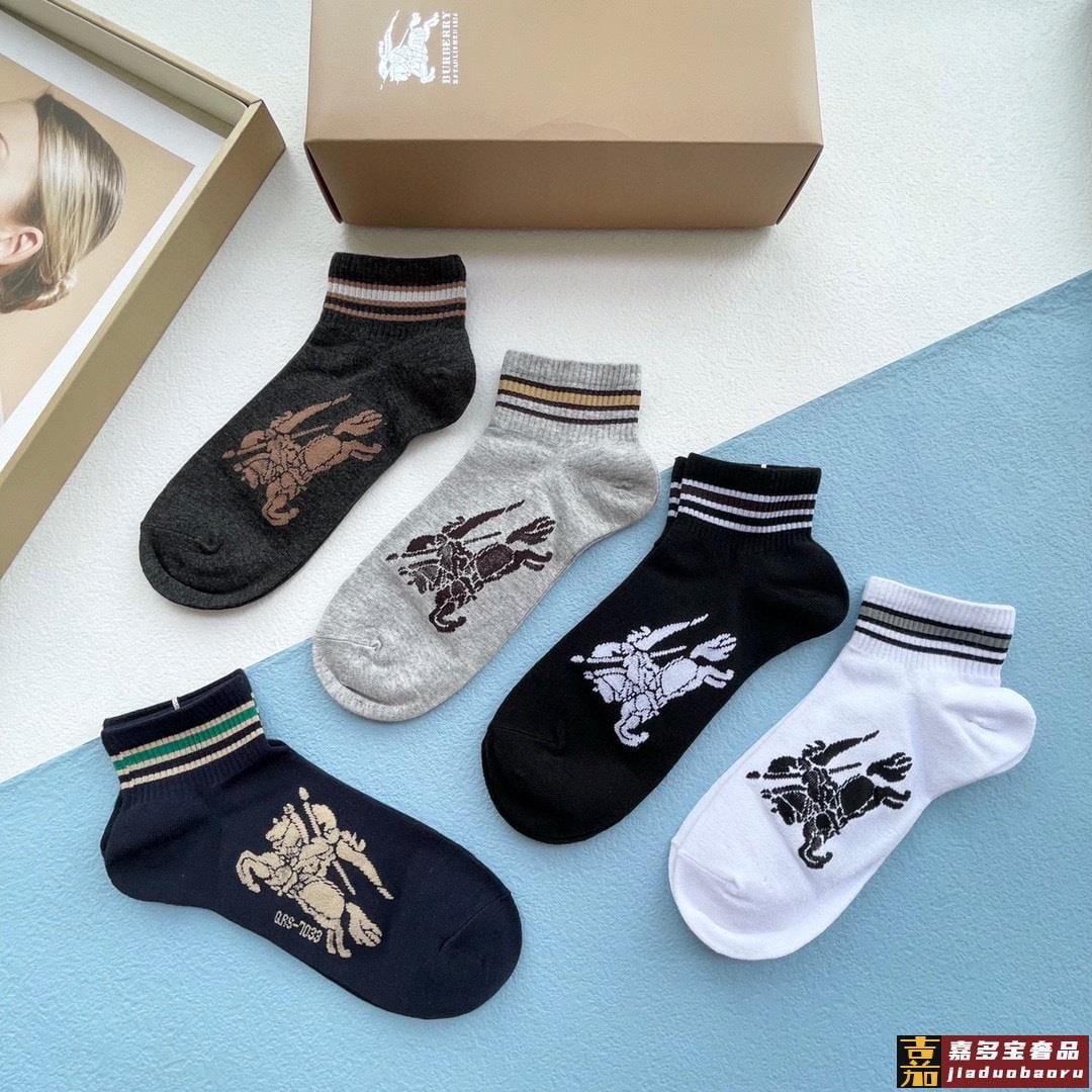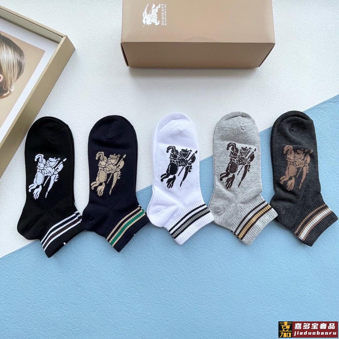 配包装一盒五双巴宝莉专柜最新款巴格船袜子巴家专柜同步船袜经典