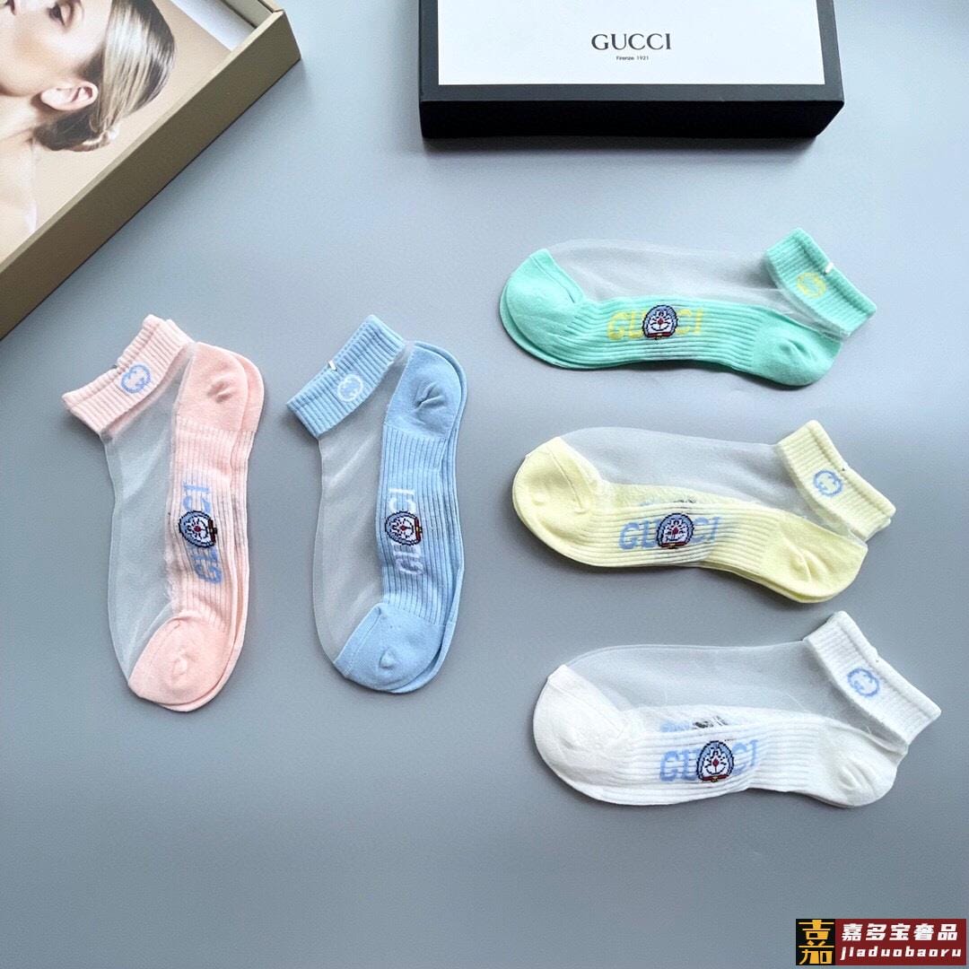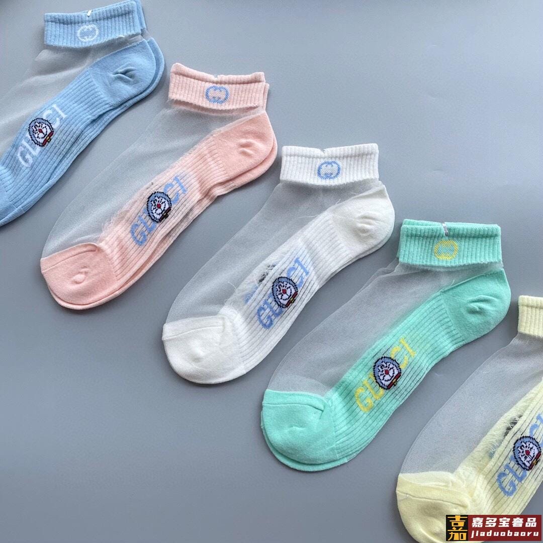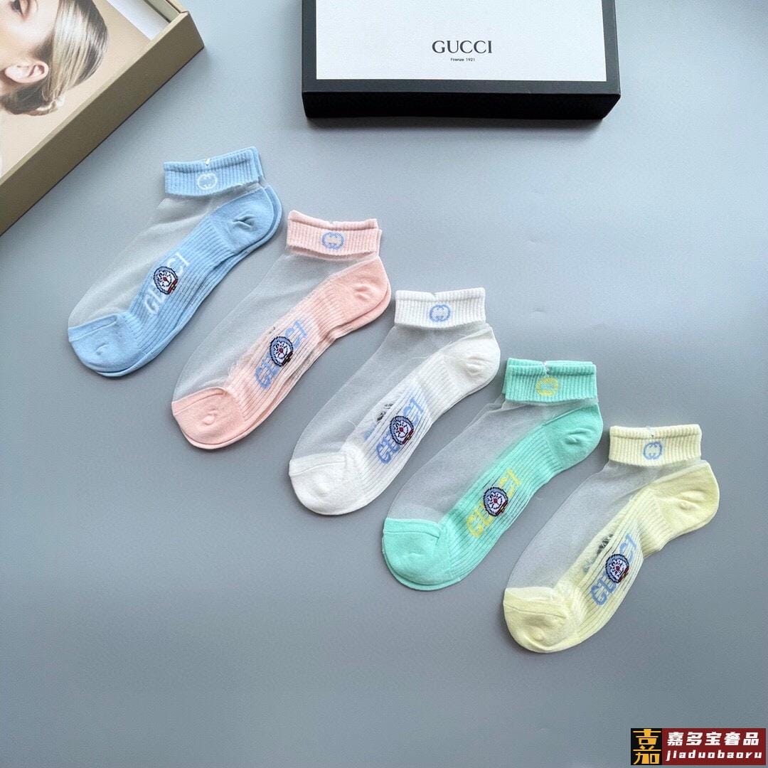 配包装一盒五双古奇新款短款冰丝袜子冰丝加棉双镂空经典标志轻薄
