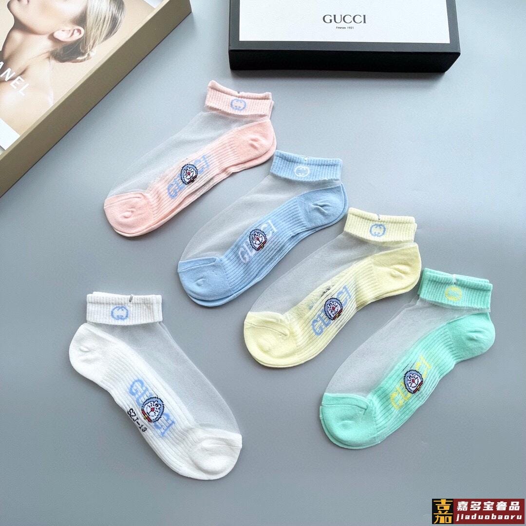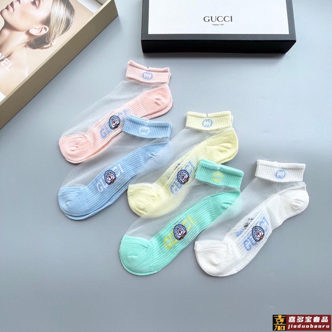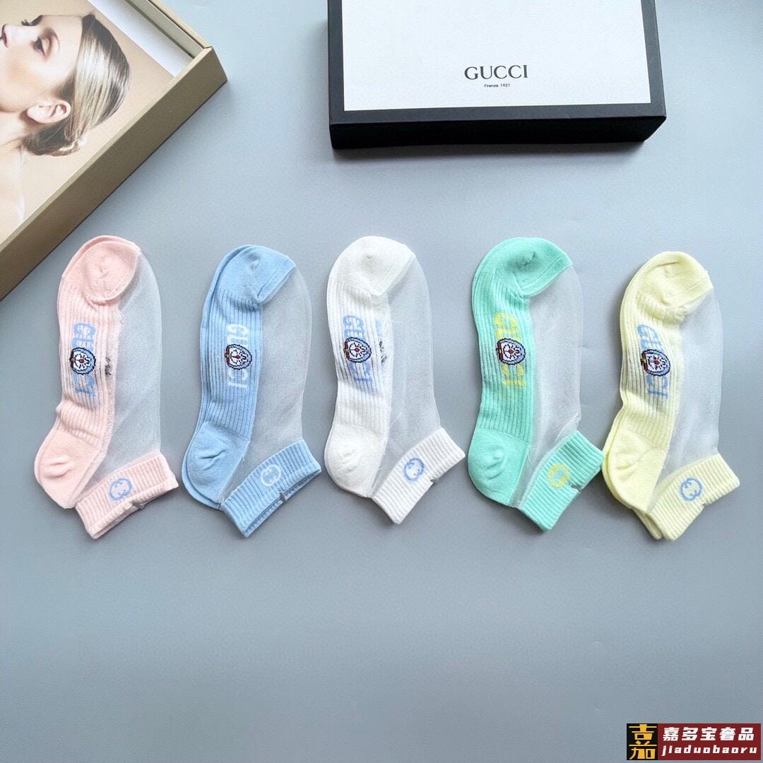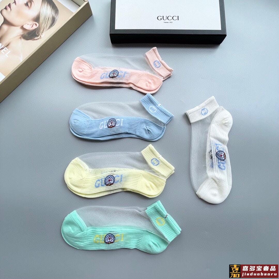 配包装一盒五双古奇新款短款冰丝袜子冰丝加棉双镂空经典标志轻薄