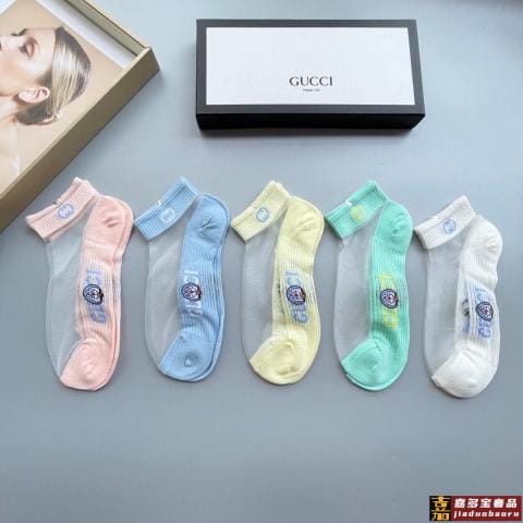 配包装一盒五双古奇新款短款冰丝袜子冰丝加棉双镂空经典标志轻薄
