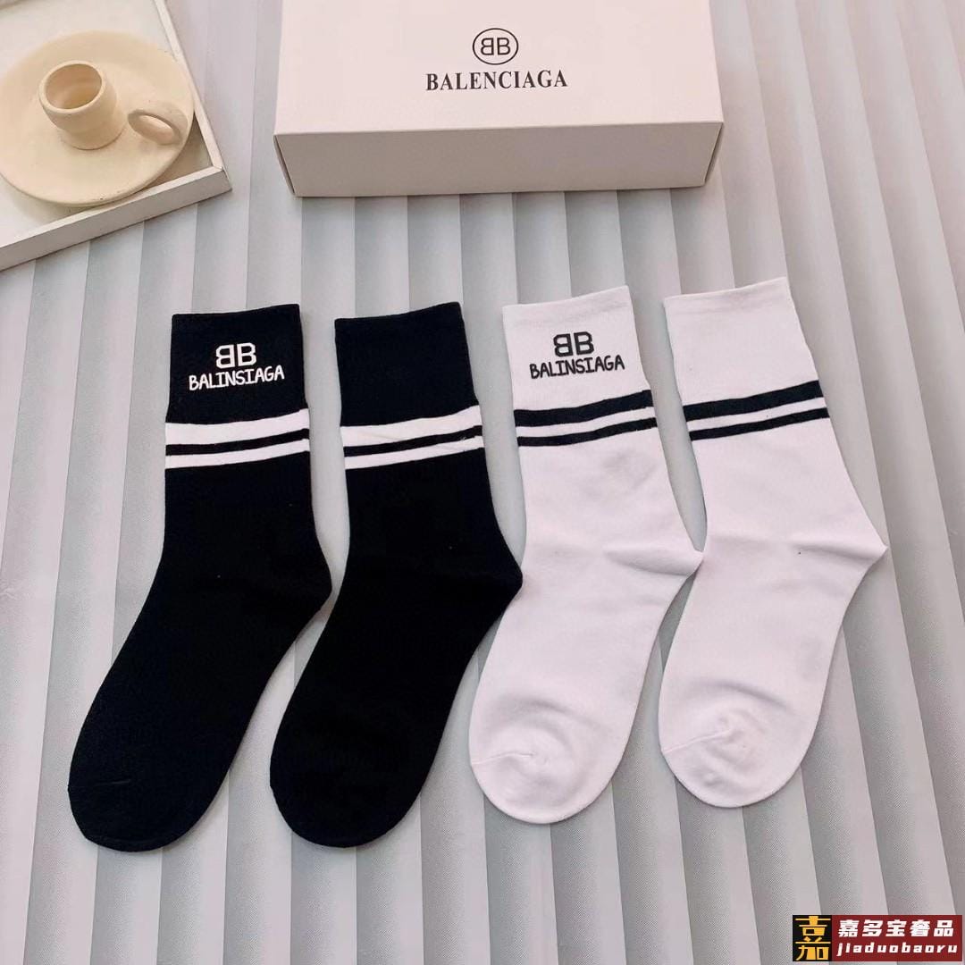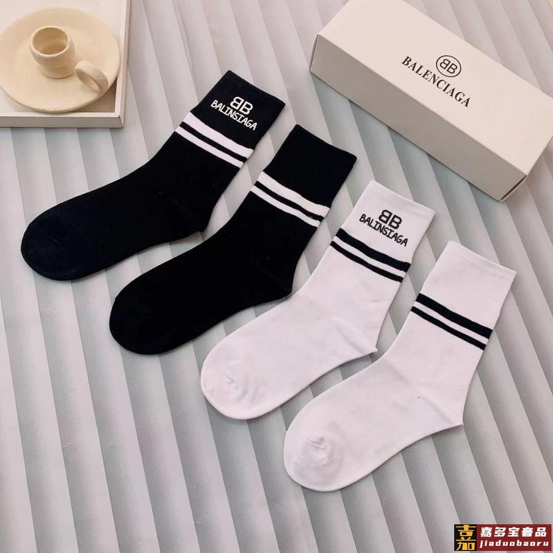 配包装一盒双巴黎世家专柜新款男女款高端烫印袜子专柜同步上新超