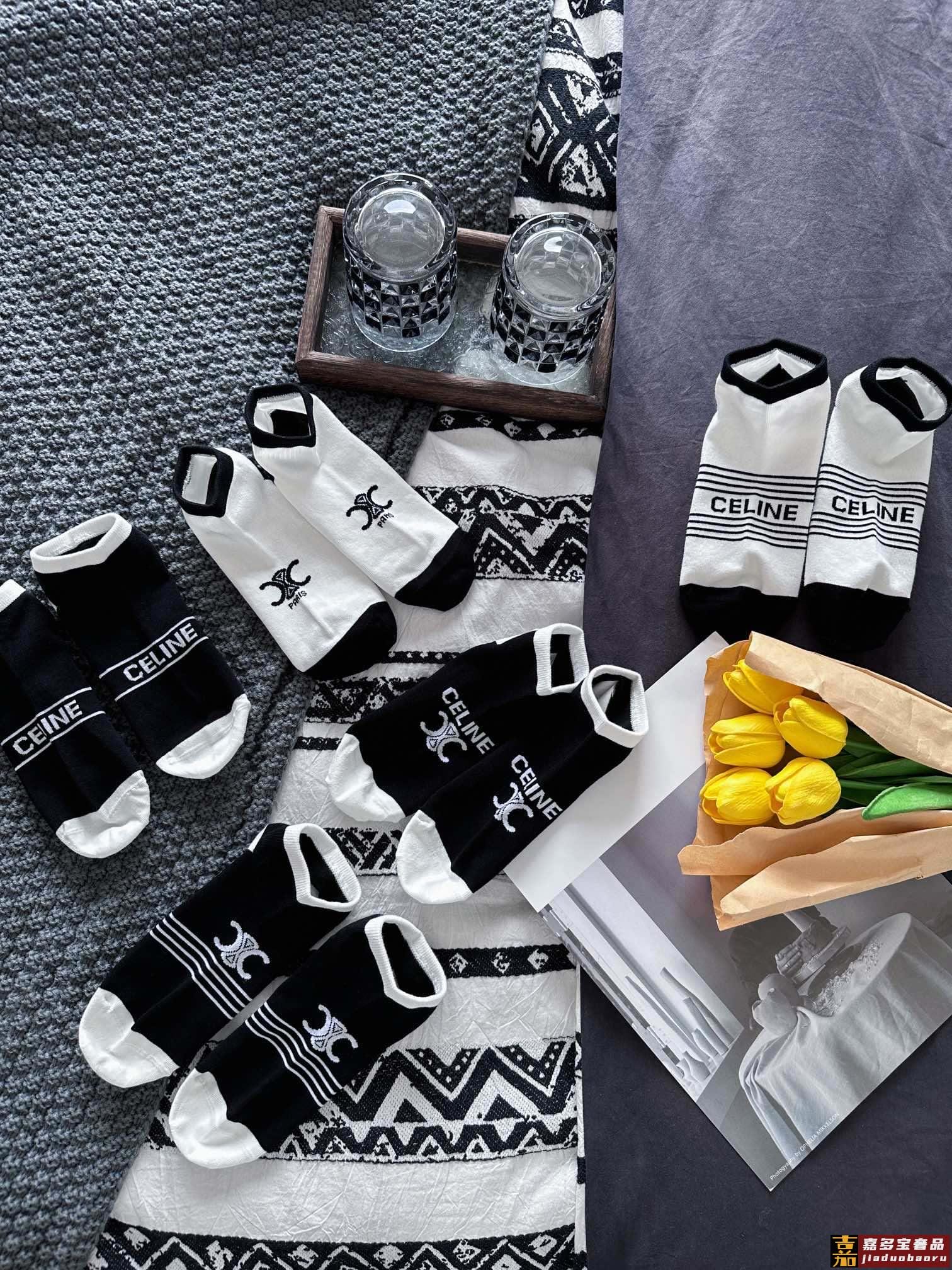 配包装一盒五双赛琳高版本好看到爆炸欧美大牌男女款船袜潮人必不