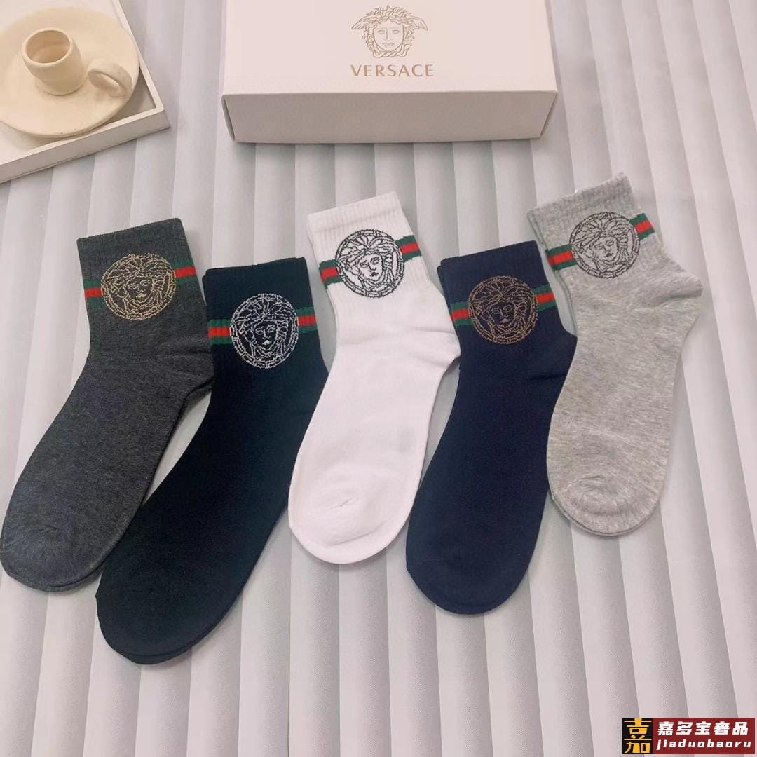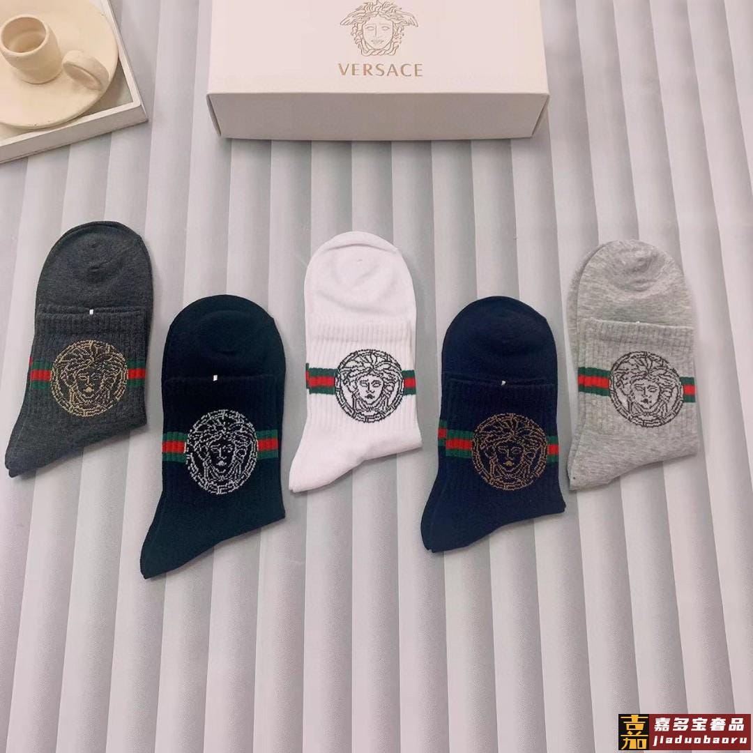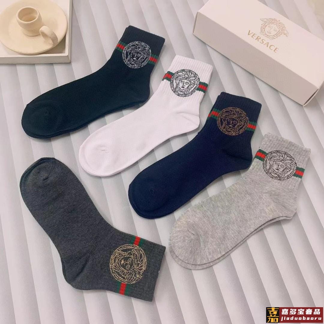 配包装一盒五双欧美大牌范思哲好看到爆炸欧美大牌中筒袜男款潮人