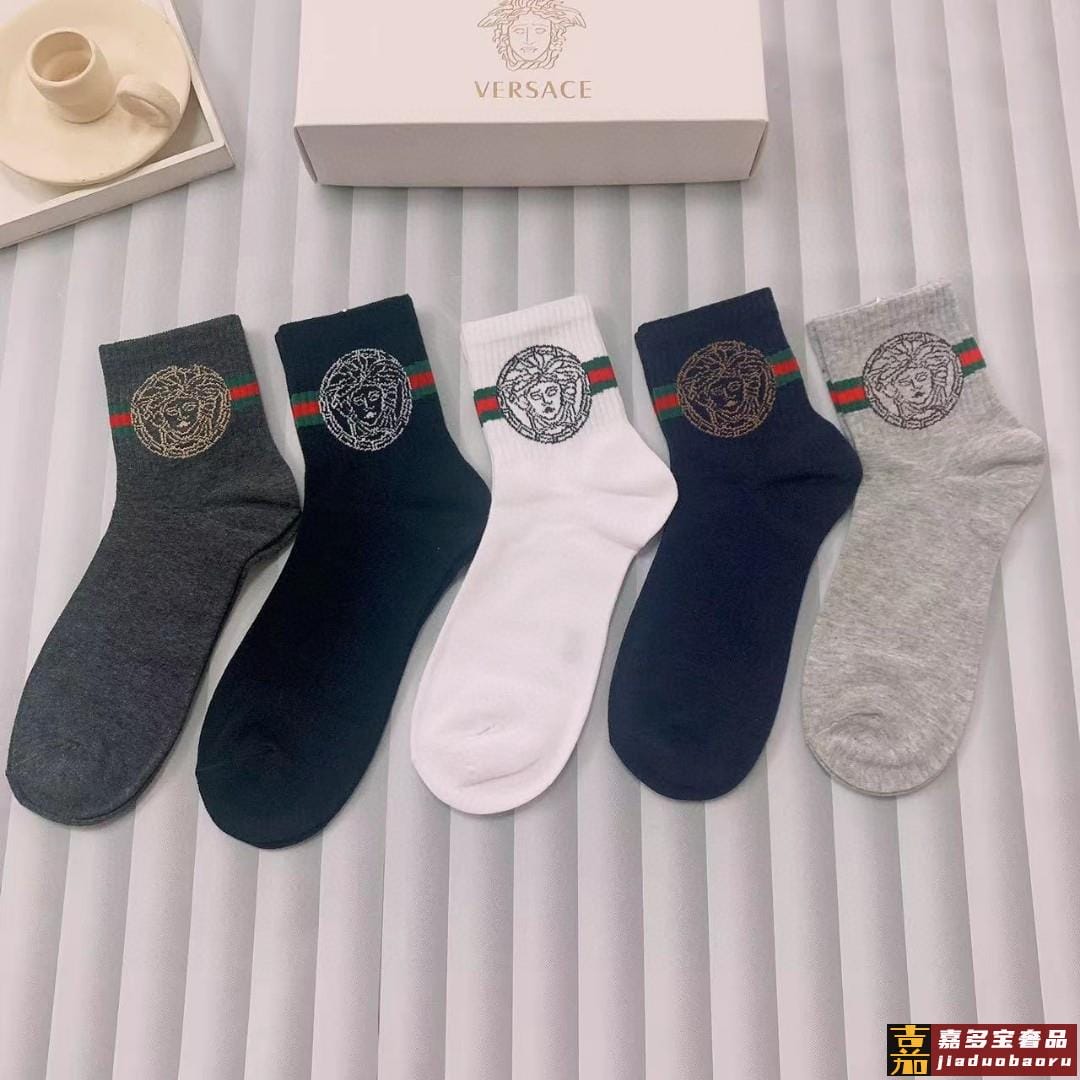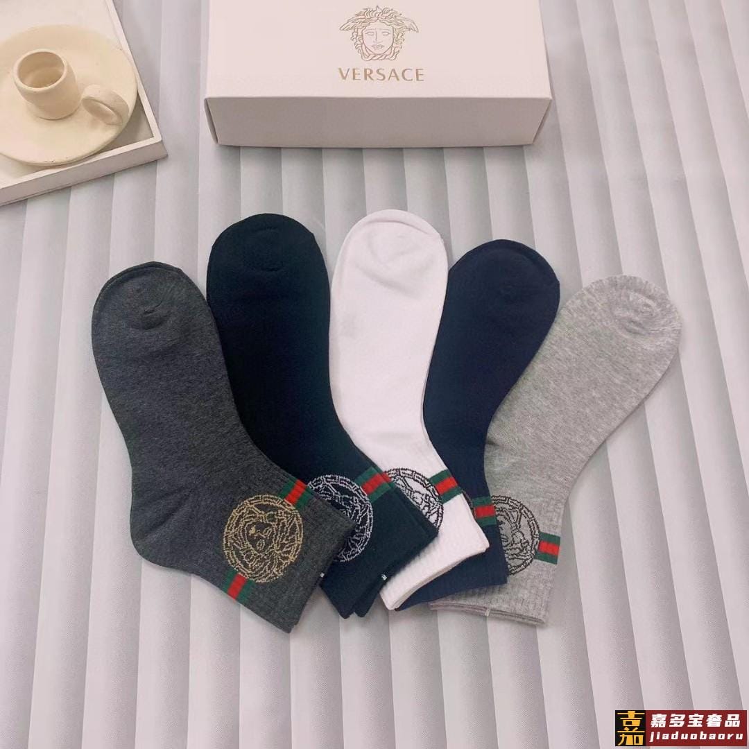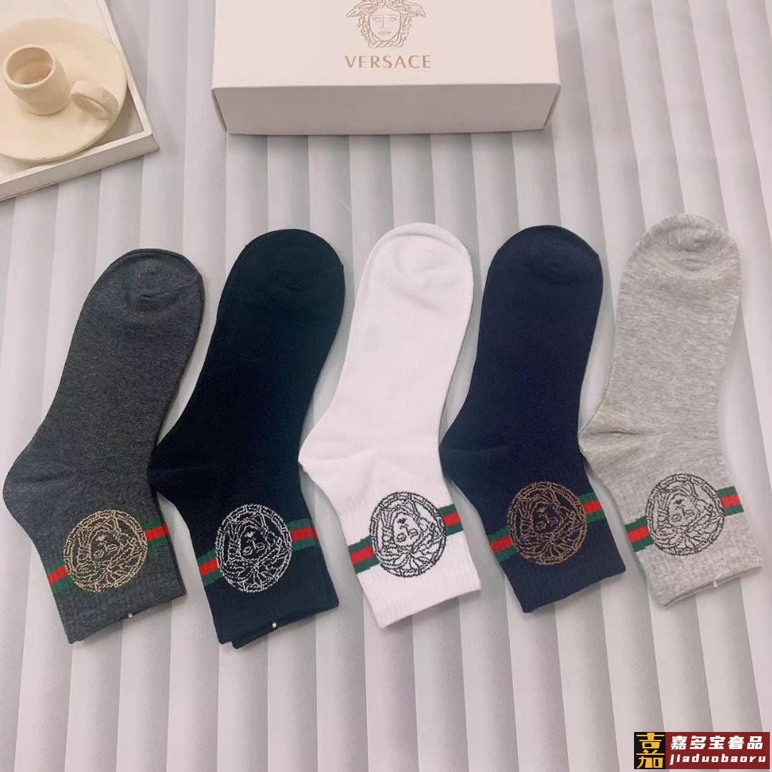 配包装一盒五双欧美大牌范思哲好看到爆炸欧美大牌中筒袜男款潮人