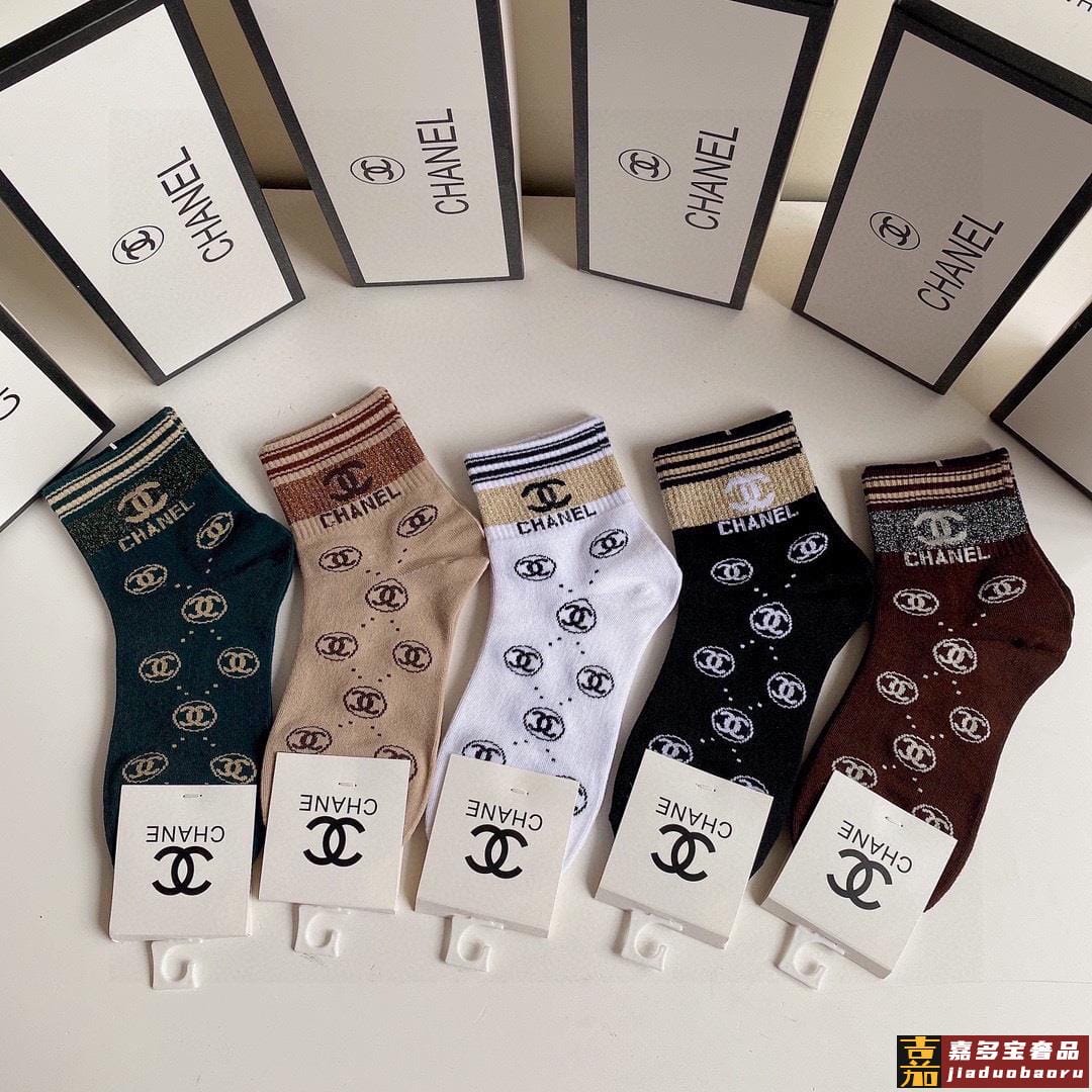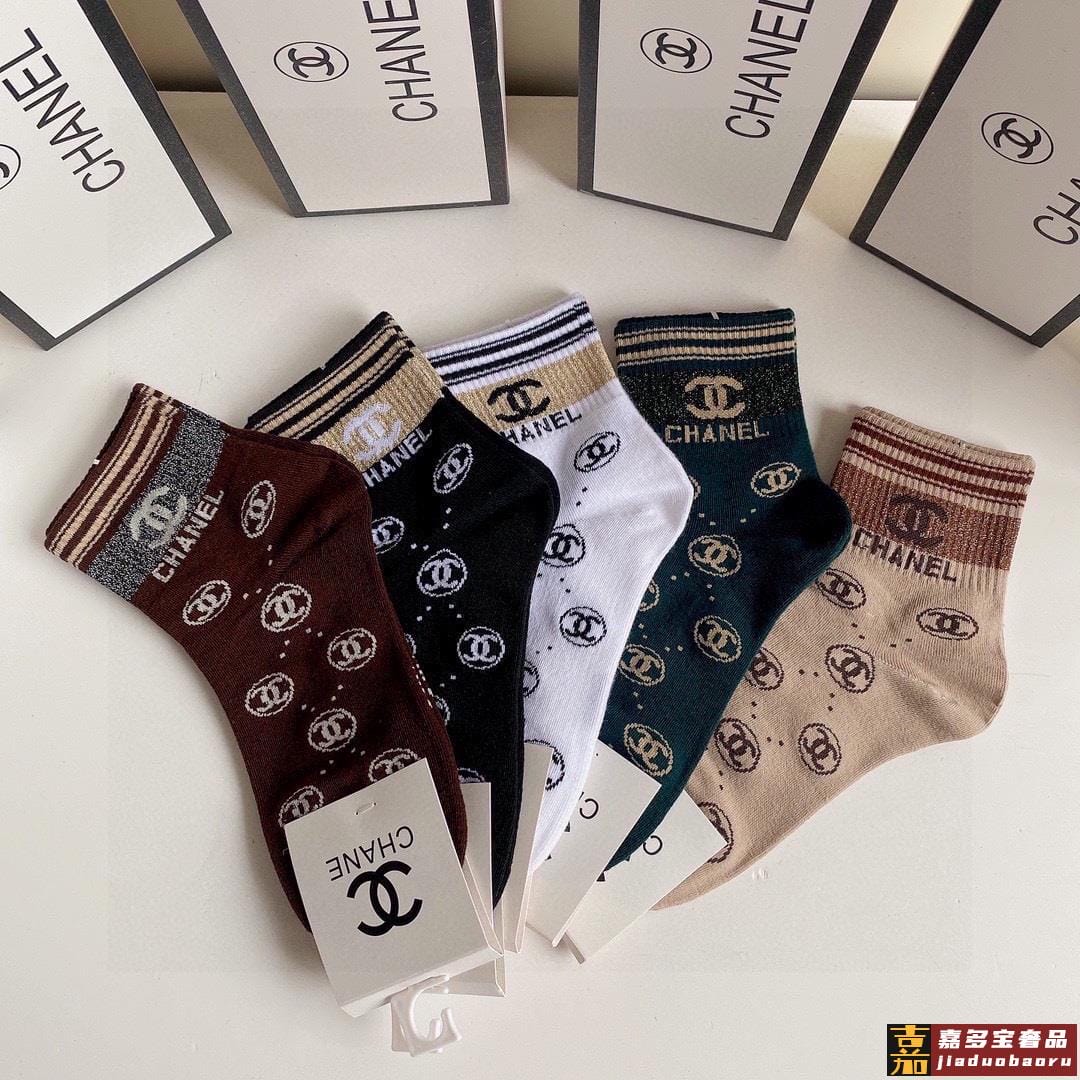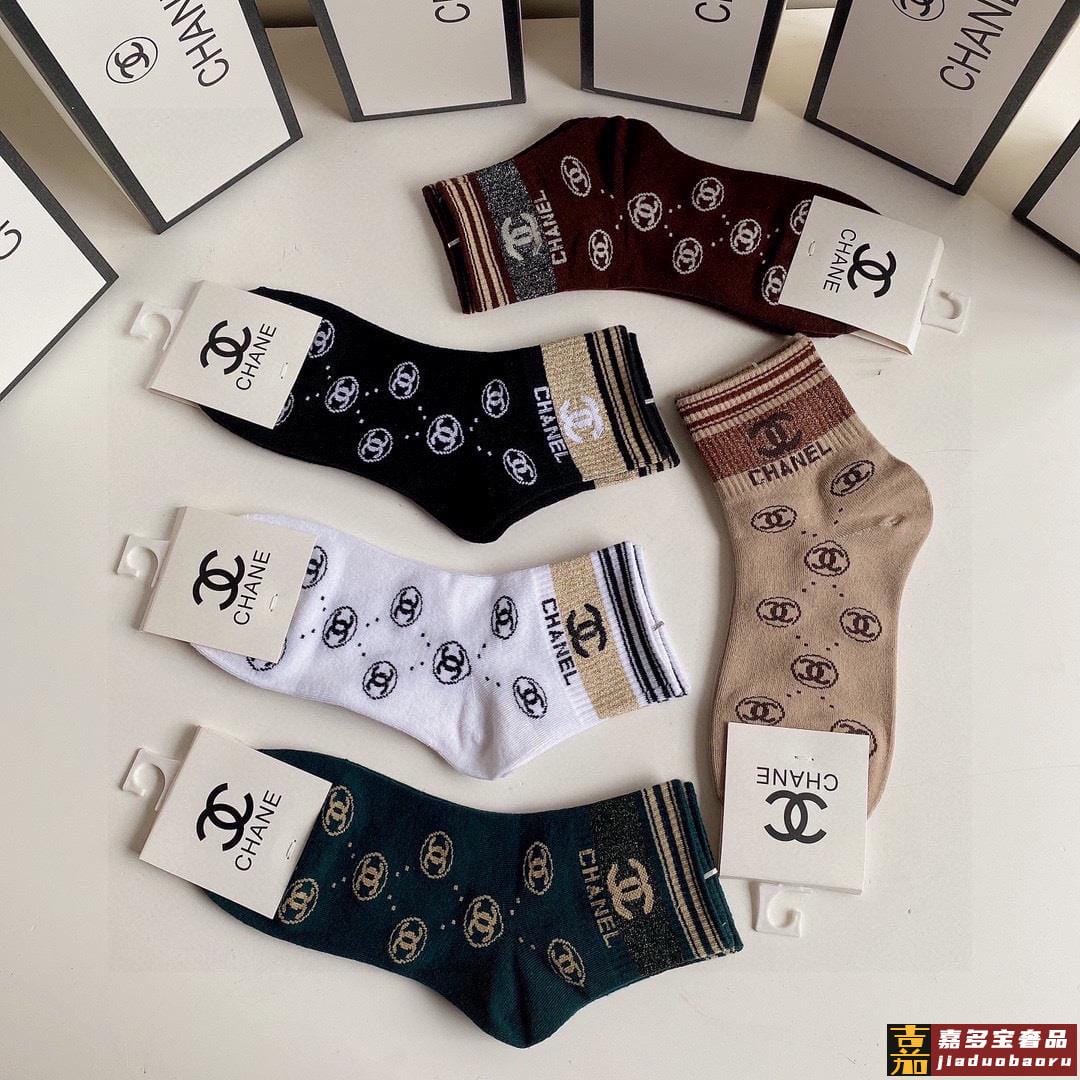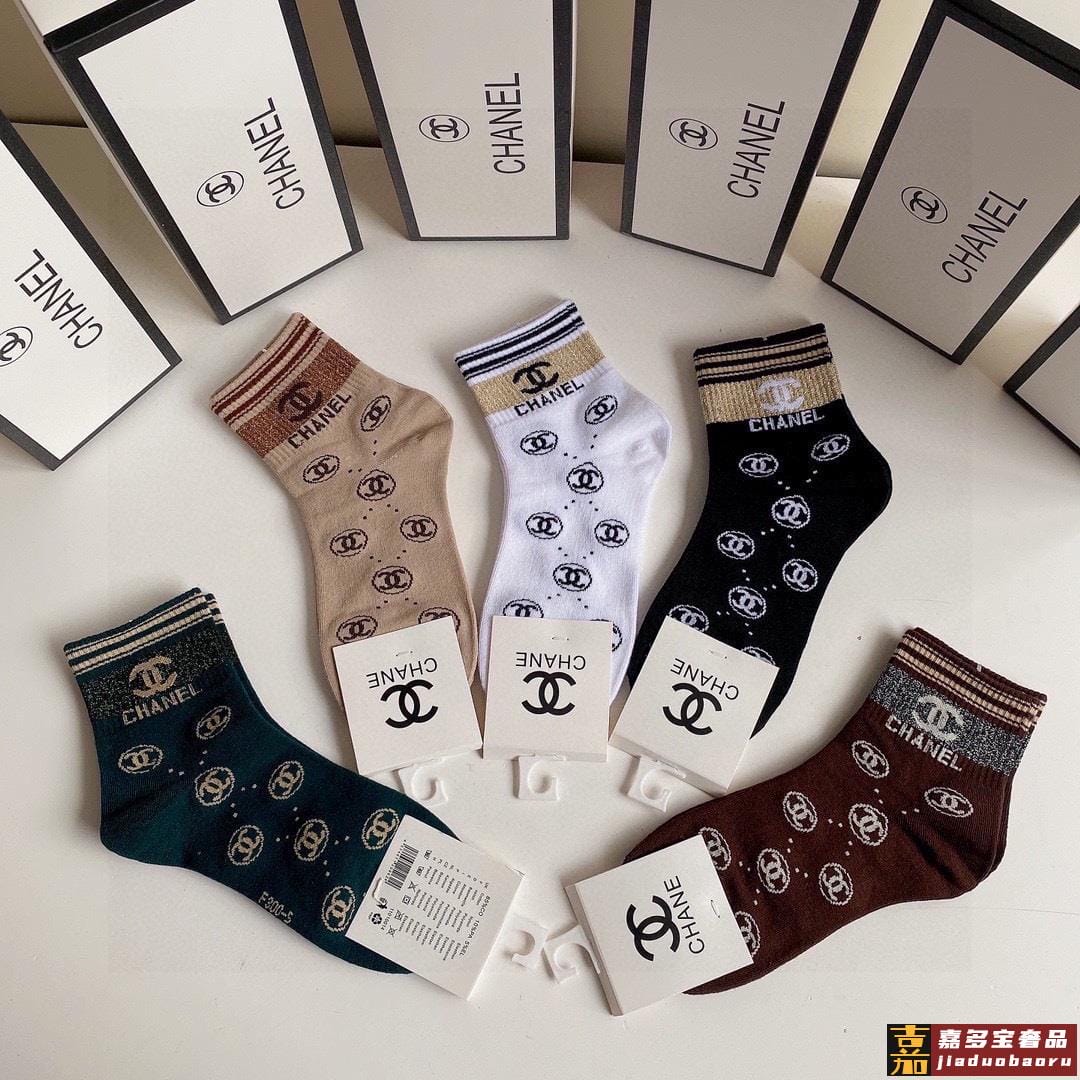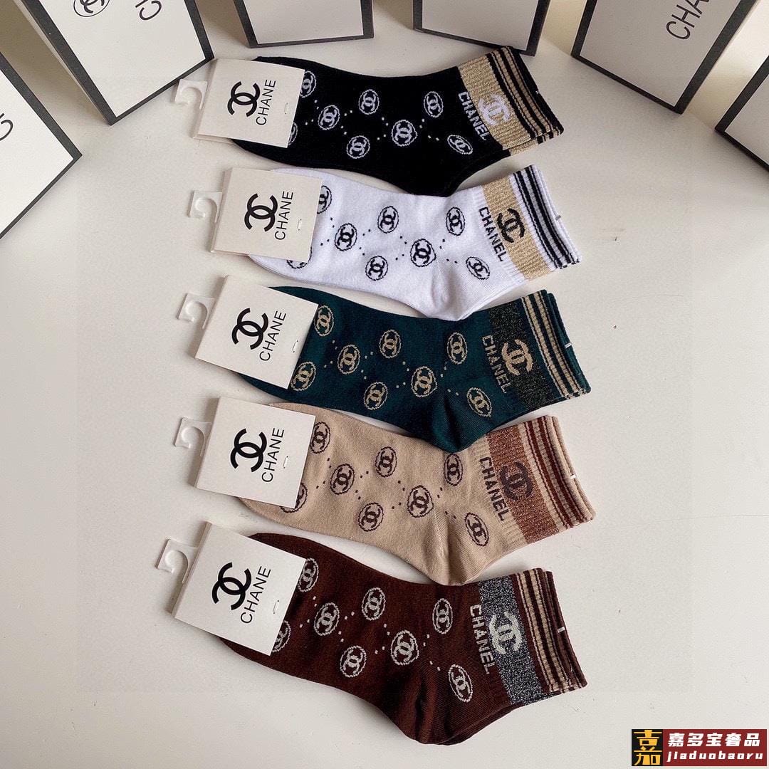 特配包装香奈儿新款经典中长款堆堆袜袜子一盒五双专柜同步筒款袜