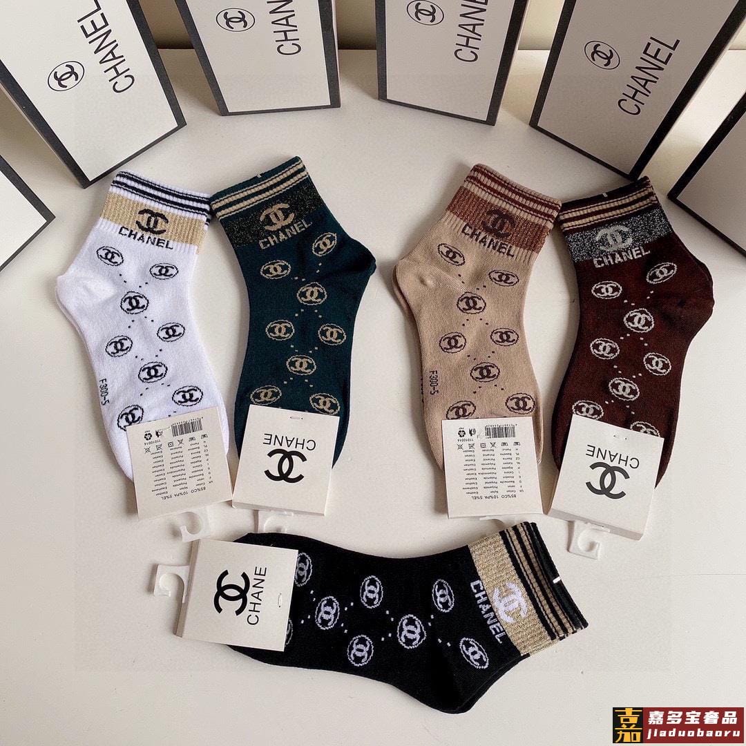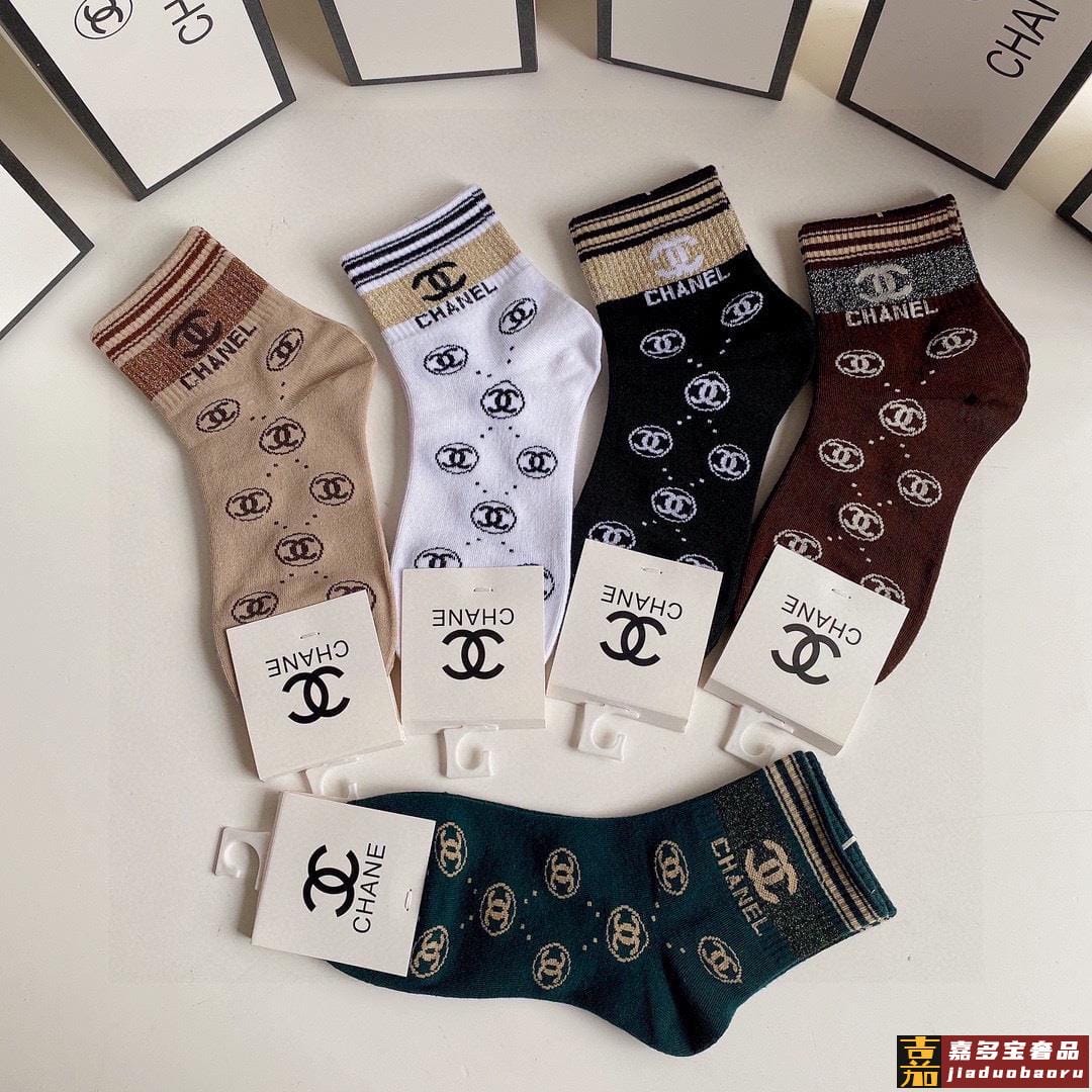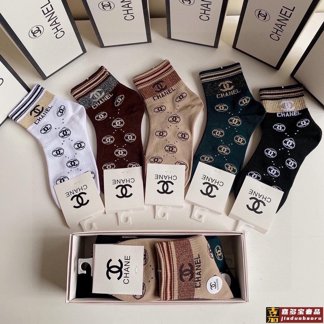 特配包装香奈儿新款经典金丝中长款堆堆袜袜子一盒五双专柜同步筒