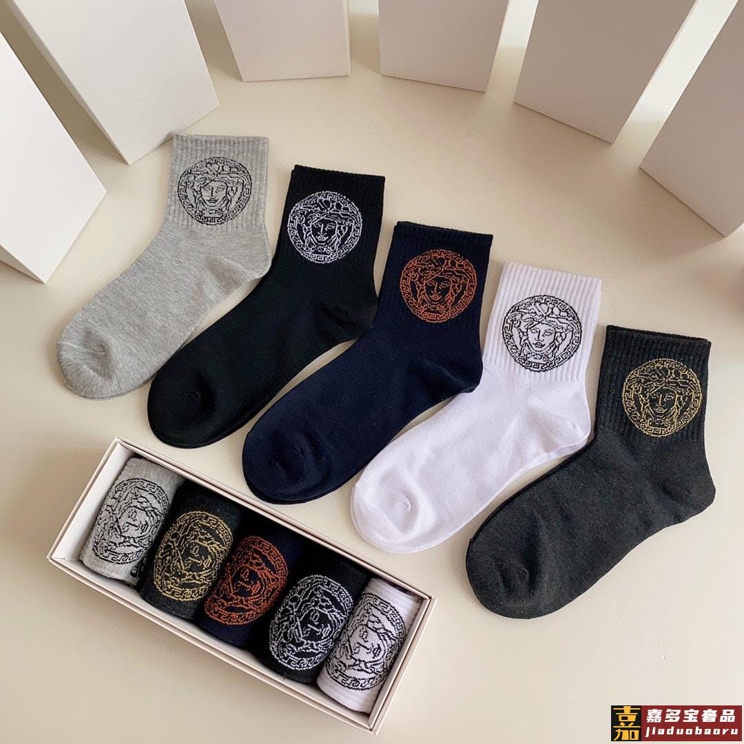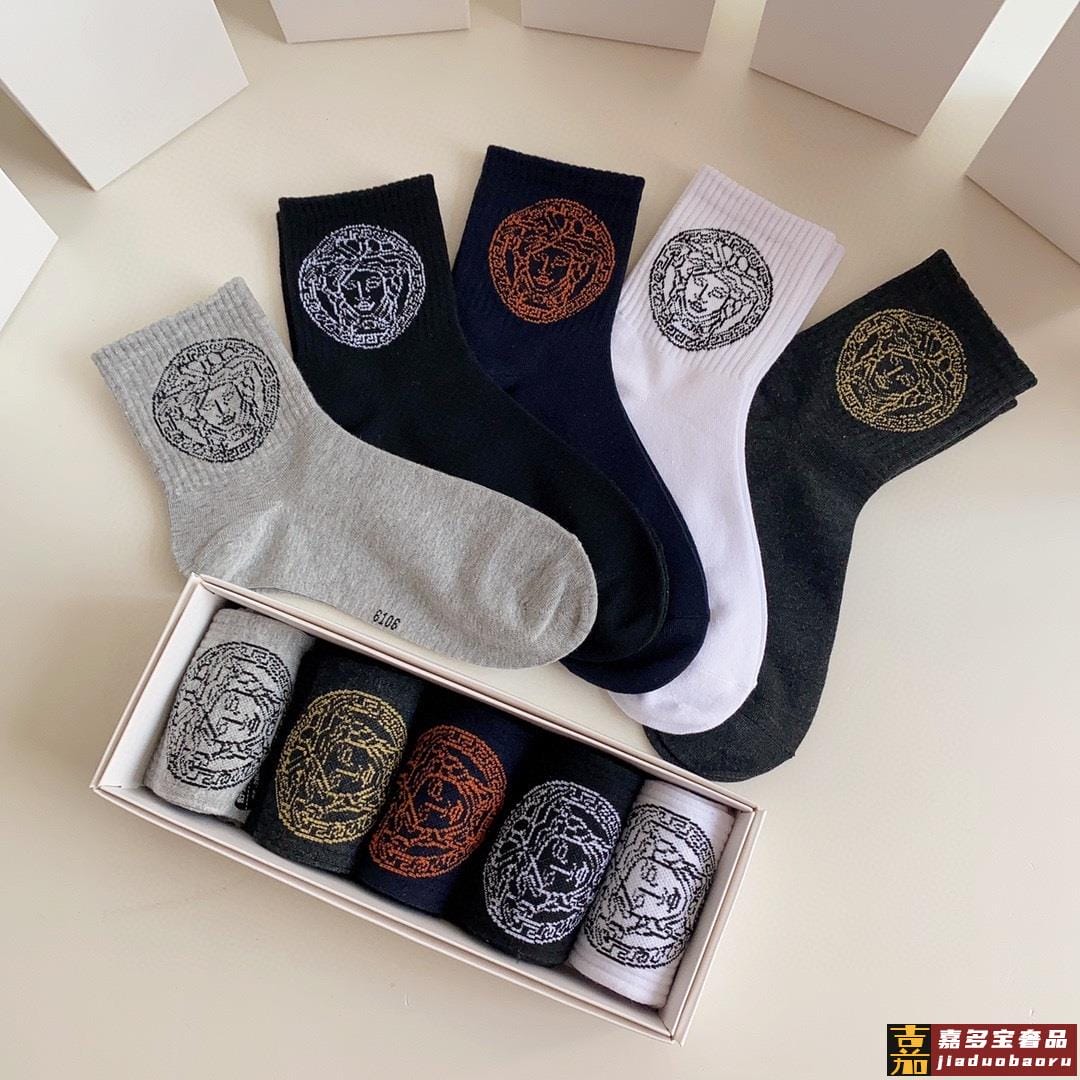 特配包装范思哲新款经典中长款堆堆袜袜子一盒五双专柜同步筒袜袜