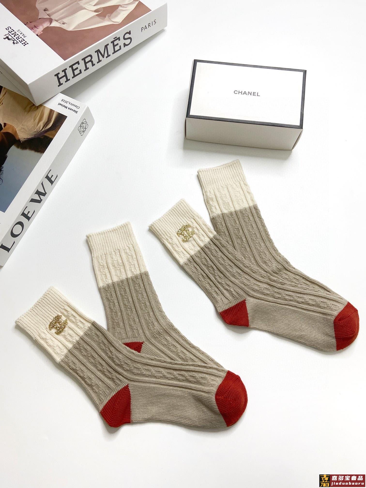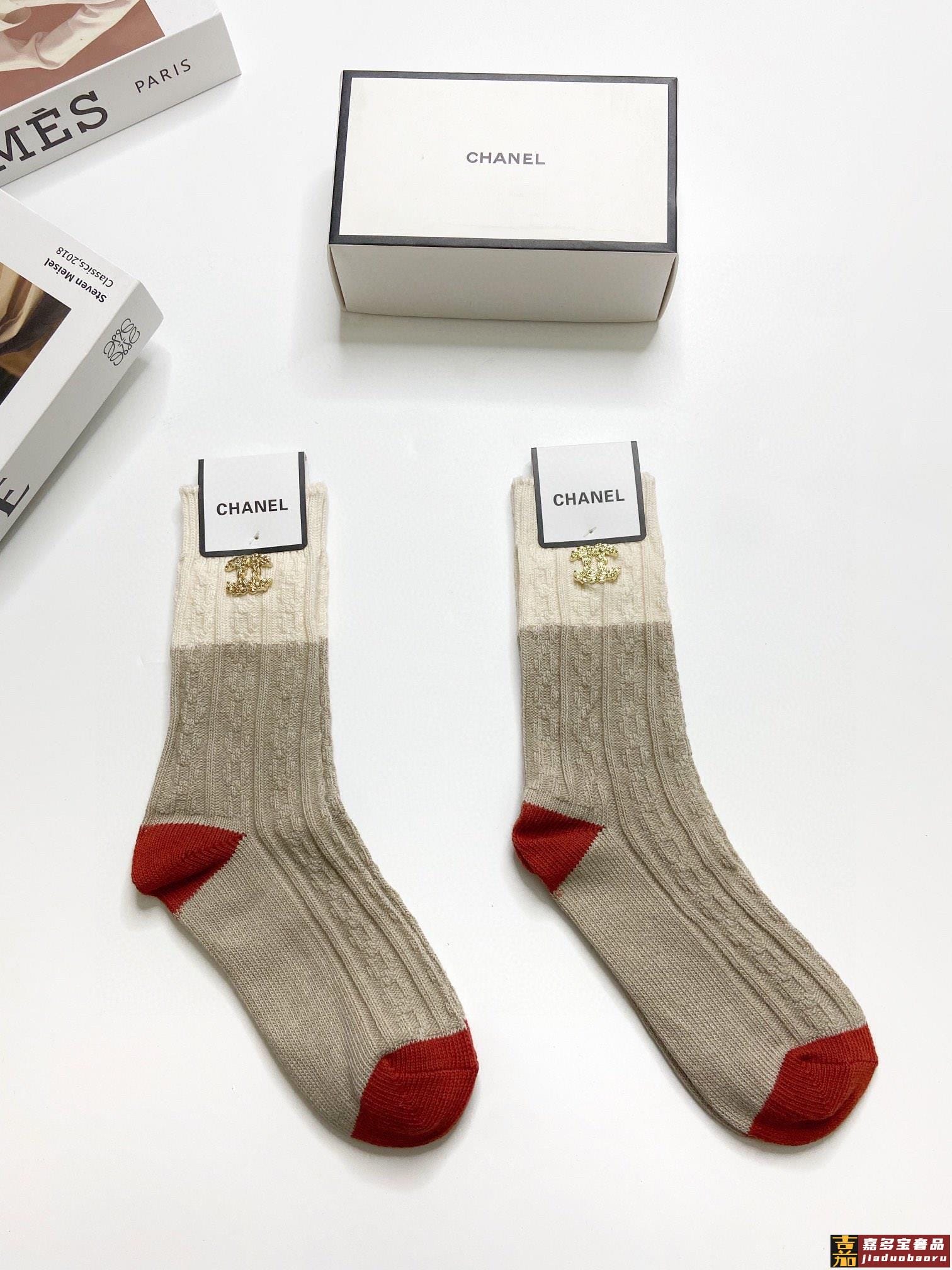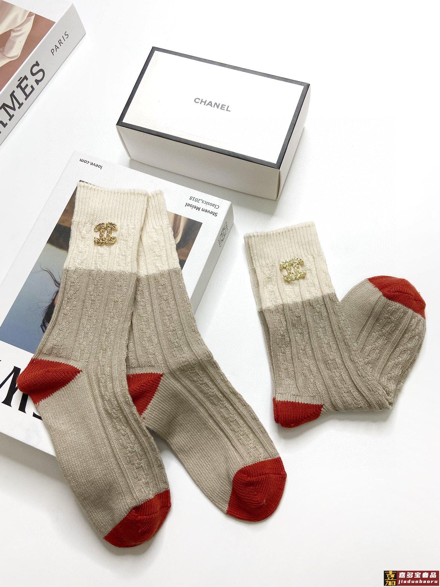 配包装一盒双香奈儿经典字母纯棉中筒袜重工装饰个性时尚爆款专柜