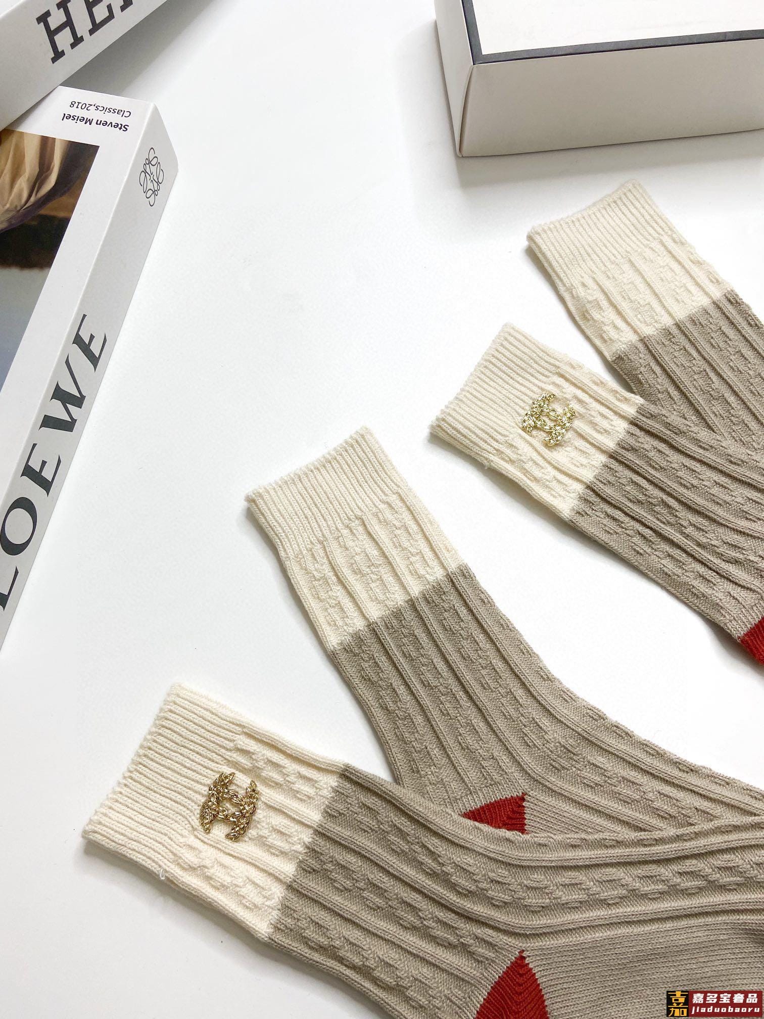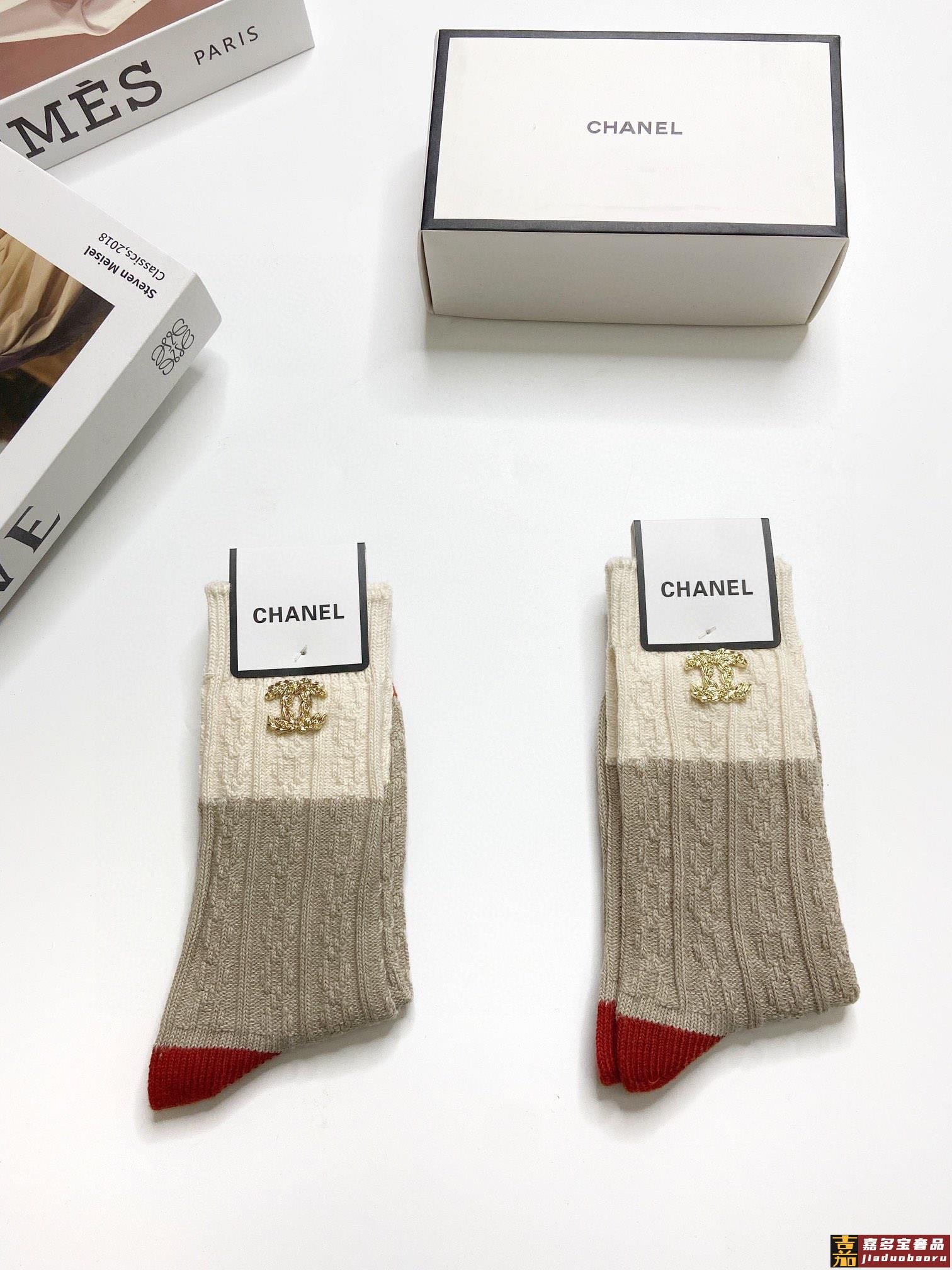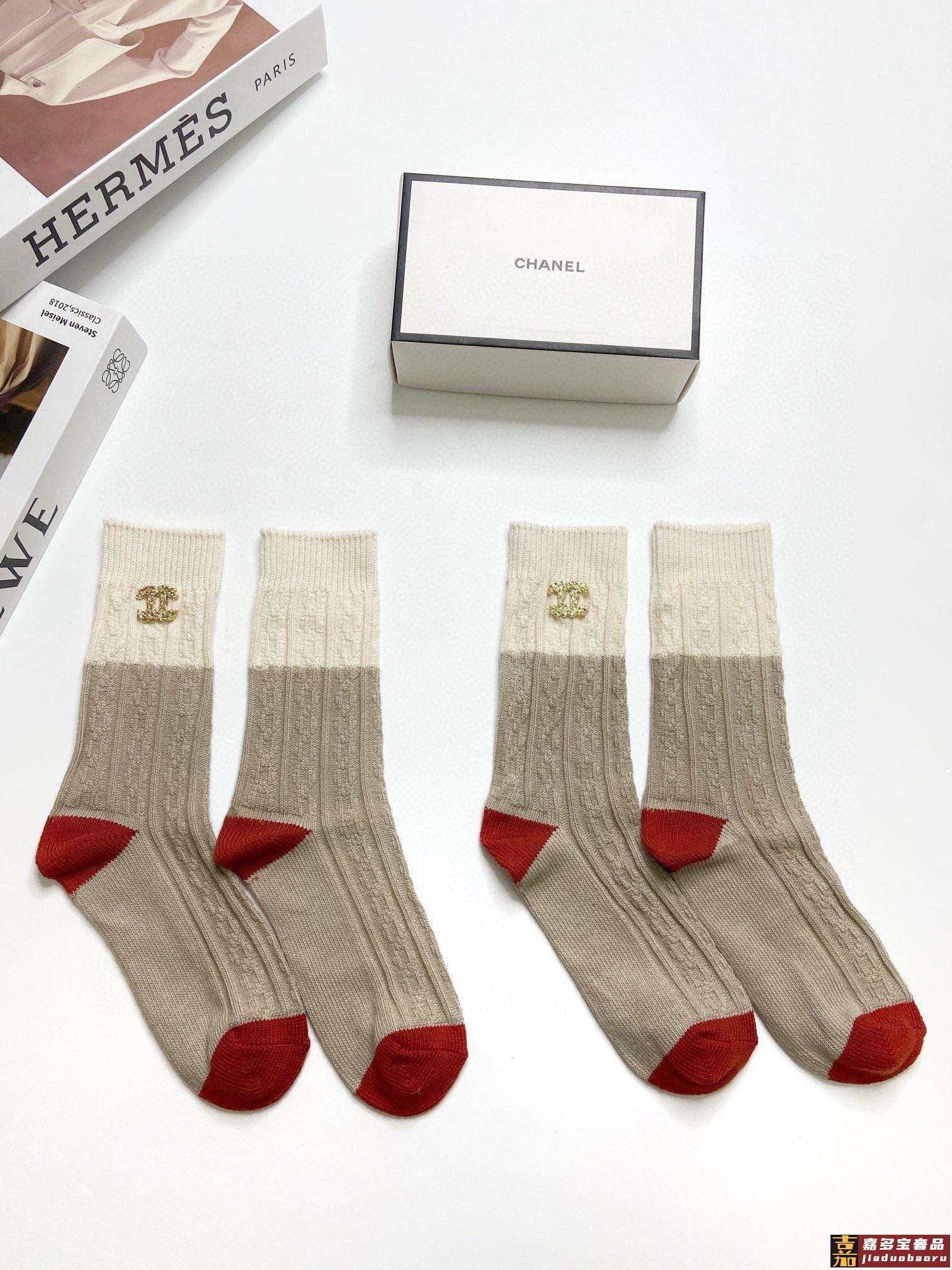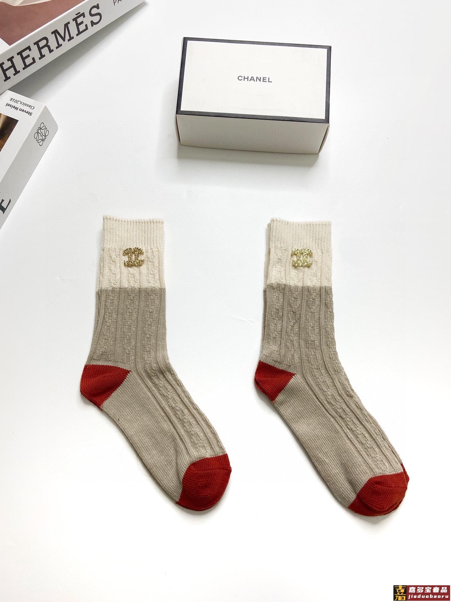 配包装一盒双香奈儿经典字母纯棉中筒袜重工装饰个性时尚爆款专柜