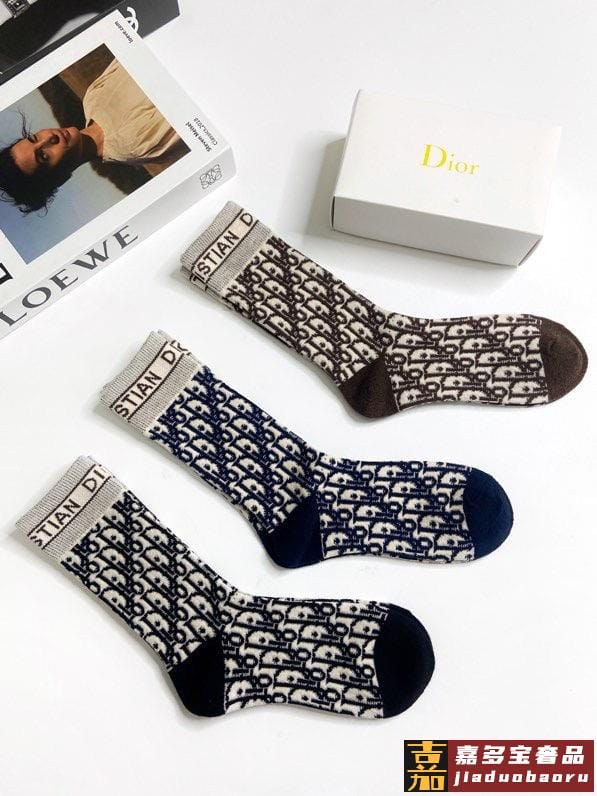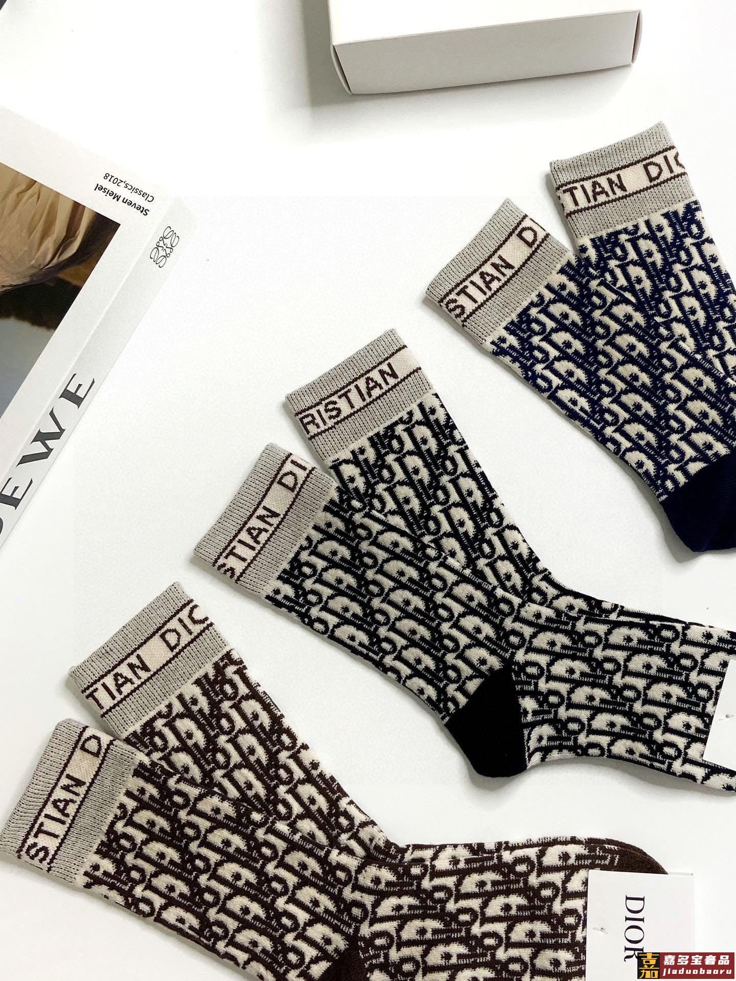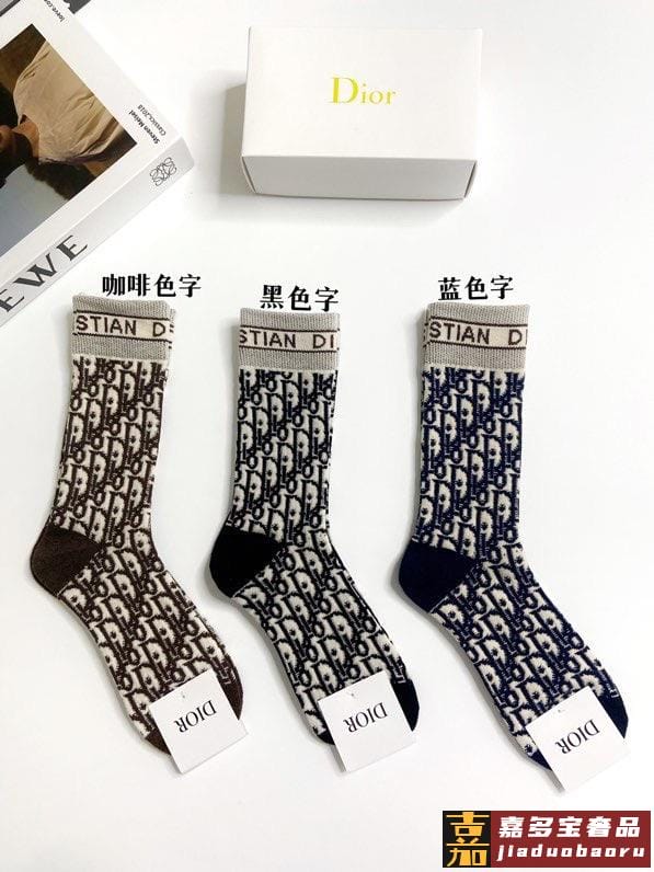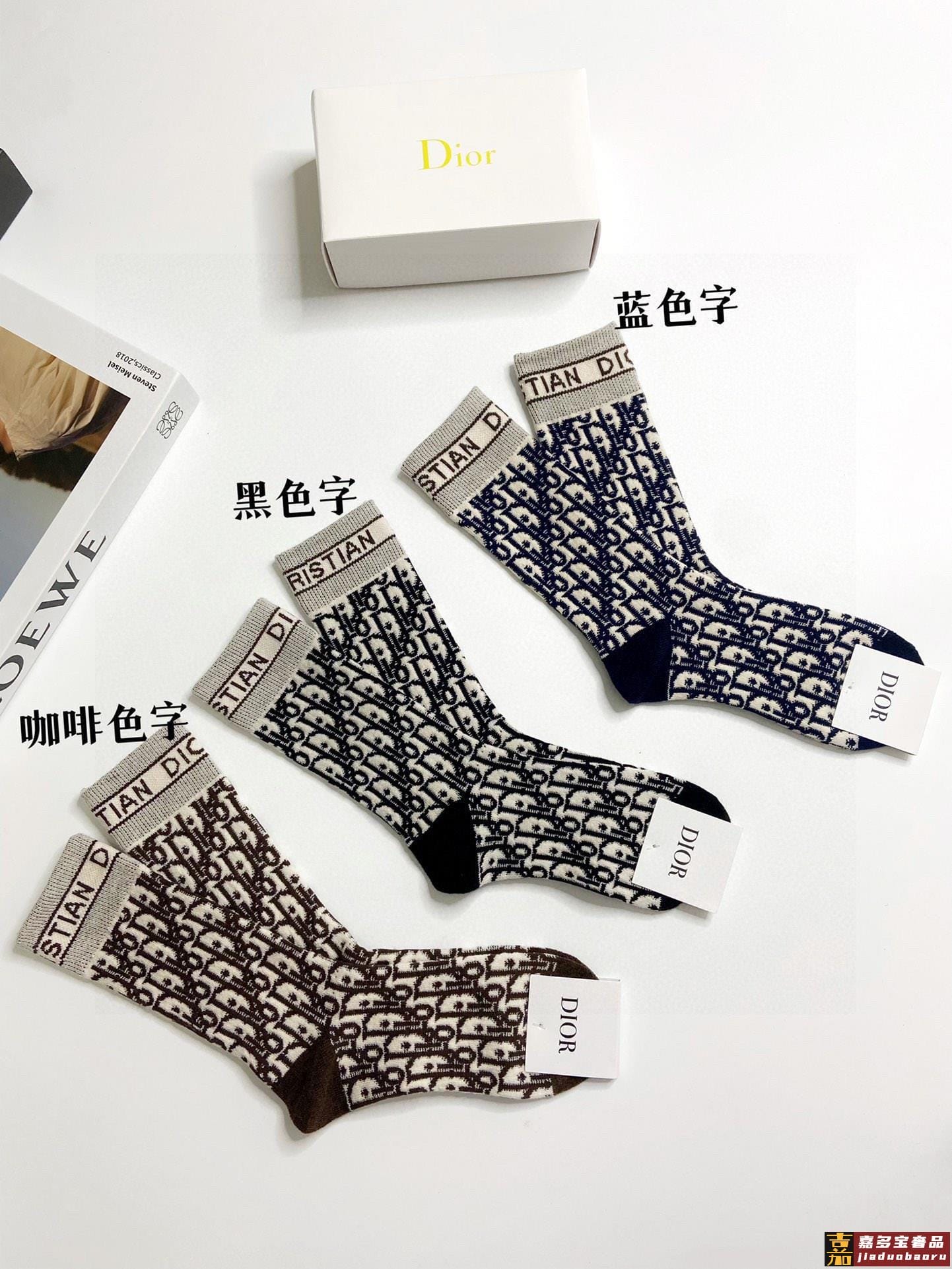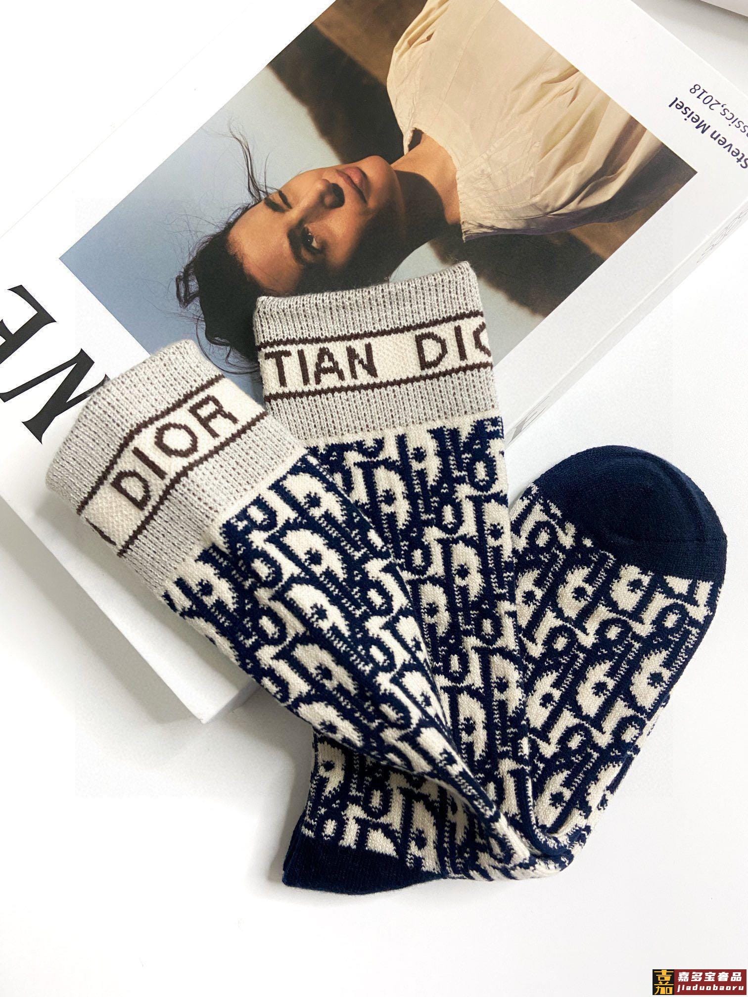 配包装一盒一双迪奥经典老花字母羊绒中筒袜超级软糯亲肤秋冬厚款