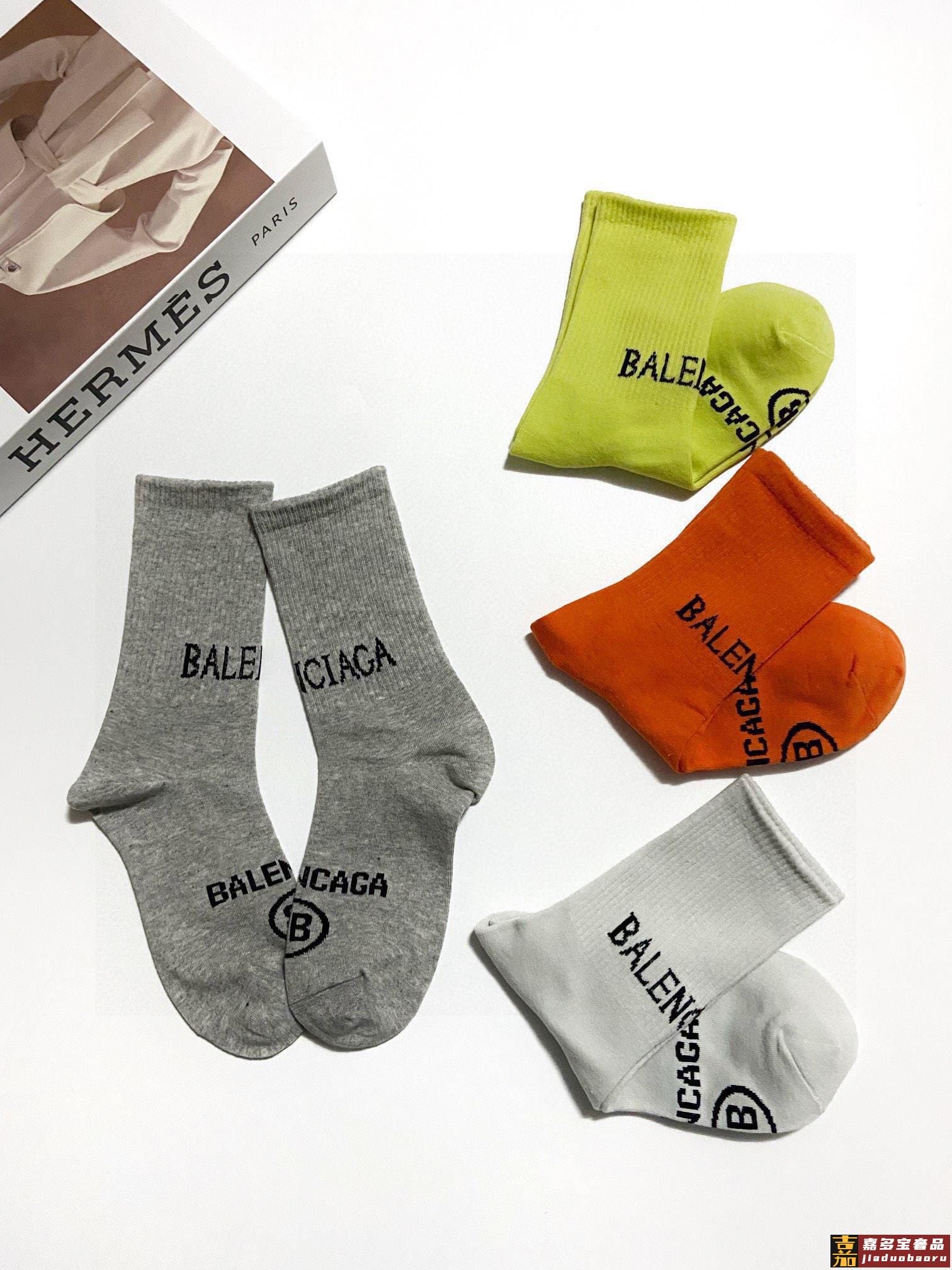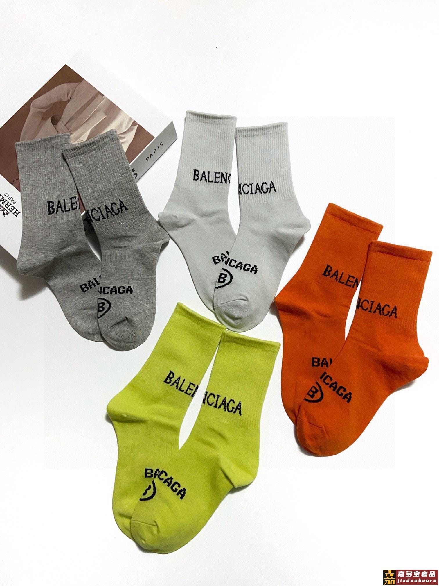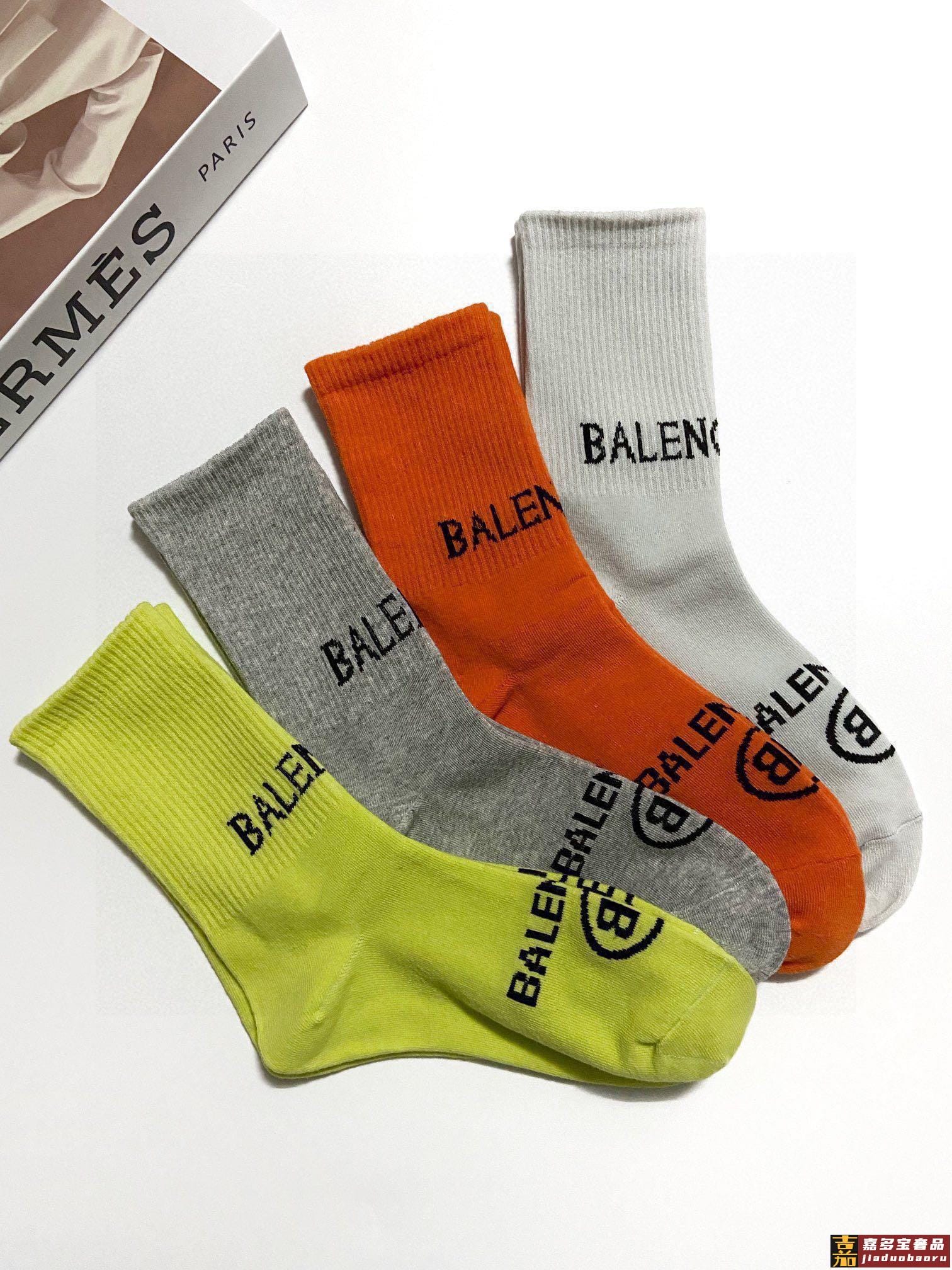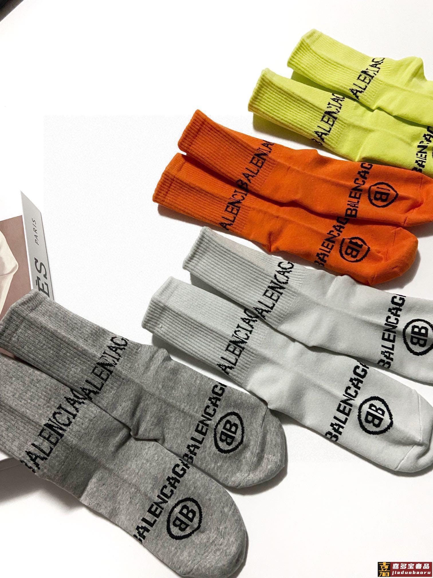 配包装一盒双巴黎世家爆款经典双字母中筒袜网球袜对版高货官网同