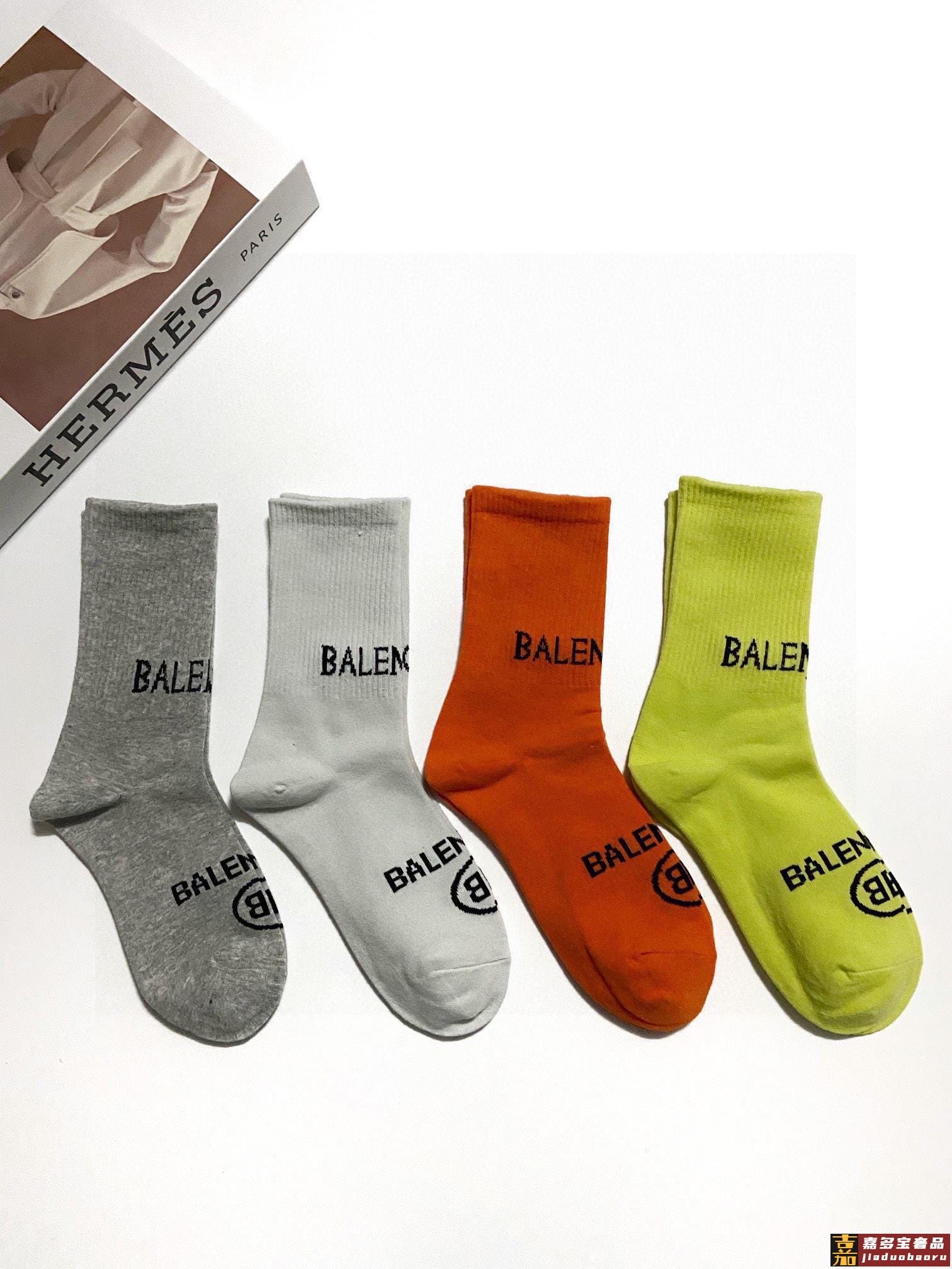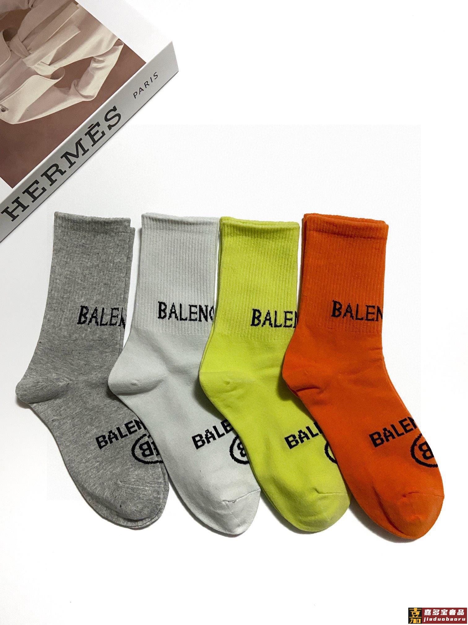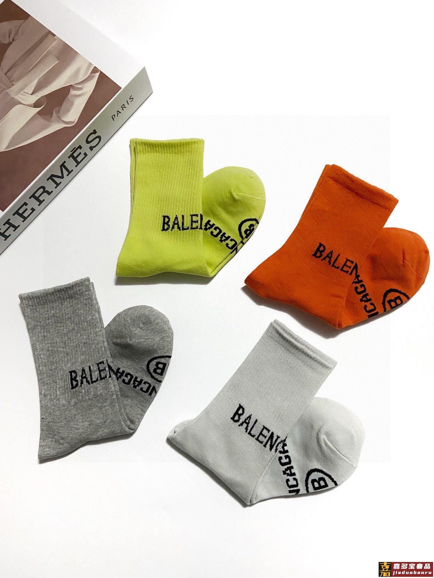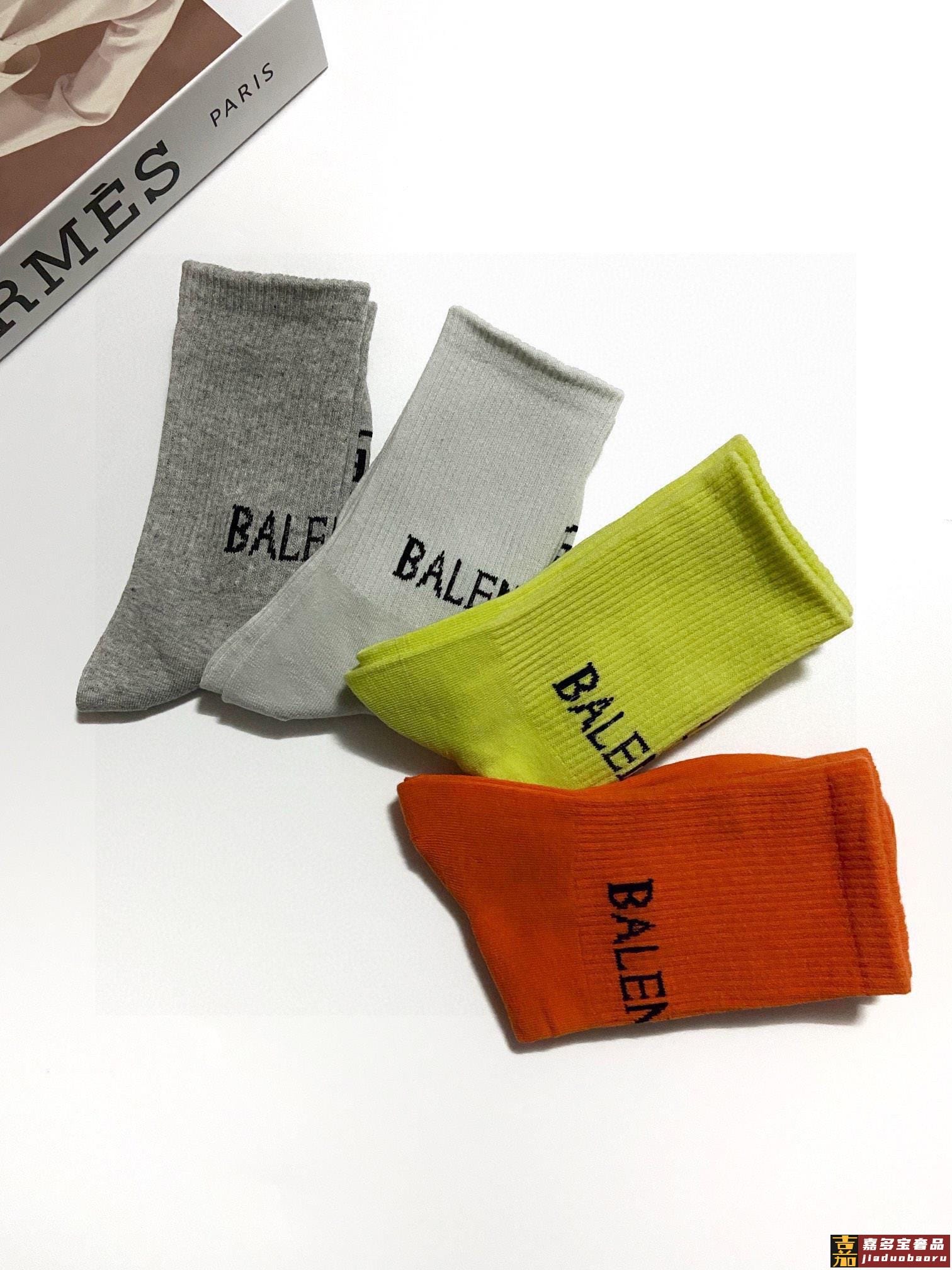 配包装一盒双巴黎世家爆款经典双字母中筒袜网球袜对版高货官网同