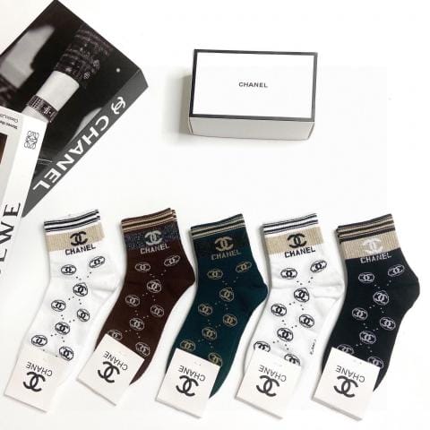 配专柜包装香奈儿新款中长款堆堆袜袜子一盒五双专柜同步筒袜袜子