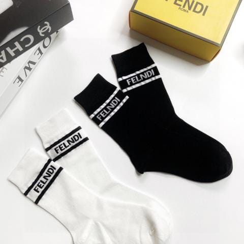 配包装一盒五双芬迪大新品高筒袜子超级经典的双标志纯棉材质制造