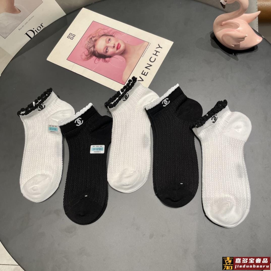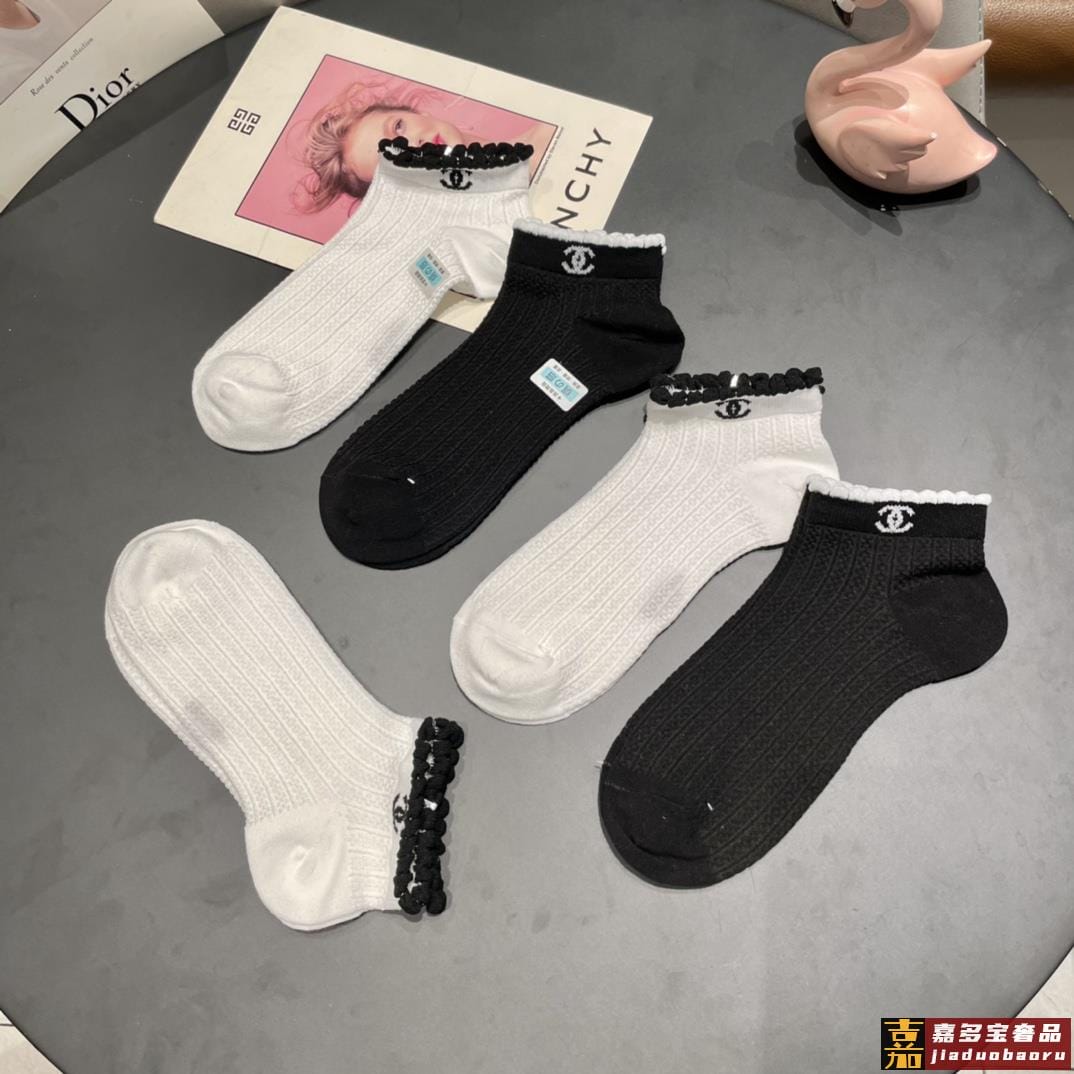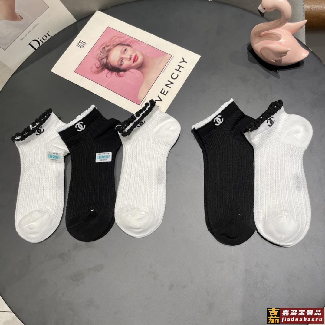 配包装一盒双香奈儿超火爆短袜纯棉混纺金银丝面料潮人必备经典老