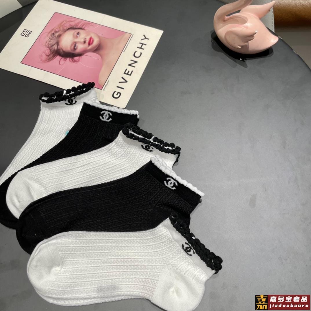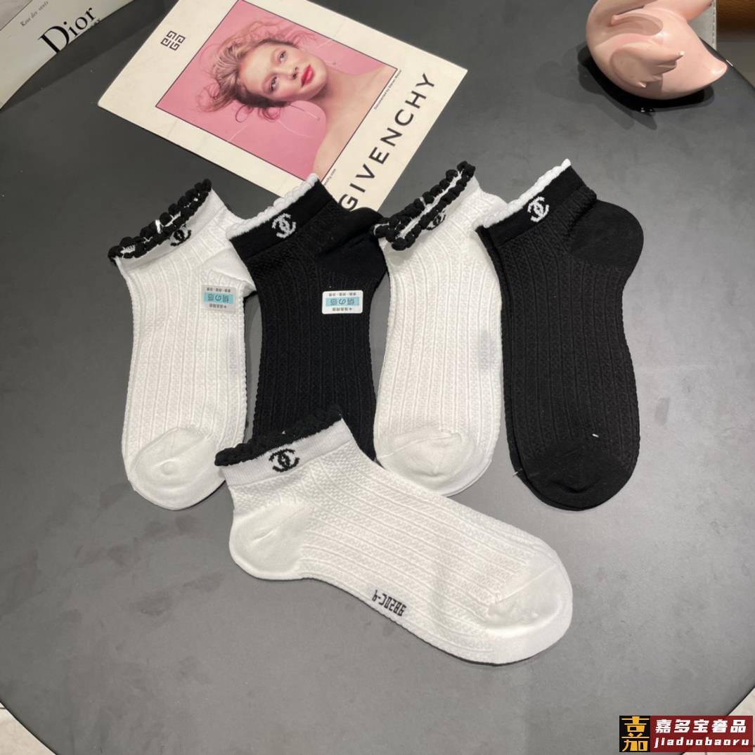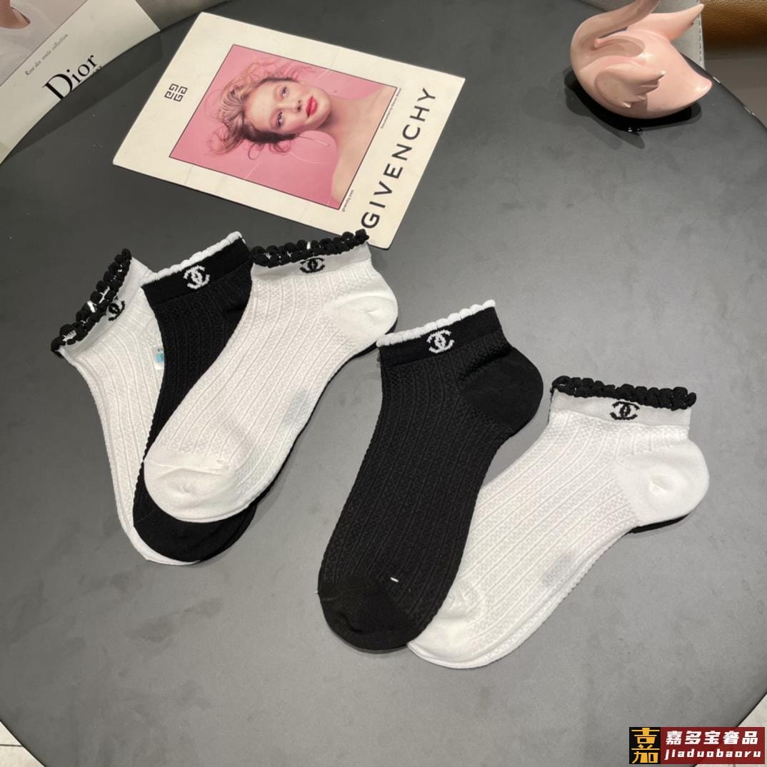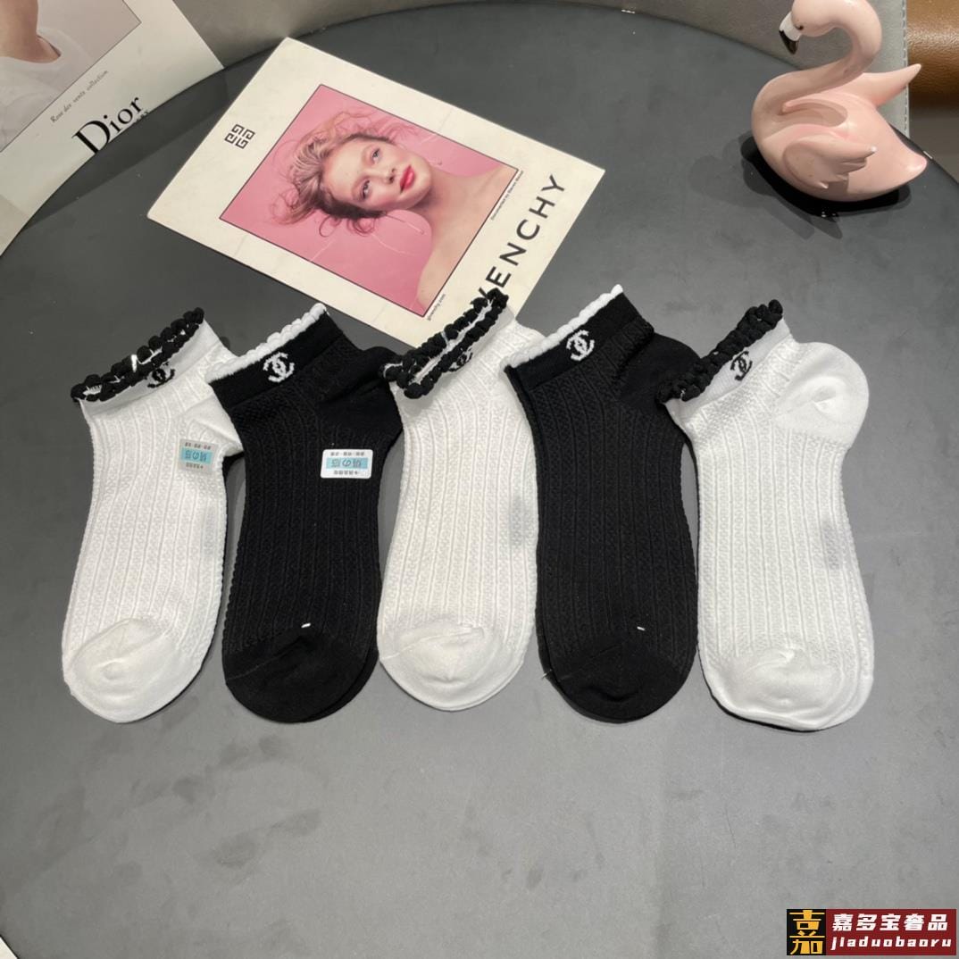 配包装一盒双香奈儿超火爆短袜纯棉混纺金银丝面料潮人必备经典老