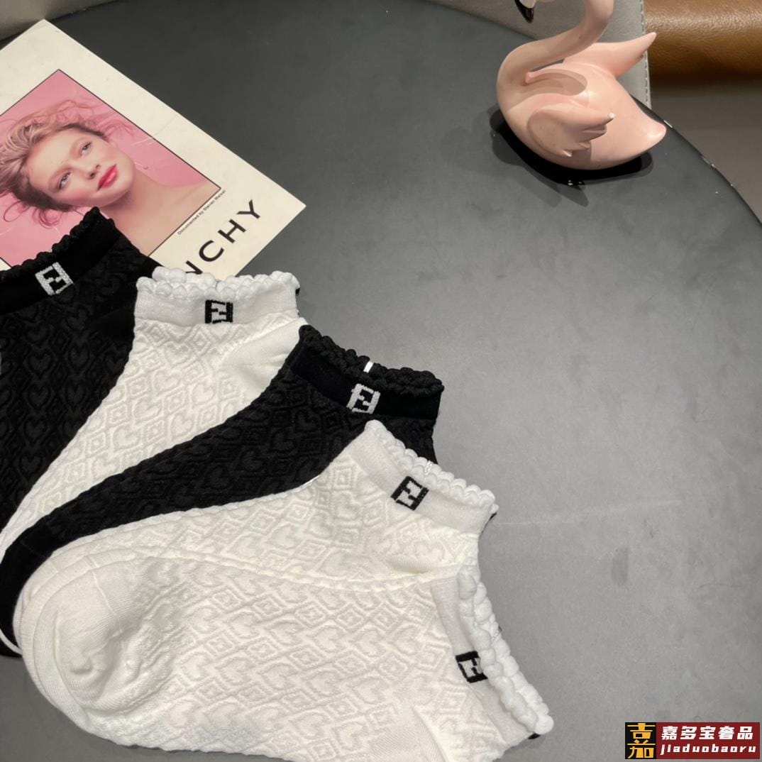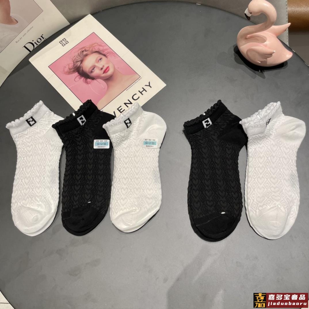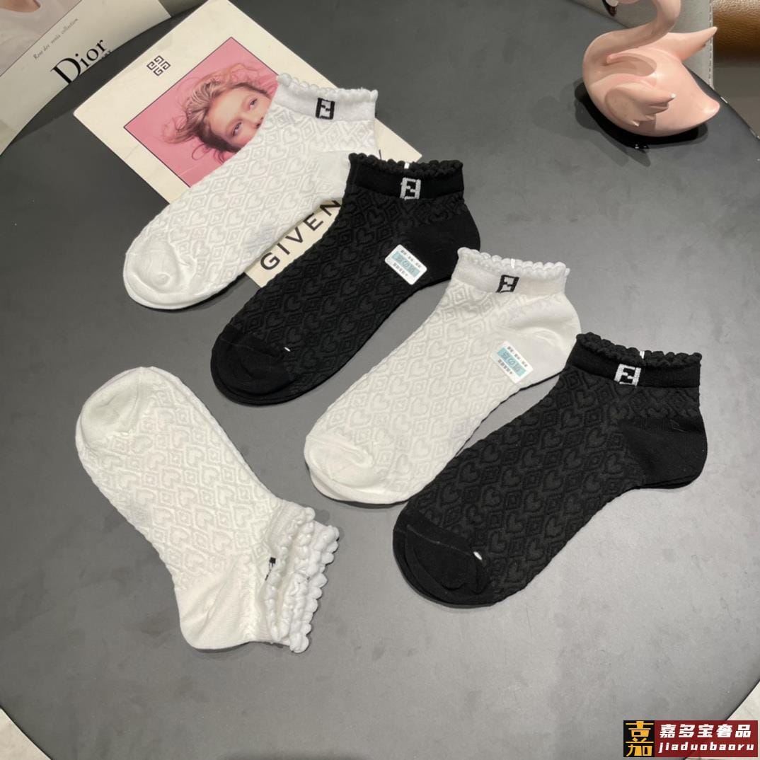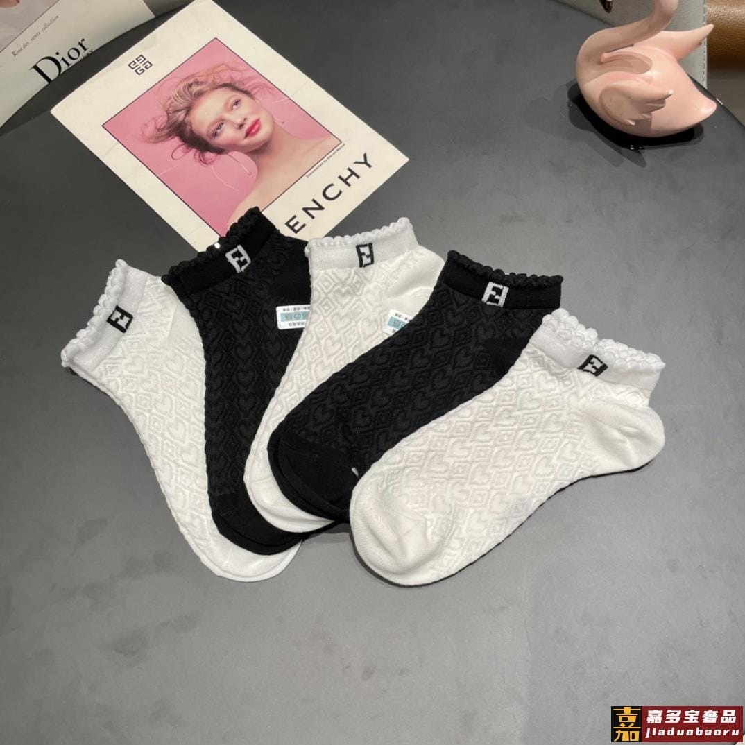 配包装一盒五双芬迪大新品高筒袜子超级经典的双标志纯棉材质制造
