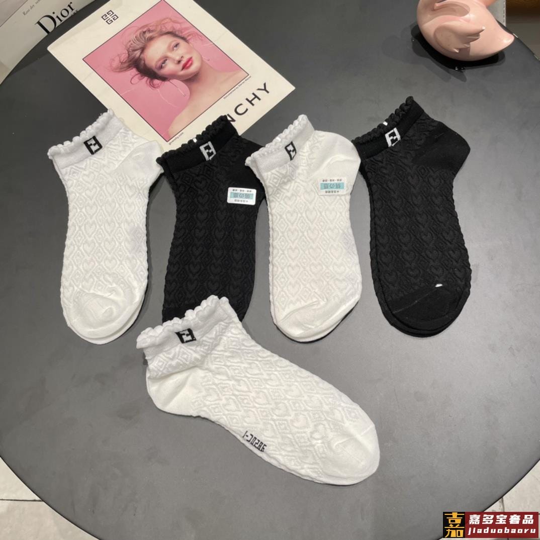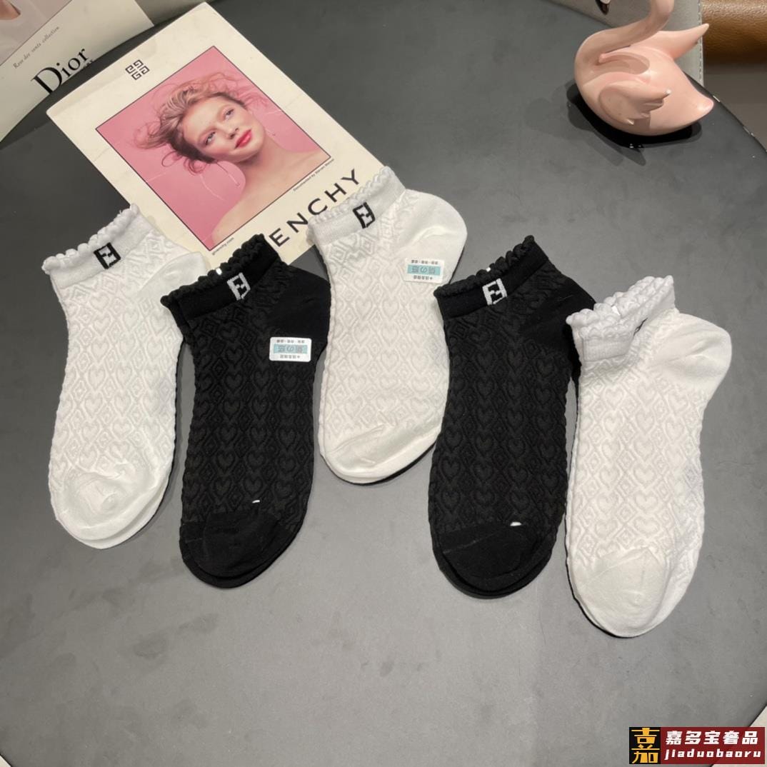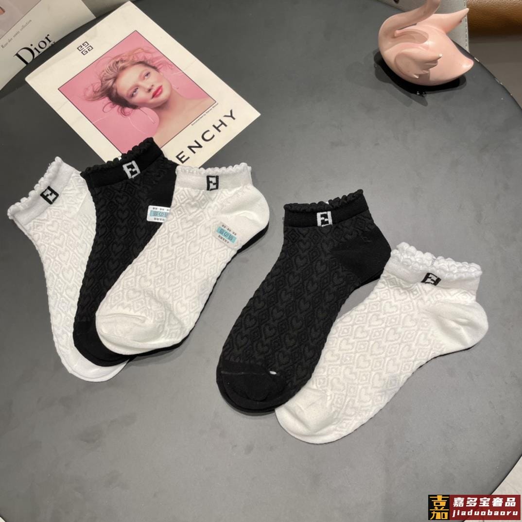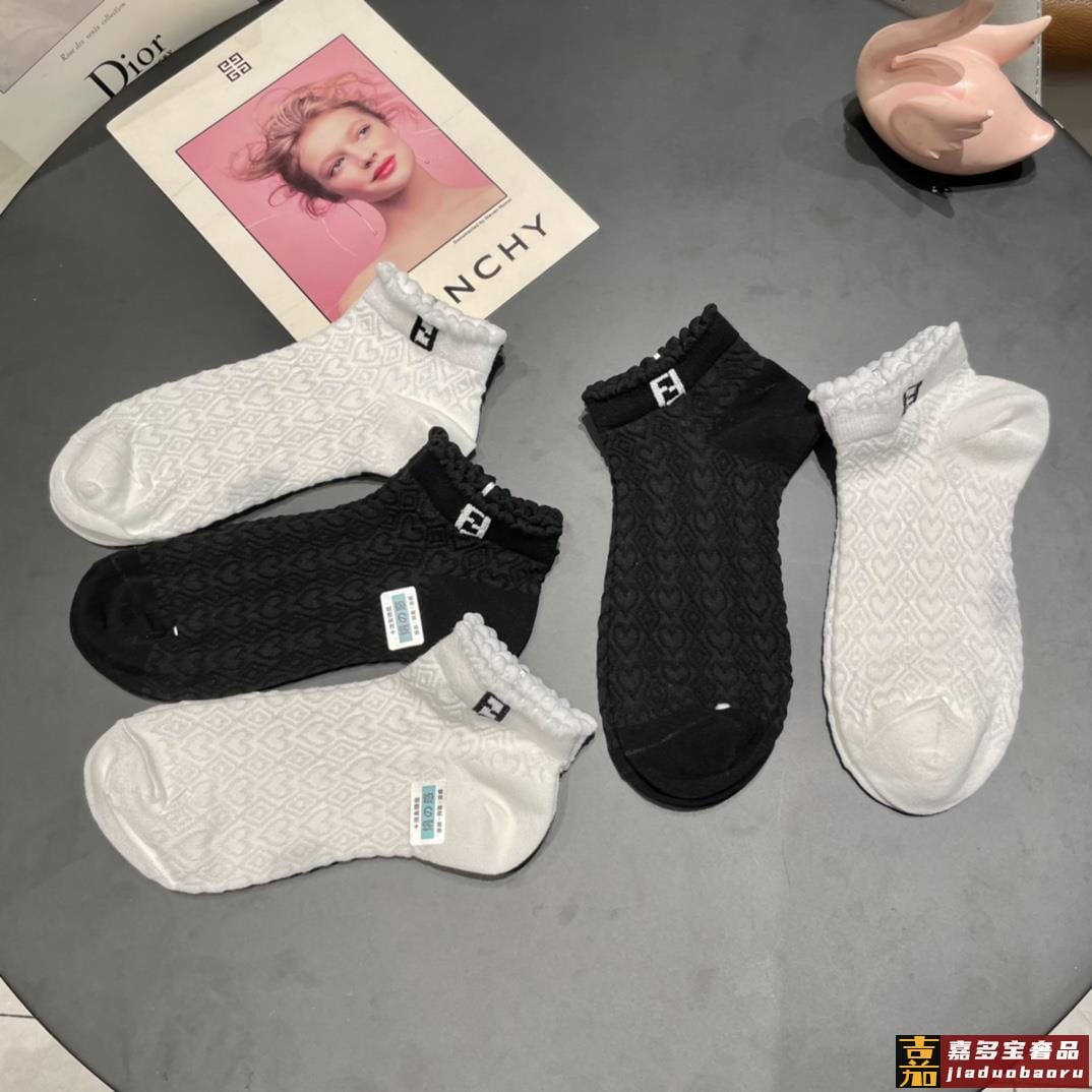 配包装一盒五双芬迪大新品高筒袜子超级经典的双标志纯棉材质制造
