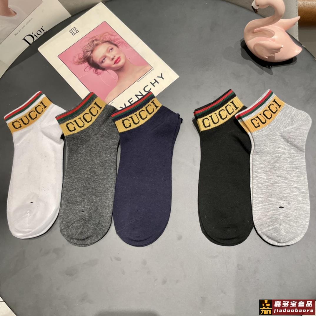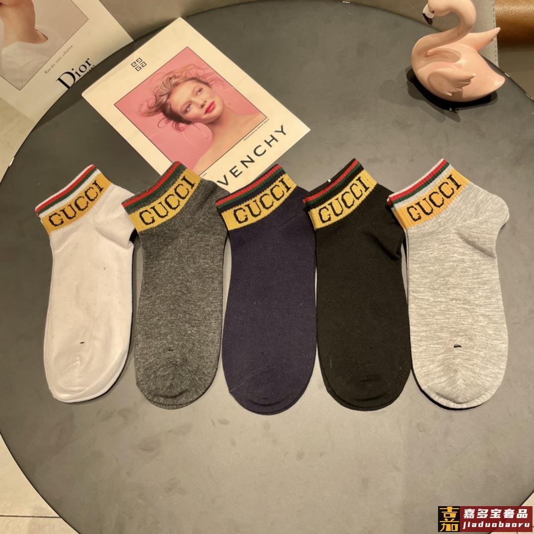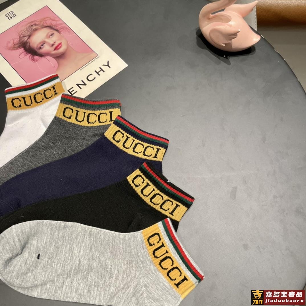 古奇家新品短款袜子最新原版绿盒一盒五双纯棉材质织造超级柔软舒