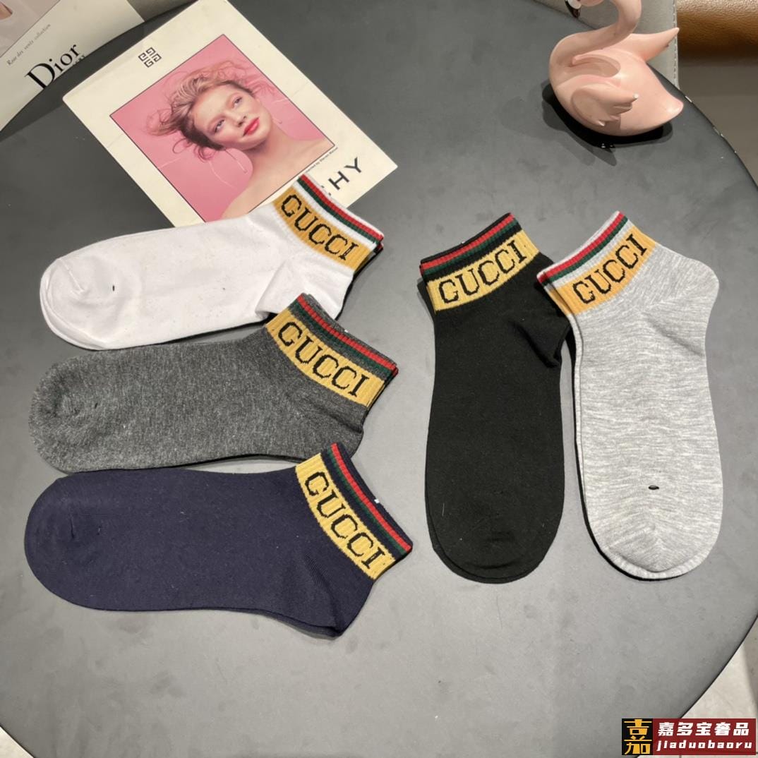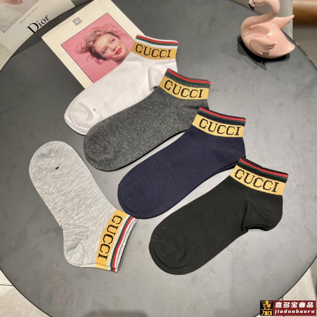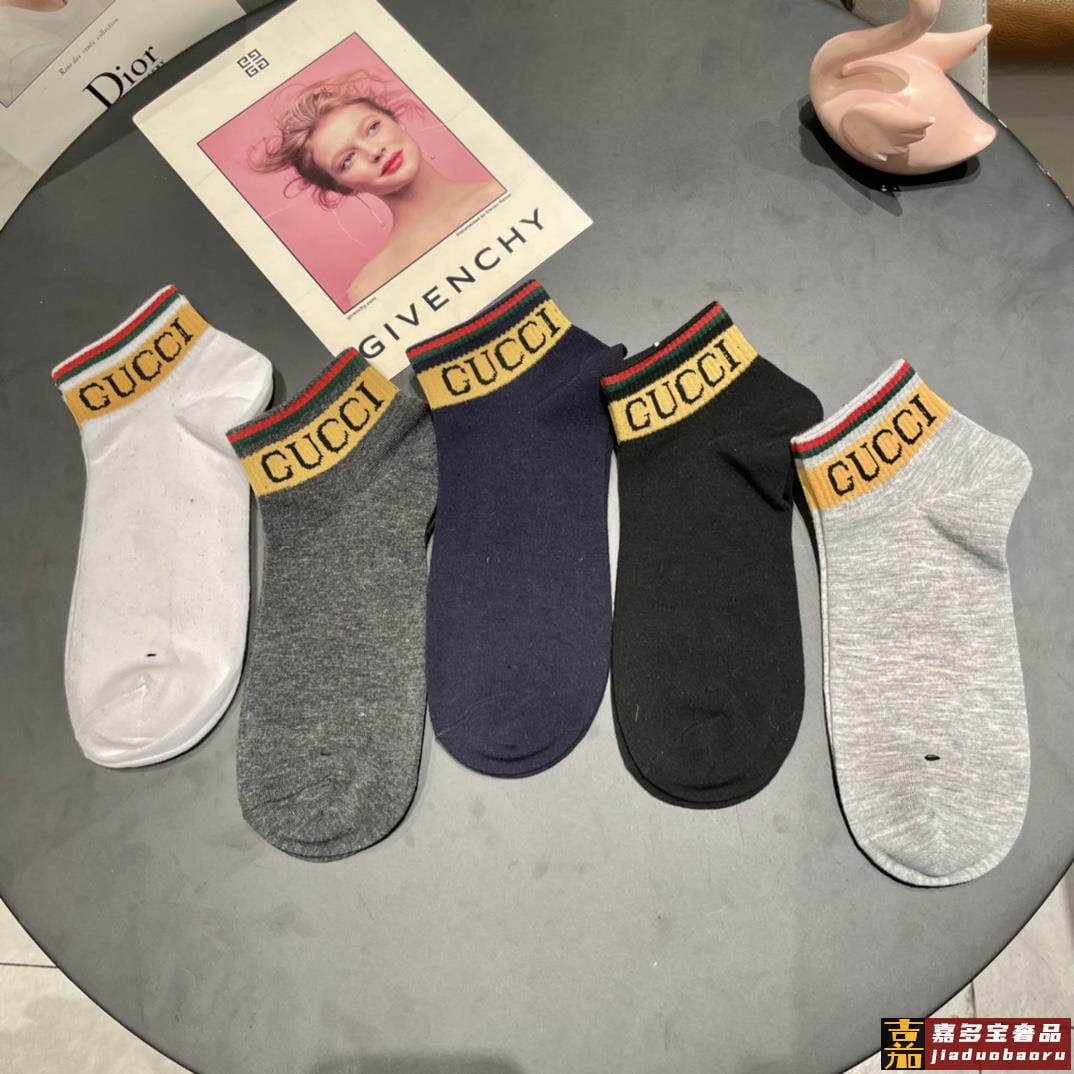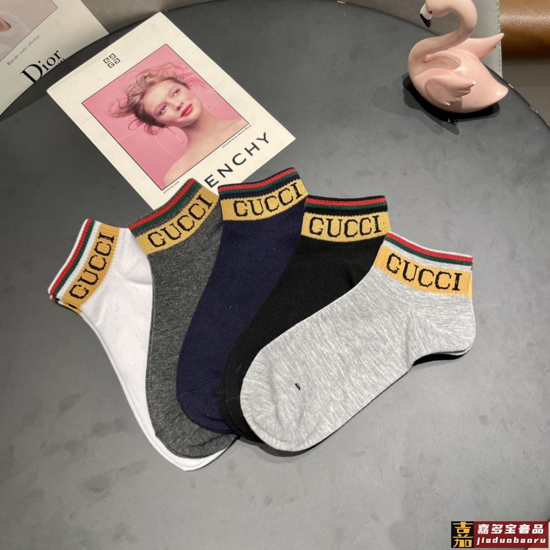 古奇家新品短款袜子最新原版绿盒一盒五双纯棉材质织造超级柔软舒