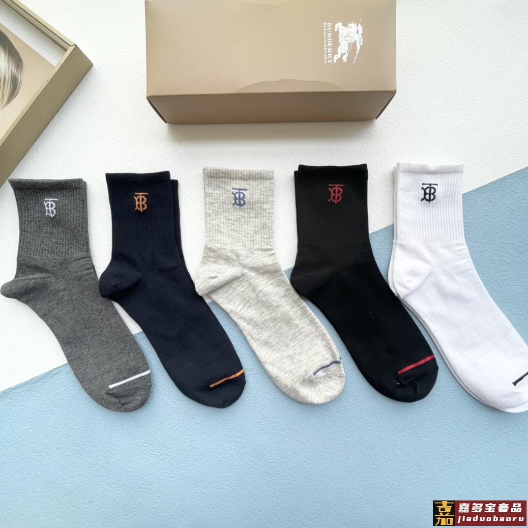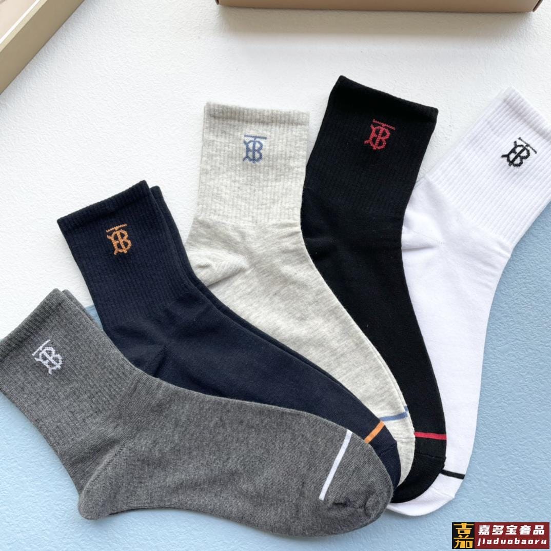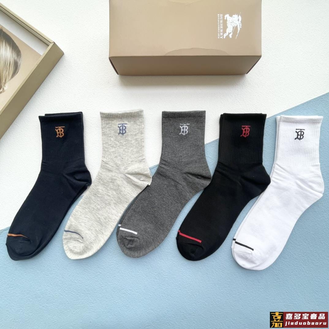 配包装一盒五双巴宝莉新款中短款男款袜子专柜同步船袜系列简单大