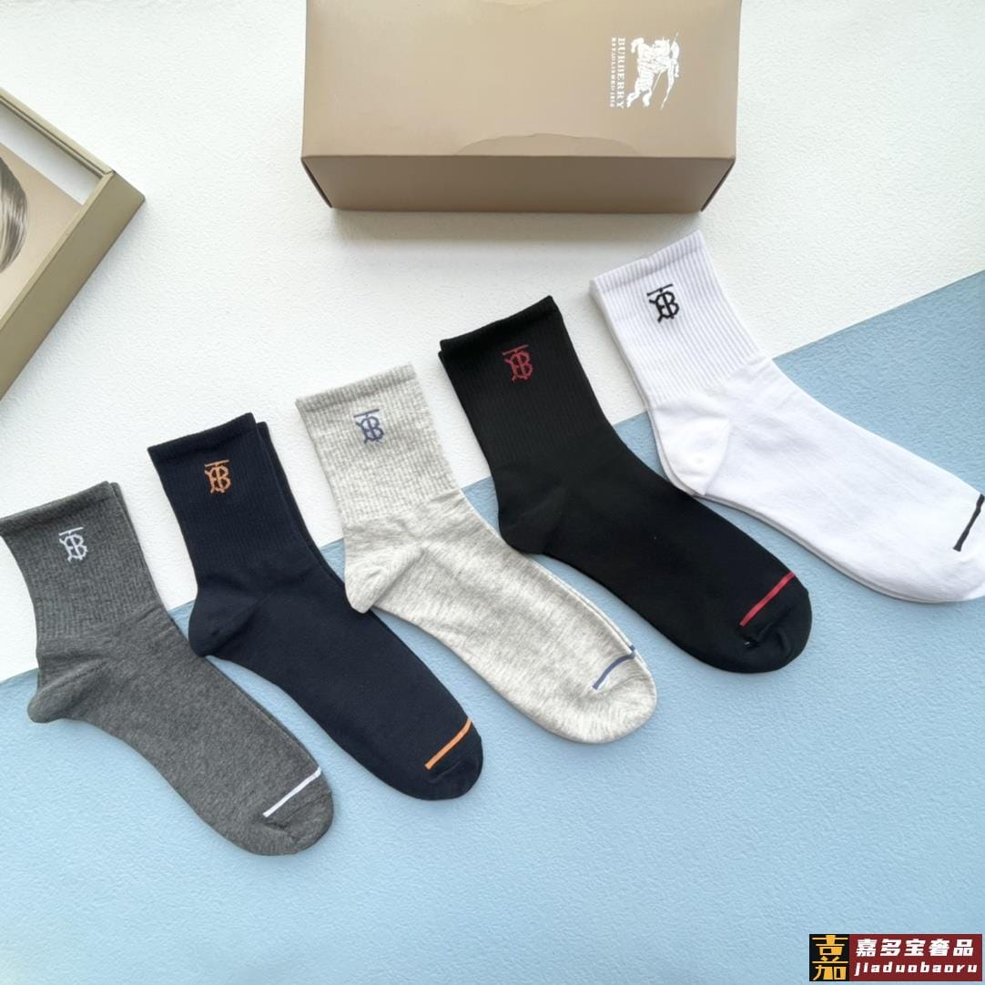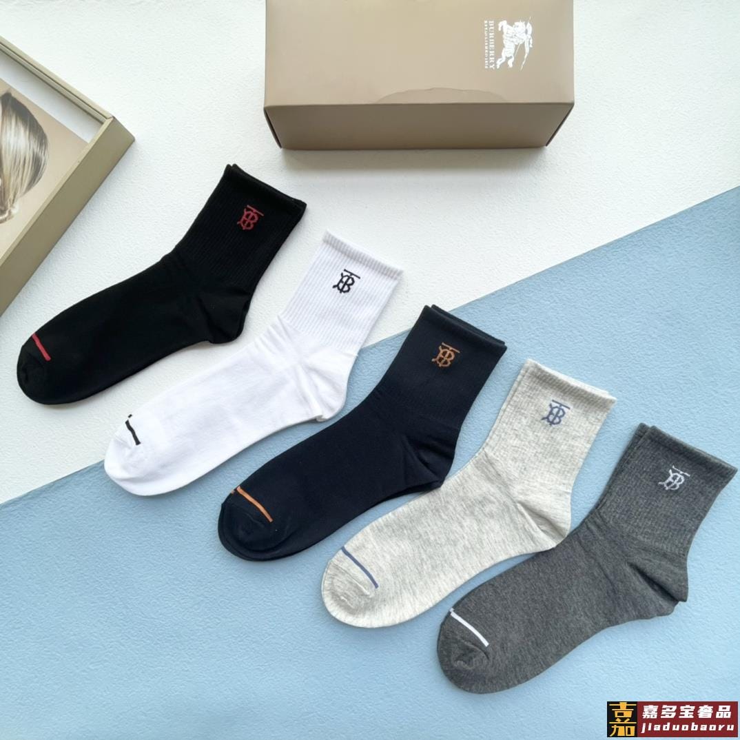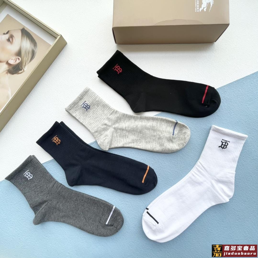配包装一盒五双巴宝莉新款中短款男款袜子专柜同步船袜系列简单大