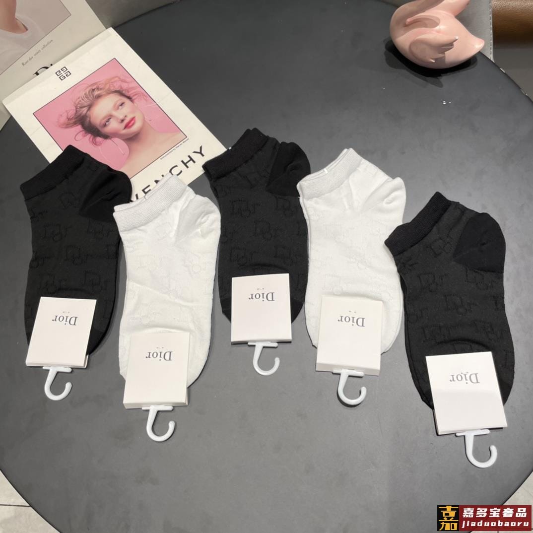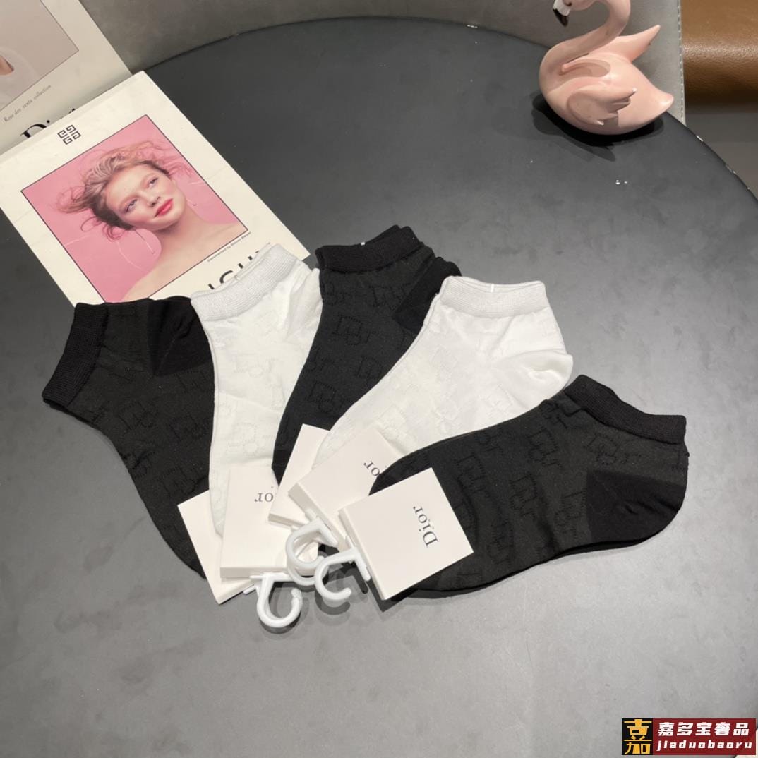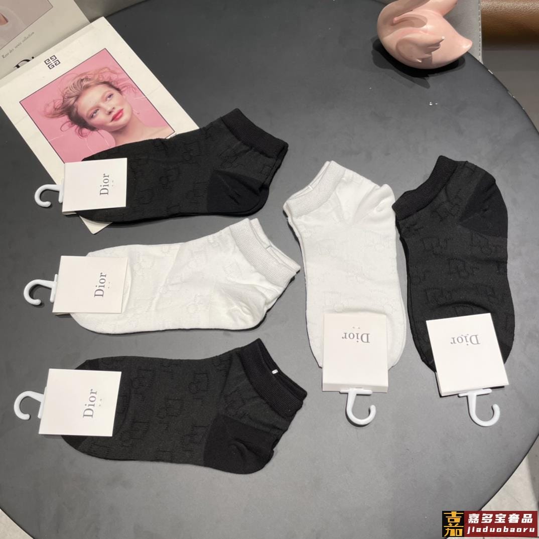 配包装一盒五双迪奥新款短款女款袜子专柜同步船袜系列简单大气大