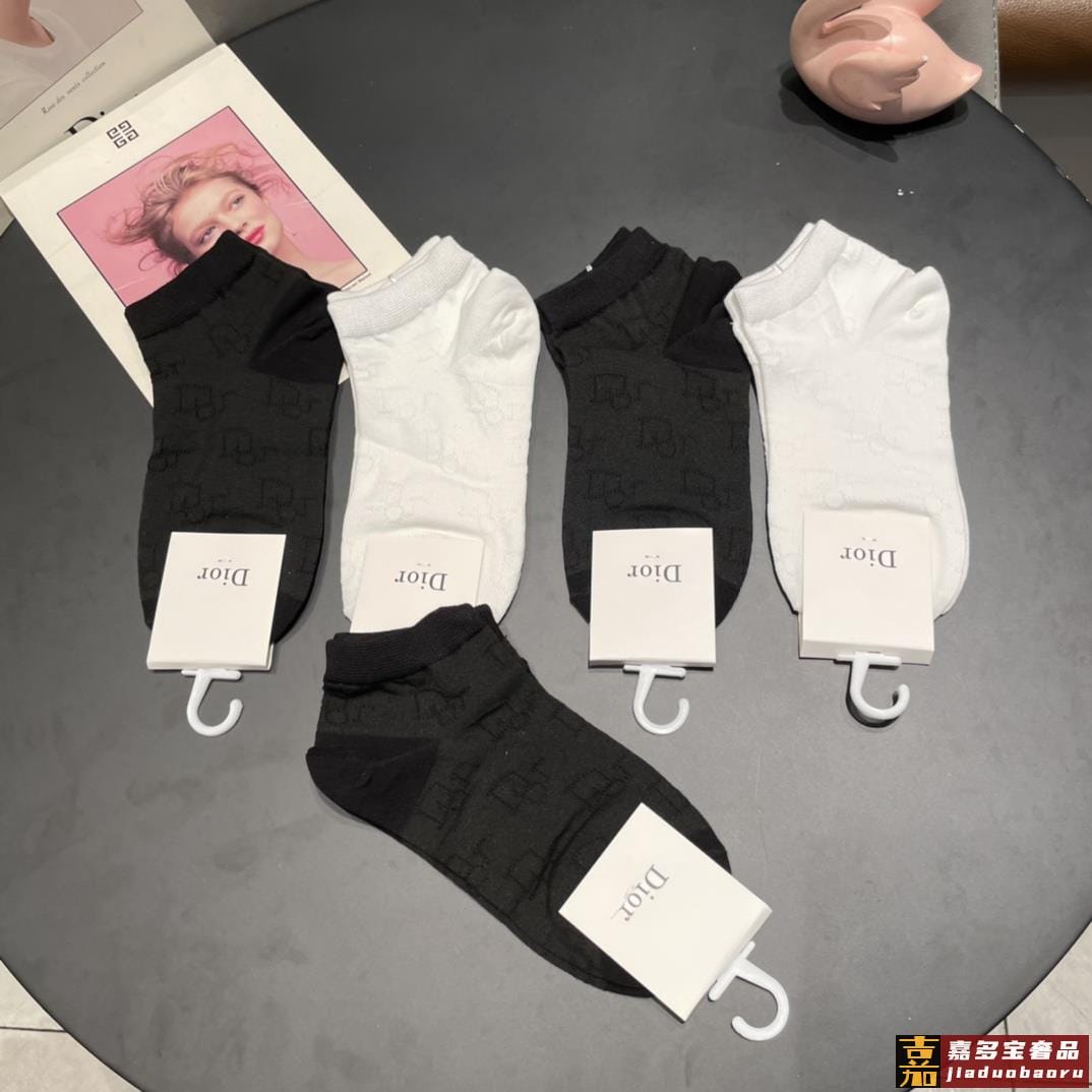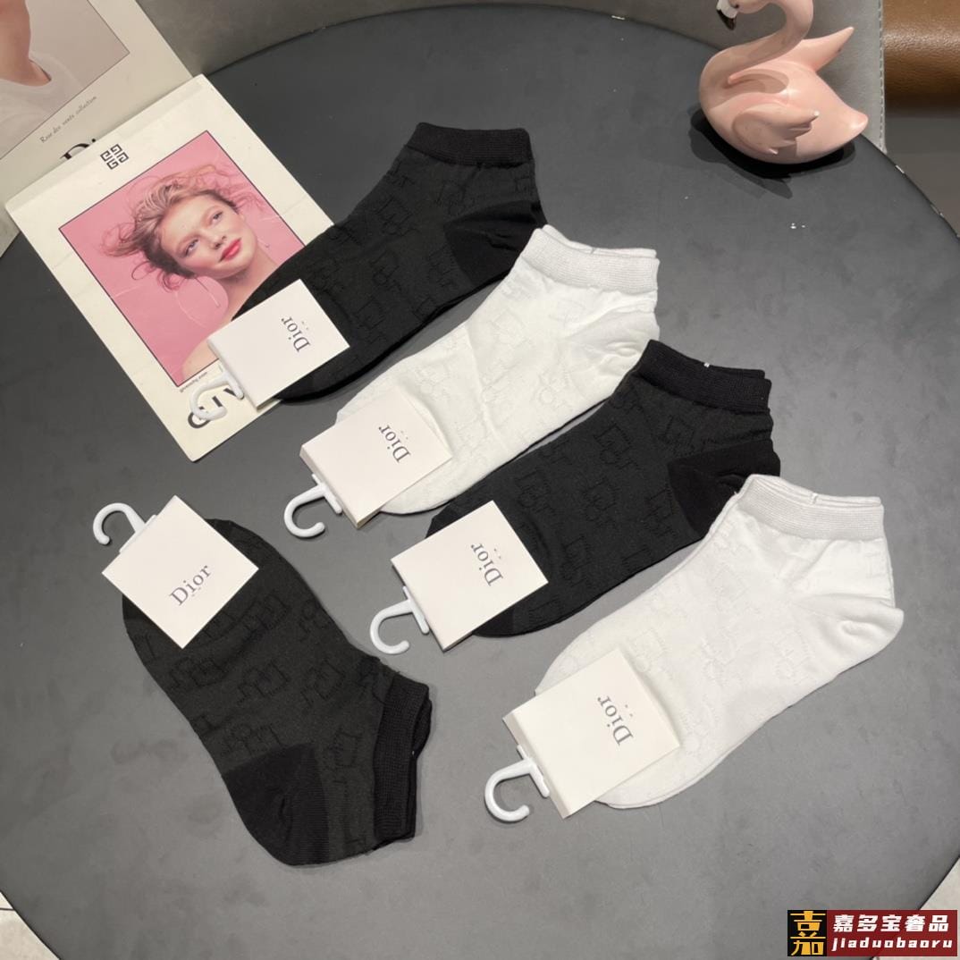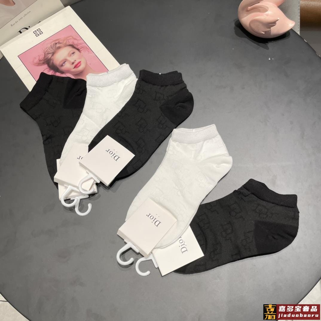 配包装一盒五双迪奥新款短款女款袜子专柜同步船袜系列简单大气大